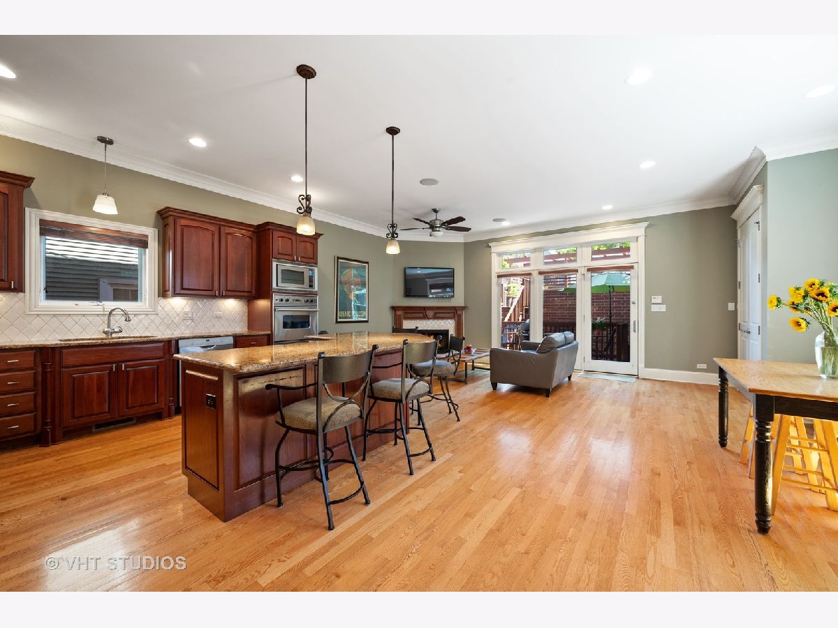 Stunning, extra wide all brick 6-bedroom (4 bedrooms upstairs) single family home on a rare oversized (37.25' x 125') lot in the heart of the vibrant North Center neighborhood. Entering this home you are immediately captivated by the expansive living space. The bright, extra-wide living room and dining room features a wood-burning fireplace, 7 windows and space for your largest furniture. The kitchen is a chef's dream with professional grade appliances, 6-burner stovetop, dual ovens and counter space galore. This kitchen works. The adjacent great room with a wood-burning fireplace flows seamlessly outdoors to the first of two decks. This 10' x 23' deck is an extension of the home's living space and convenient for grilling and leads to a massive 20' x 30' deck atop the 3-car garage. Want more outdoor space? Enjoy gardening? The English pathway garden offers an urban oasis lush with perennial landscaping and tranquil areas for relaxing. The second floor of this home features 4 bedrooms and 3 full bathrooms. The oversized primary suite is a spectacular retreat with a large spa-like bathroom complete with a multi-head shower with steam, large whirlpool tub and radiant heated floors. Arriving at the lower level you immediately notice the expansive size of the extra bright 22' x 26' family room with 10' ceilings, a wood-burning fireplace, a wet bar and 6 windows. Two additional large bedrooms / home offices, a full bathroom, secondary laundry room, extra storage and radiant floor heat complete this level. A full-property irrigation system (lawn sprinklers, flower bed sprinklers and roof deck drip system) keeps everything lush and growing. Amazing location with easy walking access to all the dining, shopping, entertainment North Center, Roscoe Village and Southport Corridor has to offer. Plus, 3 blocks to the Brown Line stop. 3-car garage. New roof installed in 2021. Broker owned.