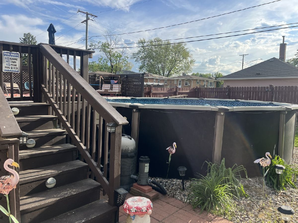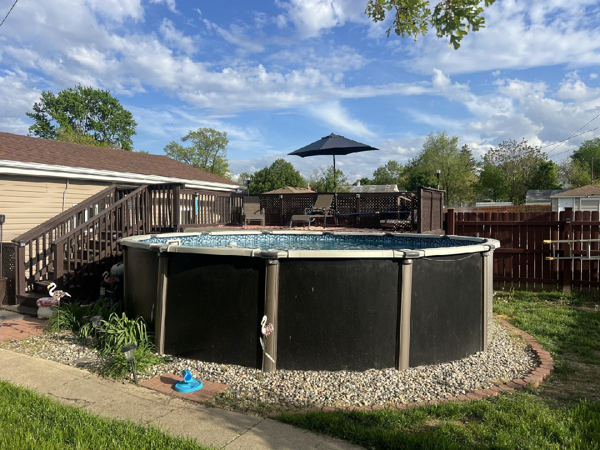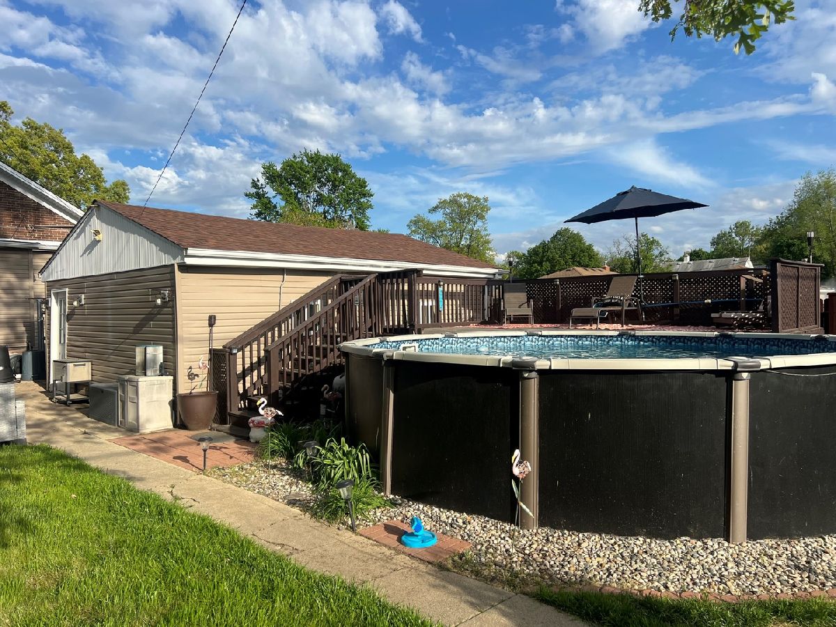 Discover the charm of this expansive brick bungalow, complete with a relaxing front porch perfect for unwinding. Inside, you'll find a bright and airy open-concept layout encompassing the living, dining, and kitchen areas. This home boasts 3 bedrooms and 1.5 baths, along with a spacious basement featuring a separate entrance that leads to backyard, offering versatility for a variety of uses. Enjoy modern updates including newer windows (UV protection & noise reduction 2021) and a refreshed main floor bathroom (2024). Step outside to your private retreat: a large fenced-in (2018) backyard featuring an above-ground pool (2018), a newer deck (2020), and a patio area for entertaining or soaking up the sun. House roof (2019), fridge/stove (2018), kitchen update (2021); Vivint security system stays (side/front/backyard camera); dryer is AS-IS