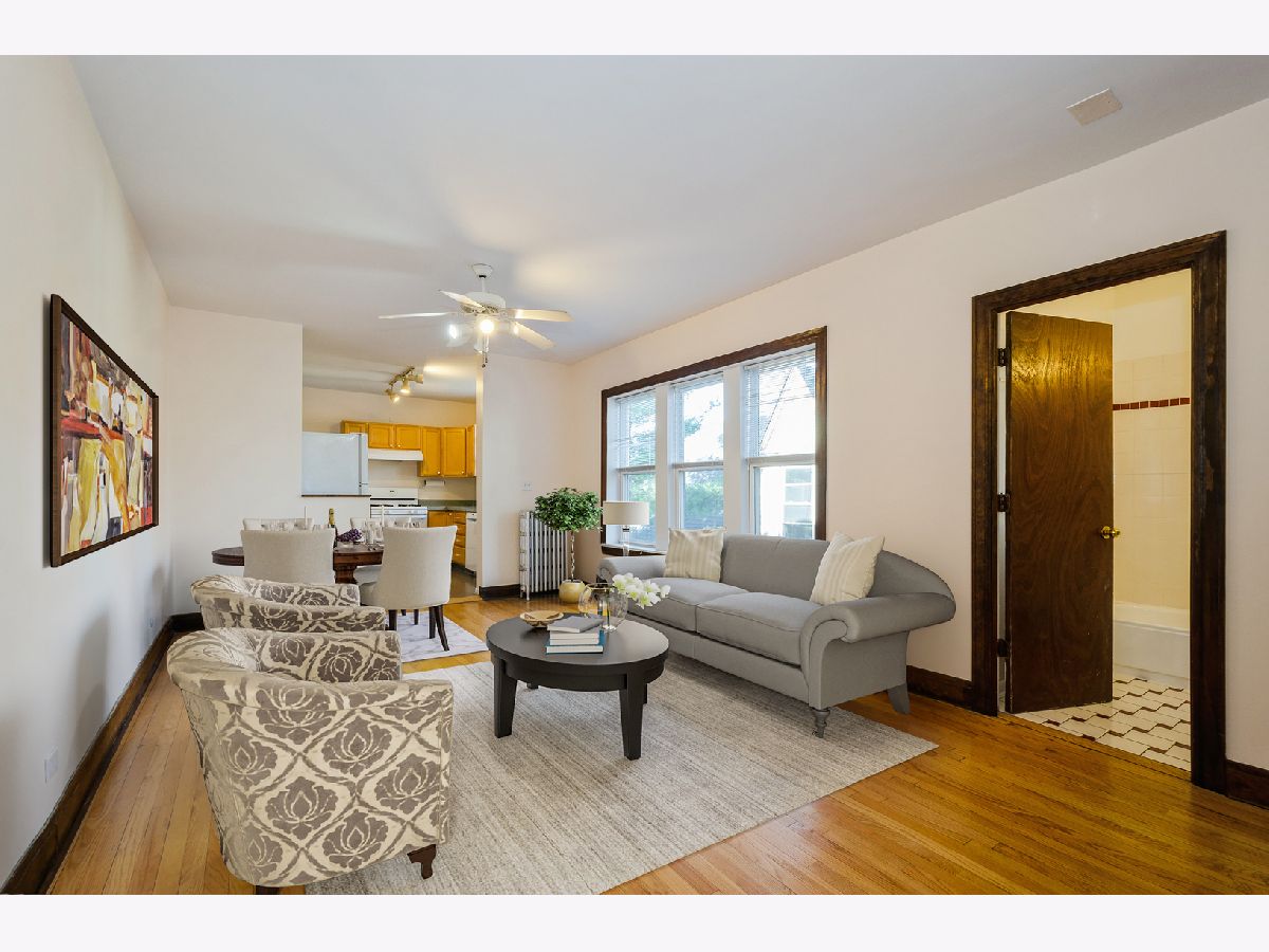 Your views are filled with sunshine, leafy green trees, and the spectacular Victorian architecture of Rogers Park from your top-floor 1920s 2BR/1BA flat. The condo has been freshly painted, deep cleaned, and hardwood floors gleam in every room. The kitchen has updated appliances, new sink and fixtures, and lots of cabinets. The living/dining combo stretches 20' wide leaving plenty of space to rest, relax, and entertain. Both bedrooms are generous with lots of light and good closet space. Bath has been updated with new sink, cab & fixture, and re-glazed porcelain tub. Unit comes with private storage and easy access to laundry room. Pet friendly building. Walk right out your front door and everything that's amazing about Rogers Park is within walking distance - public transportation, restaurants, shops, lakefront parks, and more. An absolutely fantastic place to live.