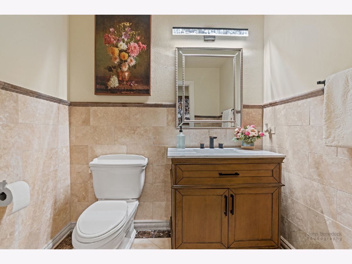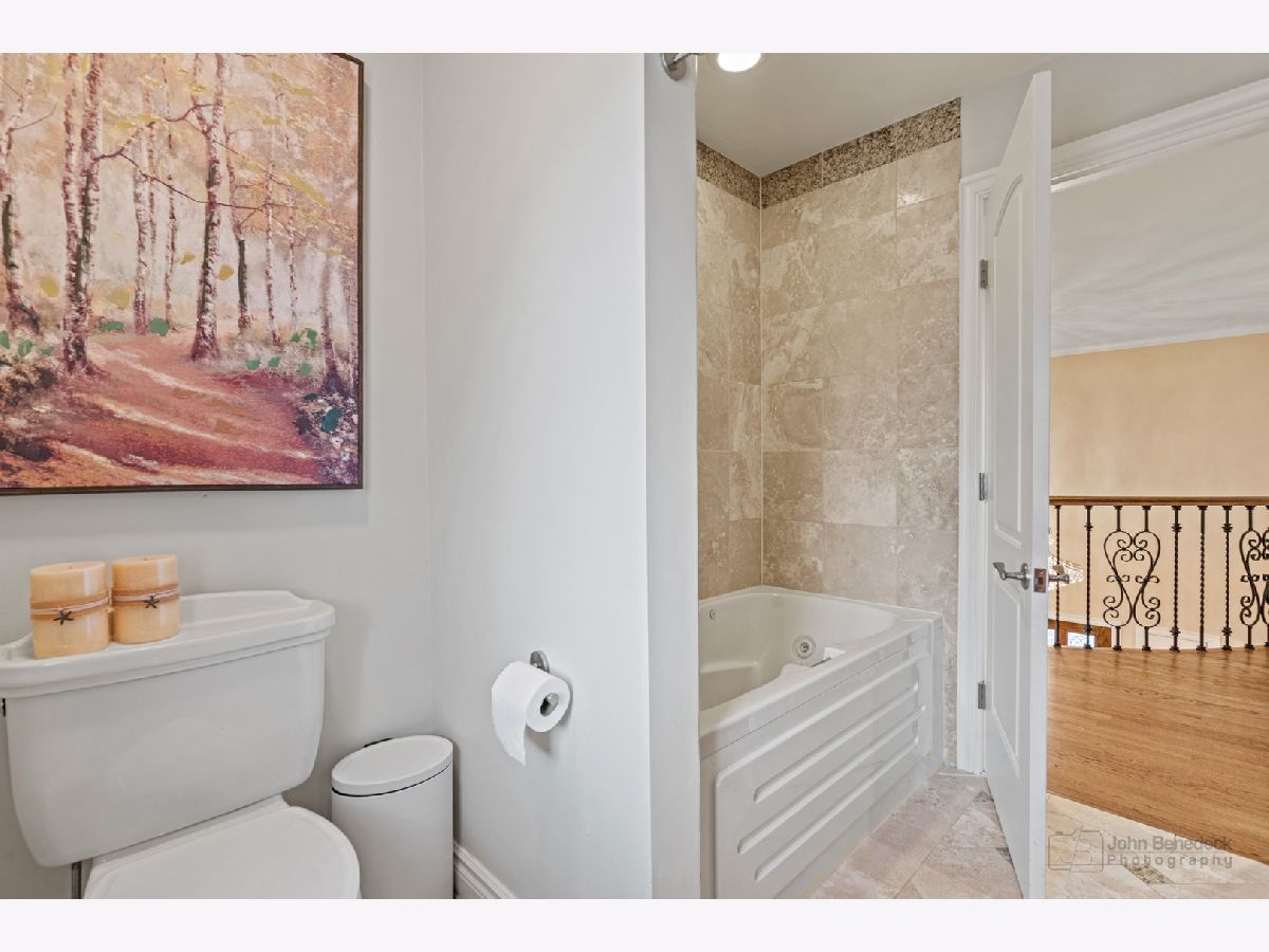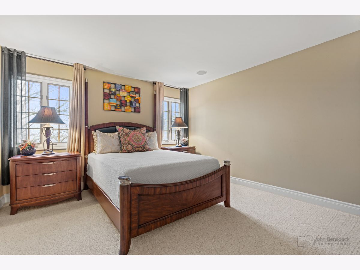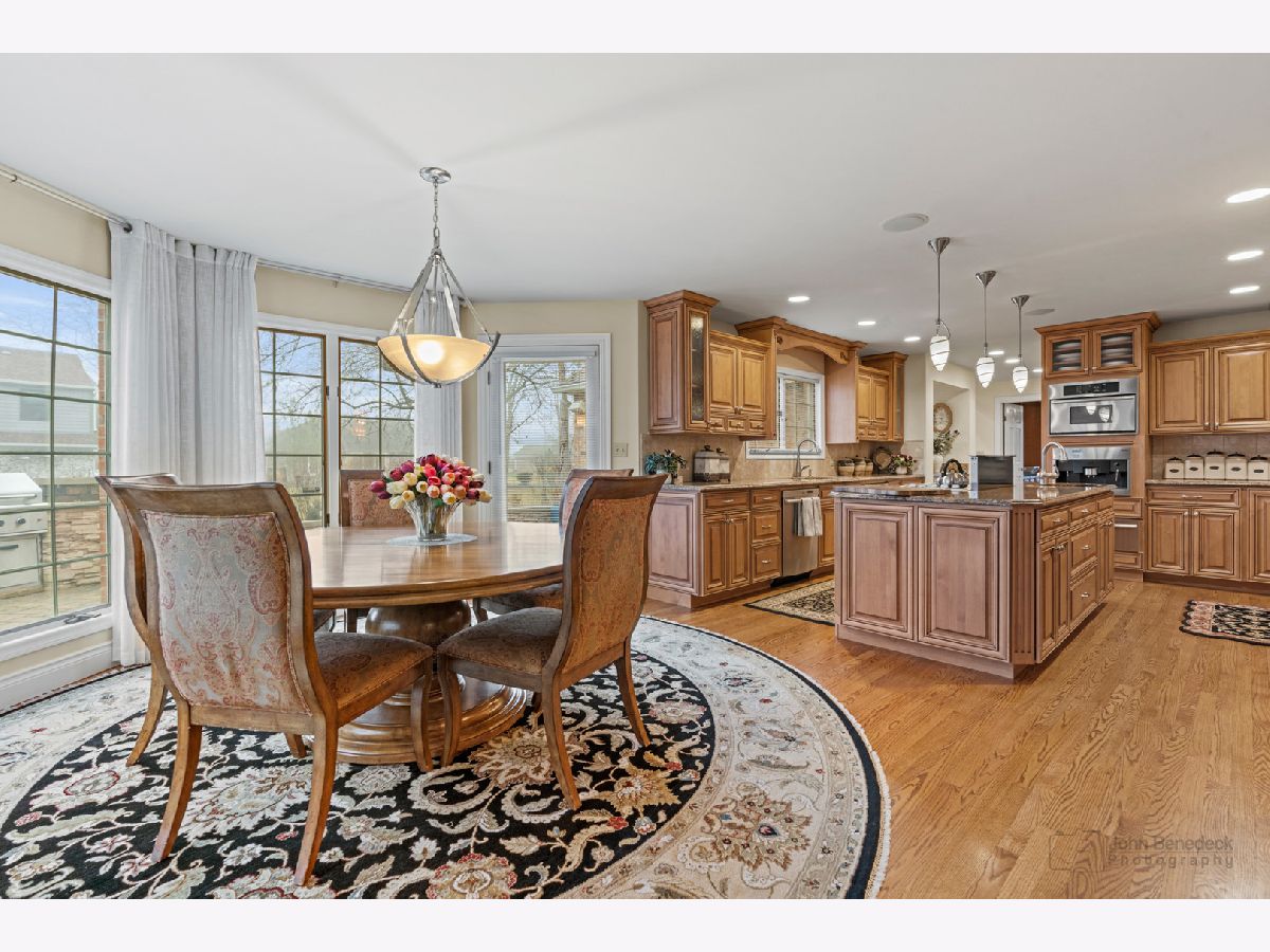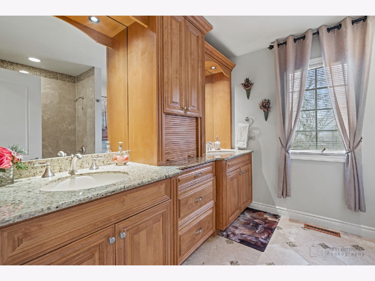 This extraordinary custom home effortlessly combines English and European design elements, nestled on a peaceful, wooded acre in the sought-after Stevenson High School district. Offering over 7,000 square feet of meticulously crafted living space (8,400 square feet gross), this home provides unmatched luxury. The chef's kitchen is a standout, equipped with high-end appliances, Miele Cappuccino machine, granite countertops, and a spacious island. The main floor showcases stunning hardwood floors, and includes formal living and dining rooms perfect for entertaining, as well as an office/library and family room featuring a striking fireplace. The main level also boasts a bedroom and full bathroom, ideal for in-laws or guests. The expansive primary suite offers a spa-like bathroom with a soaking tub, steam shower, and a huge walk-in closet with custom built-ins. The additional bedrooms are generously sized with ample closet space. The fully finished basement, with new carpeting, provides a large rec room and abundant storage, plus a dry sauna to warm you up during Chicago winters. A three-car attached garage offers plenty of room for your vehicles and storage needs. There is also a back up generator to keep your house running even if the power goes out. The park-like, fenced backyard features a gazebo and a charming bridge, while multiple patios, a deck, and a circular driveway enhance the home's appeal. Located on a quiet cul-de-sac, this private sanctuary remains conveniently close to top-rated schools, major commuter routes, parks, shopping, and entertainment. Welcome home!