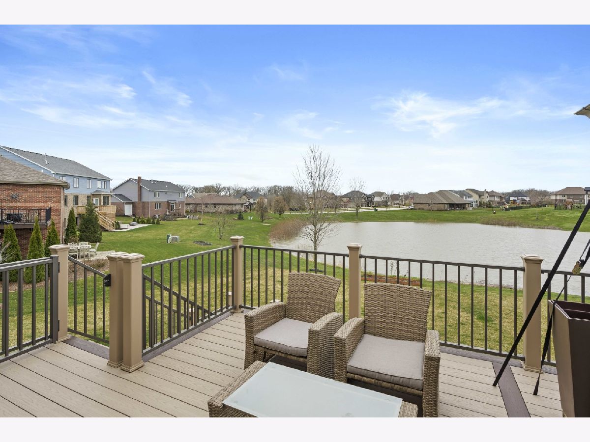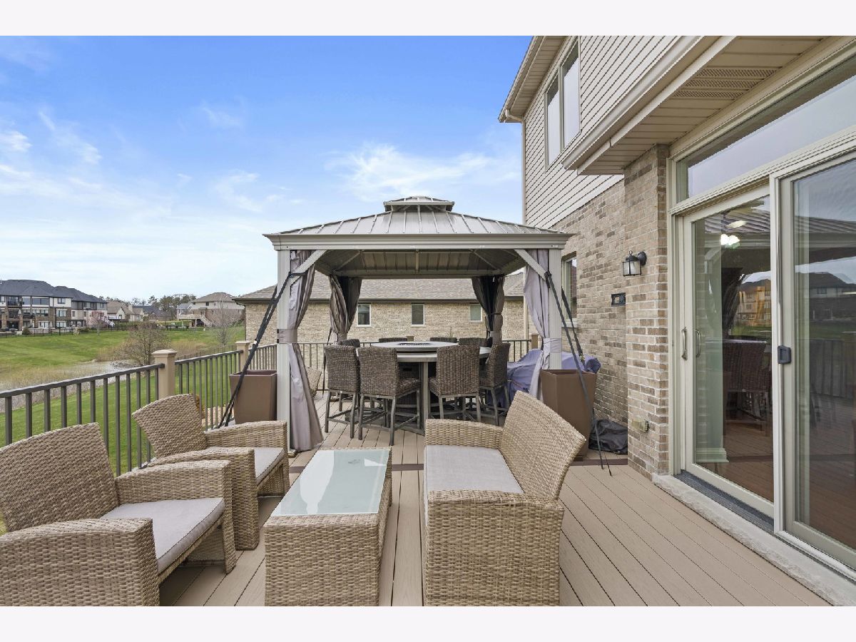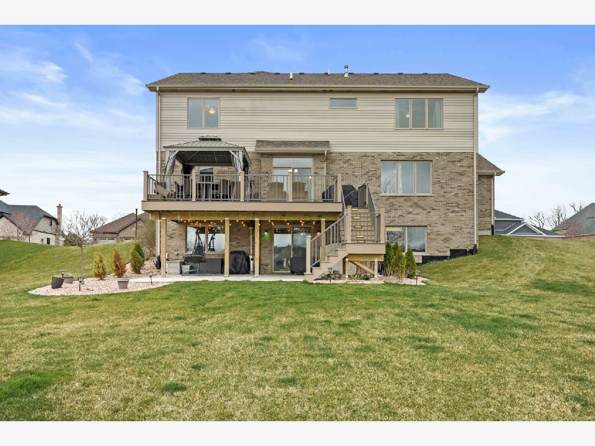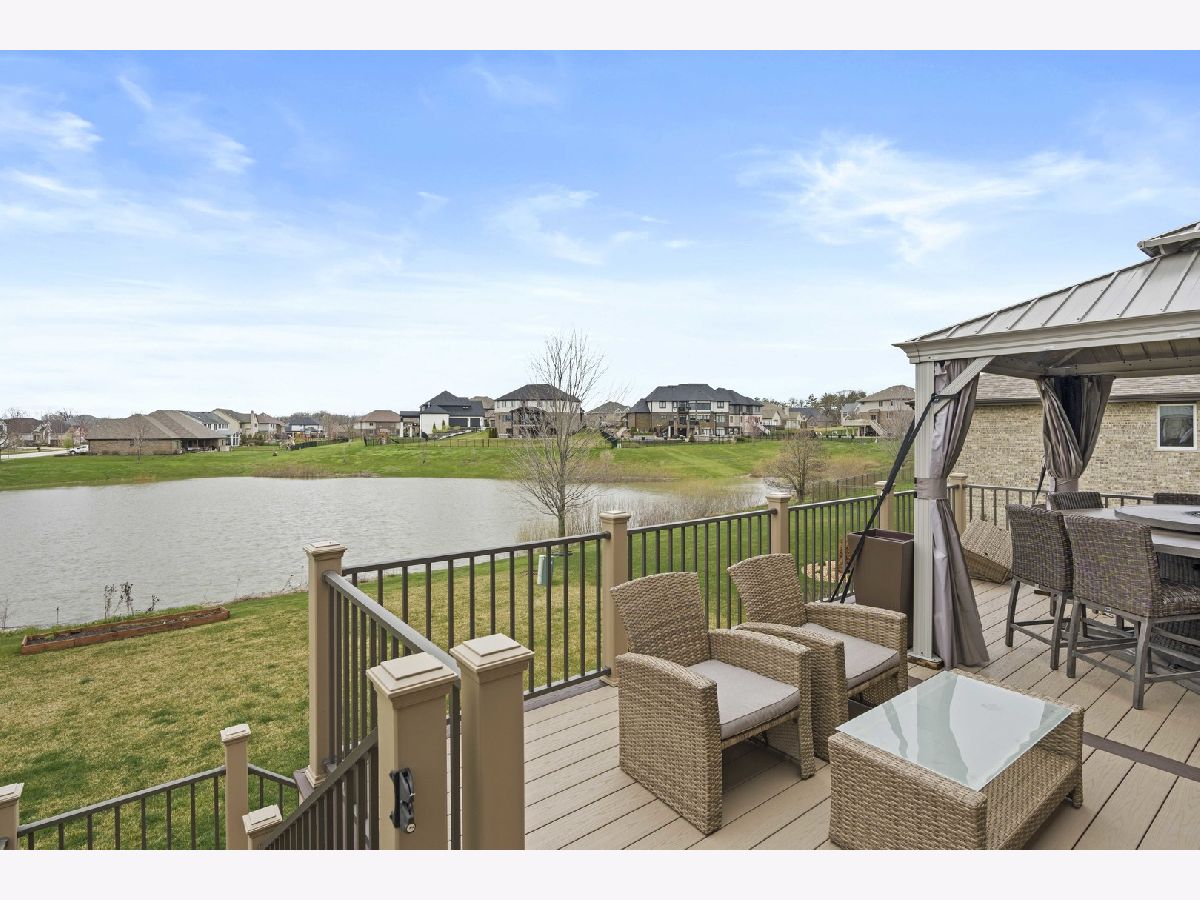 Nestled on a serene pond within the highly desirable Whisper Creek North subdivision of Mokena, this charming two-story home was newly built in 2017 and boasts 4 spacious bedrooms, 2 1/2 bathrooms, and an enormous 3 car garage. Gorgeous, gleaming hardwood floors run throughout the foyer, kitchen, dining and living room. The large, eat-in kitchen features beautiful granite countertops, all stainless steel appliances, a double-oven, modern stone backsplash, tons of cabinet and counter space, a central island, and a sizable pantry. The dining & living room are the perfect place to entertain guests or even host the holidays with family and friends with the living room featuring an upgraded bay window. Unwind in your family room after a long day or enjoy your morning cup of coffee with a cozy built-in fireplace. The first floor also features a powder room meaning guests won't need to traipse upstairs to use the restroom. The large sliding glass door off of the kitchen with transom window above provides an abundance of natural light to the space while leading to a newly constructed Trex deck with attached gazebo. Overlooking your pond view, the deck also features a gas line for a grill, perfect for summer cookouts, and a convenient staircase for ease of access to the oversized walk-out patio and expansive backyard with a zoned sprinkler system. Upstairs leads to a generously sized loft, 4 spacious bedrooms, a full guest bathroom, and desirable 2nd floor laundry room. The primary bedroom features an enormous walk-in closet and an en suite bathroom with a stand alone shower, whirlpool tub, and dual sink vanity. The additional bedrooms are also a great size with tons of closet space as well. The partially finished basement features a craft room, bathroom rough-in and a walk-out leading to an oversized covered patio. Amazingly located near some of the best shopping, dining, and parks that Mokena has to offer! You won't want to miss this one, book your showing today!