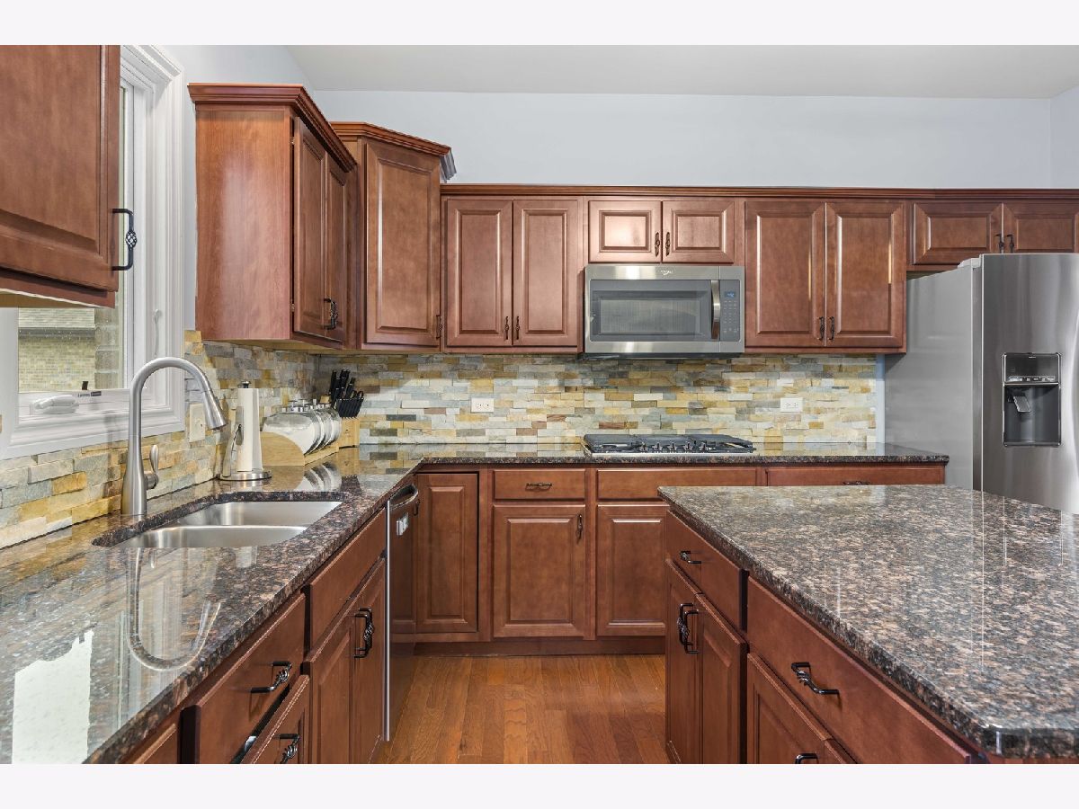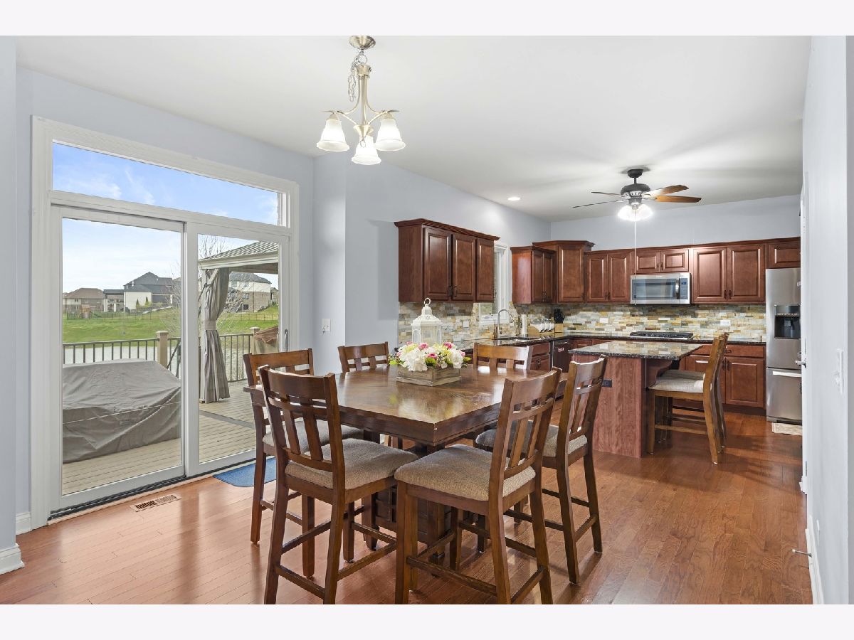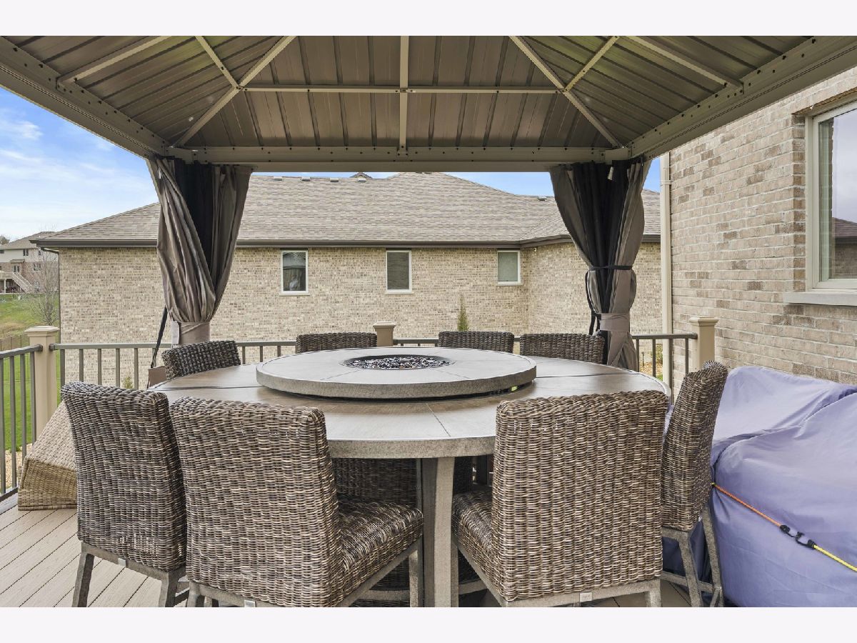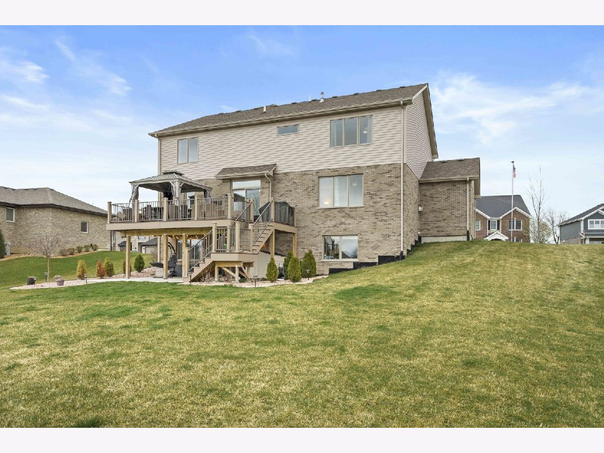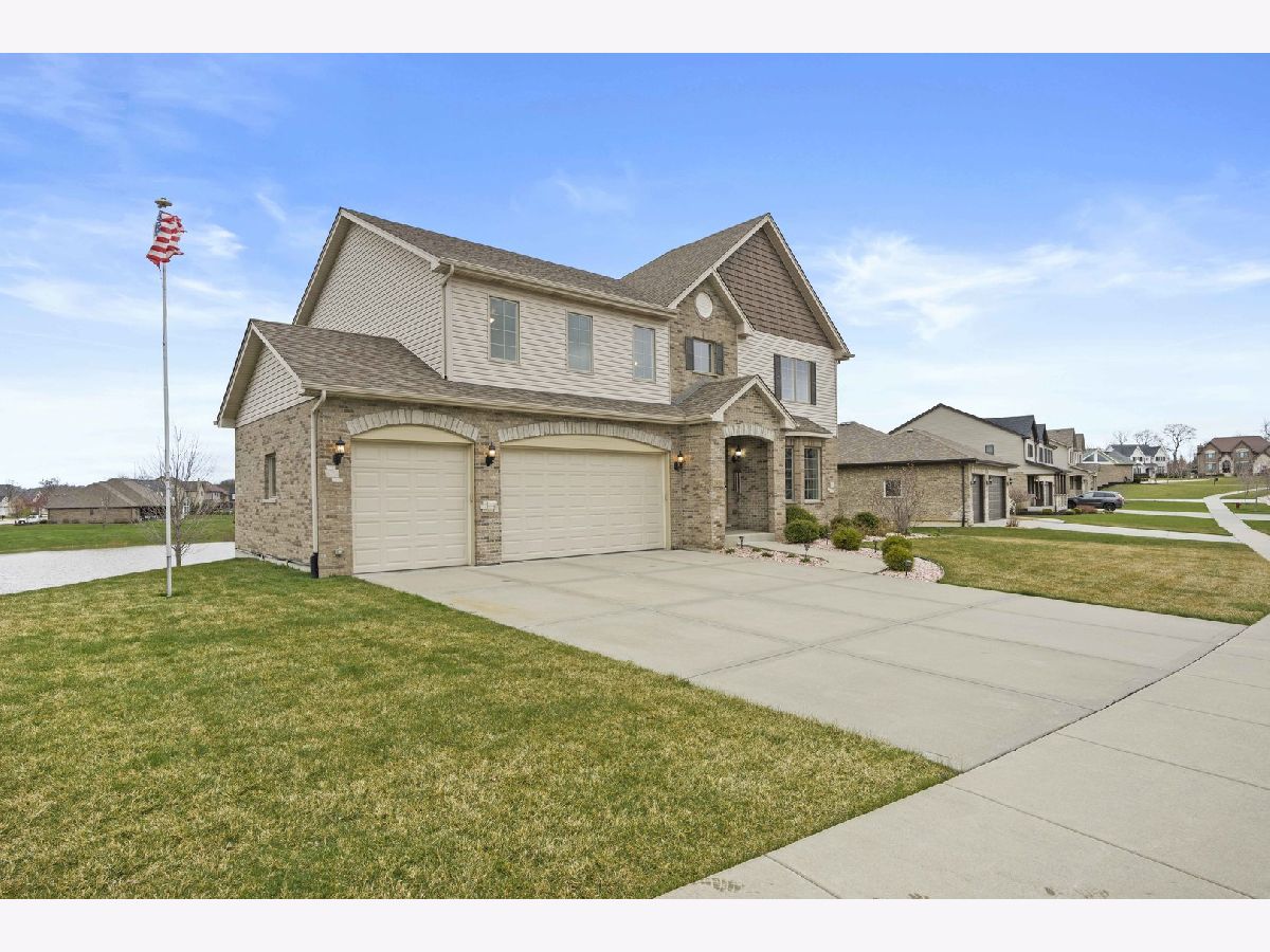 Nestled on a serene pond within the highly desirable Whisper Creek North subdivision of Mokena, this charming two-story home was newly built in 2017 and boasts 4 spacious bedrooms, 2 1/2 bathrooms, and an enormous 3 car garage. Gorgeous, gleaming hardwood floors run throughout the foyer, kitchen, dining and living room. The large, eat-in kitchen features beautiful granite countertops, all stainless steel appliances, a double-oven, modern stone backsplash, tons of cabinet and counter space, a central island, and a sizable pantry. The dining & living room are the perfect place to entertain guests or even host the holidays with family and friends with the living room featuring an upgraded bay window. Unwind in your family room after a long day or enjoy your morning cup of coffee with a cozy built-in fireplace. The first floor also features a powder room meaning guests won't need to traipse upstairs to use the restroom. The large sliding glass door off of the kitchen with transom window above provides an abundance of natural light to the space while leading to a newly constructed Trex deck with attached gazebo. Overlooking your pond view, the deck also features a gas line for a grill, perfect for summer cookouts, and a convenient staircase for ease of access to the oversized walk-out patio and expansive backyard with a zoned sprinkler system. Upstairs leads to a generously sized loft, 4 spacious bedrooms, a full guest bathroom, and desirable 2nd floor laundry room. The primary bedroom features an enormous walk-in closet and an en suite bathroom with a stand alone shower, whirlpool tub, and dual sink vanity. The additional bedrooms are also a great size with tons of closet space as well. The partially finished basement features a craft room, bathroom rough-in and a walk-out leading to an oversized covered patio. Amazingly located near some of the best shopping, dining, and parks that Mokena has to offer! You won't want to miss this one, book your showing today!