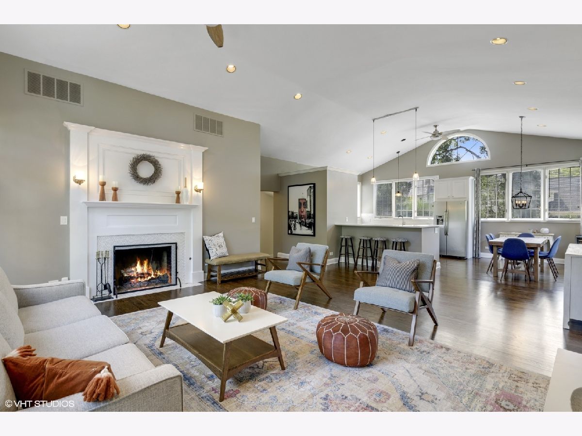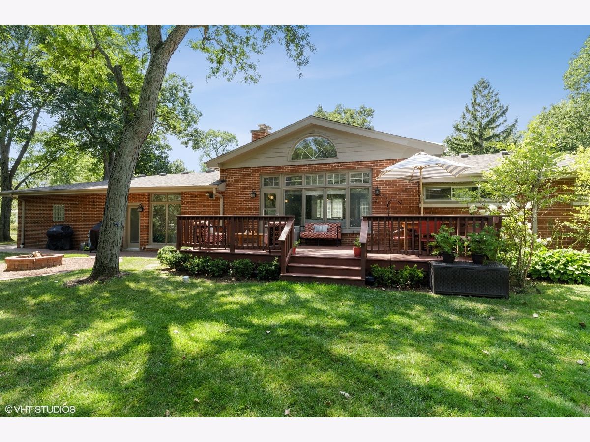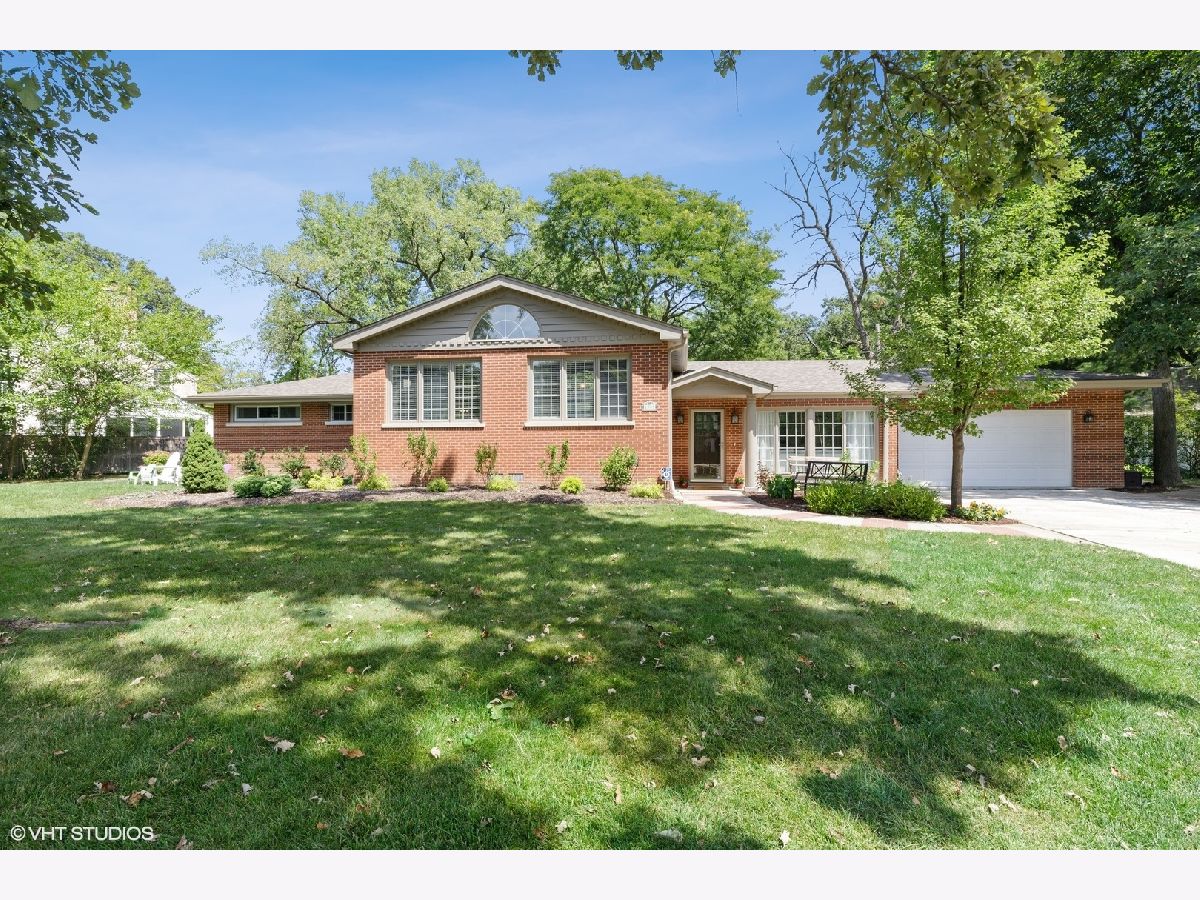 Sprawling and updated red brick ranch in the heart of Glen Oak Acres. You will fall in love with the amazing open concept living space every homeowner dreams of. Enter into a wide entry foyer with new 12x24 floor tiles and a large guest coat closet. To the right is a spacious living area perfect for a family room, office, or playroom. Dark hardwood floors, a wall of windows for natural light, and a wall of built-ins for storage are just a few features of the room. The 12x24 floor tiles flow from the foyer directly into the laundry area. This large room has a full-size washer and dryer, mud sink, plenty of storage, and room to spare for an exercise area, craft space, etc. You will need to see to believe the amazing hub of the home with vaulted ceilings, beautiful dark hardwood floors, recessed can lighting, and tons of windows for natural light. The large family room area has a stunning fireplace with updated mosaic tile surround and colonial mantle with detailed moldings up the wall. The family room is wide open to both the kitchen and dining room. The huge chef's kitchen features white cabinetry with a center accent island for food prep and raised breakfast bar for seating. Prepare to fall in love with the two-toned quartz countertops, stainless steel appliances, and mini white subway tile backsplash. The spacious dining area has dark hardwood floors, an updated light fixture, and a set of French doors out to the yard. Completing the main area of the home is a convenient marble powder room with a mosaic chair rail. The bedroom wing of the home has three good-sized bedrooms with hardwood floors and two full bathrooms. The en-suite master bathroom features a stand-up shower with marble-look tile, body sprays, and a modern vanity with vessel sink. The hall bathroom features a deep whirlpool tub with neutral tile surround and a beautiful updated double sink vanity with quartz countertop. Transition to the outside of your home where you will enjoy a maturely landscaped yard with a large cedar deck, built-in firepit, and playset. In addition, there is an attached two car garage. Enjoy unbeatable one floor living in one of Glenview's most desirable neighborhoods!