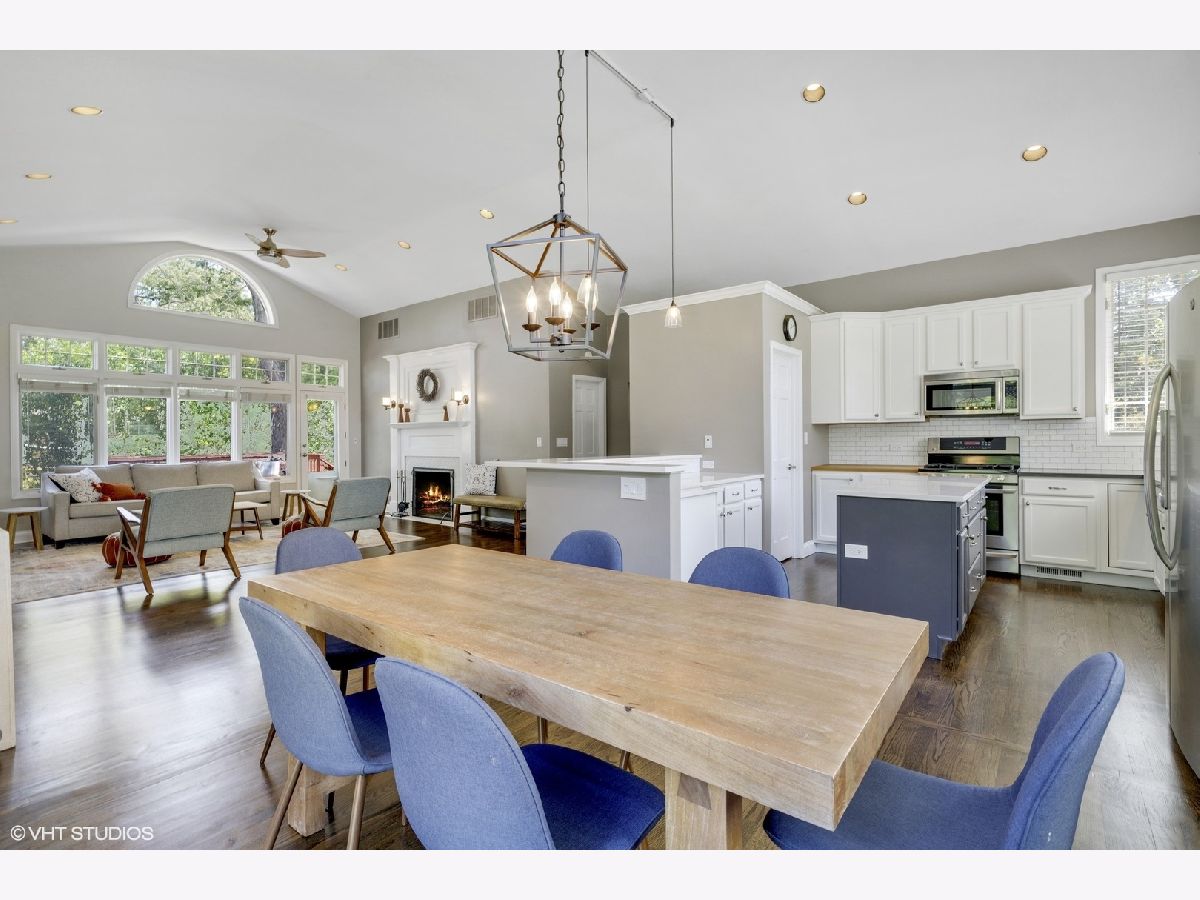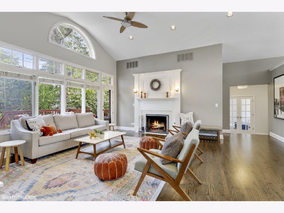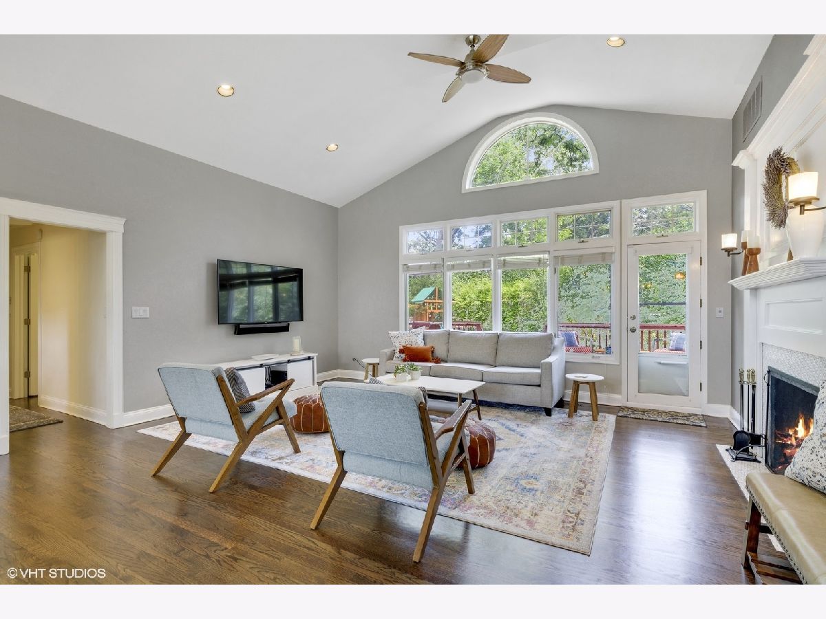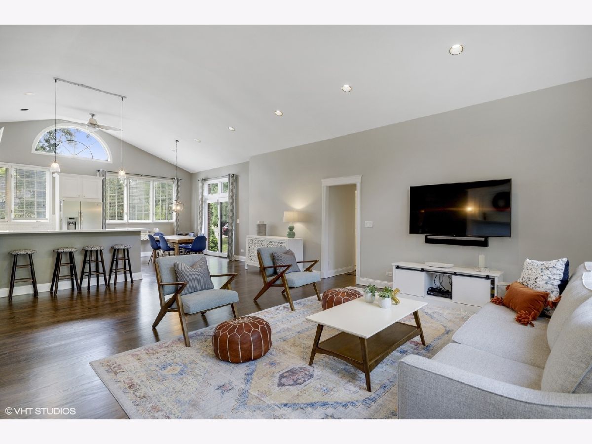 Sprawling and updated red brick ranch in the heart of Glen Oak Acres. You will fall in love with the amazing open concept living space every homeowner dreams of. Enter into a wide entry foyer with new 12x24 floor tiles and a large guest coat closet. To the right is a spacious living area perfect for a family room, office, or playroom. Dark hardwood floors, a wall of windows for natural light, and a wall of built-ins for storage are just a few features of the room. The 12x24 floor tiles flow from the foyer directly into the laundry area. This large room has a full-size washer and dryer, mud sink, plenty of storage, and room to spare for an exercise area, craft space, etc. You will need to see to believe the amazing hub of the home with vaulted ceilings, beautiful dark hardwood floors, recessed can lighting, and tons of windows for natural light. The large family room area has a stunning fireplace with updated mosaic tile surround and colonial mantle with detailed moldings up the wall. The family room is wide open to both the kitchen and dining room. The huge chef's kitchen features white cabinetry with a center accent island for food prep and raised breakfast bar for seating. Prepare to fall in love with the two-toned quartz countertops, stainless steel appliances, and mini white subway tile backsplash. The spacious dining area has dark hardwood floors, an updated light fixture, and a set of French doors out to the yard. Completing the main area of the home is a convenient marble powder room with a mosaic chair rail. The bedroom wing of the home has three good-sized bedrooms with hardwood floors and two full bathrooms. The en-suite master bathroom features a stand-up shower with marble-look tile, body sprays, and a modern vanity with vessel sink. The hall bathroom features a deep whirlpool tub with neutral tile surround and a beautiful updated double sink vanity with quartz countertop. Transition to the outside of your home where you will enjoy a maturely landscaped yard with a large cedar deck, built-in firepit, and playset. In addition, there is an attached two car garage. Enjoy unbeatable one floor living in one of Glenview's most desirable neighborhoods!
