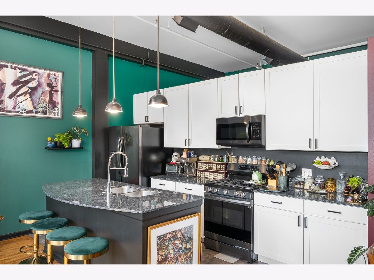 Find your vibe in this Bucktown loft at the historic Chandelier Factory! Wide-open and full of light, this 1BR home offers 21 feet of living space framed by 13' ceilings, exposed brick, and a wall of southwest-facing windows that glow with golden-hour sunshine. It's the perfect canvas for a relaxed boho aesthetic-airy, inviting, and full of character. The kitchen brings together style and function with granite counters, stainless appliances, a large island for gathering, and fresh white cabinetry accented by matte black hardware. The bathroom feels bright and serene with marble double vanities, designer lighting, and a whirlpool tub for unwinding.Your king-sized bedroom retreat includes double Elfa-organized closets. The home also offers a pantry, coat closet, in-unit laundry, central air & heat, hardwood floors, and a cozy fireplace. Step out to your private balcony, ideal for plants and a morning coffee, a deeded oversized garage space (included) and extra storage make city living effortless. All just steps from Bucktown's coffee shops, local boutiques, cocktail bars, the 606 Trail, and the CTA Blue Line-everything you love about this neighborhood right outside your door. This is more than a loft - it's a lifestyle