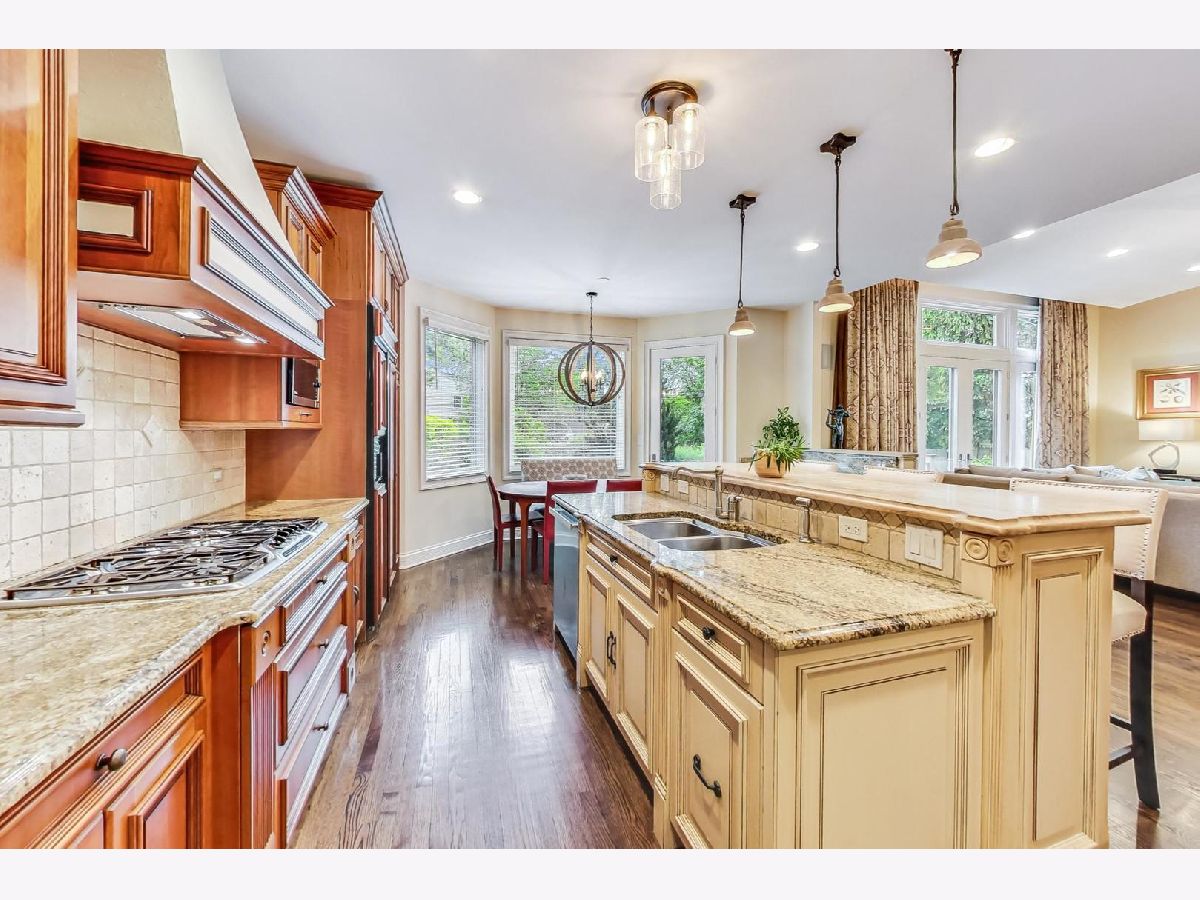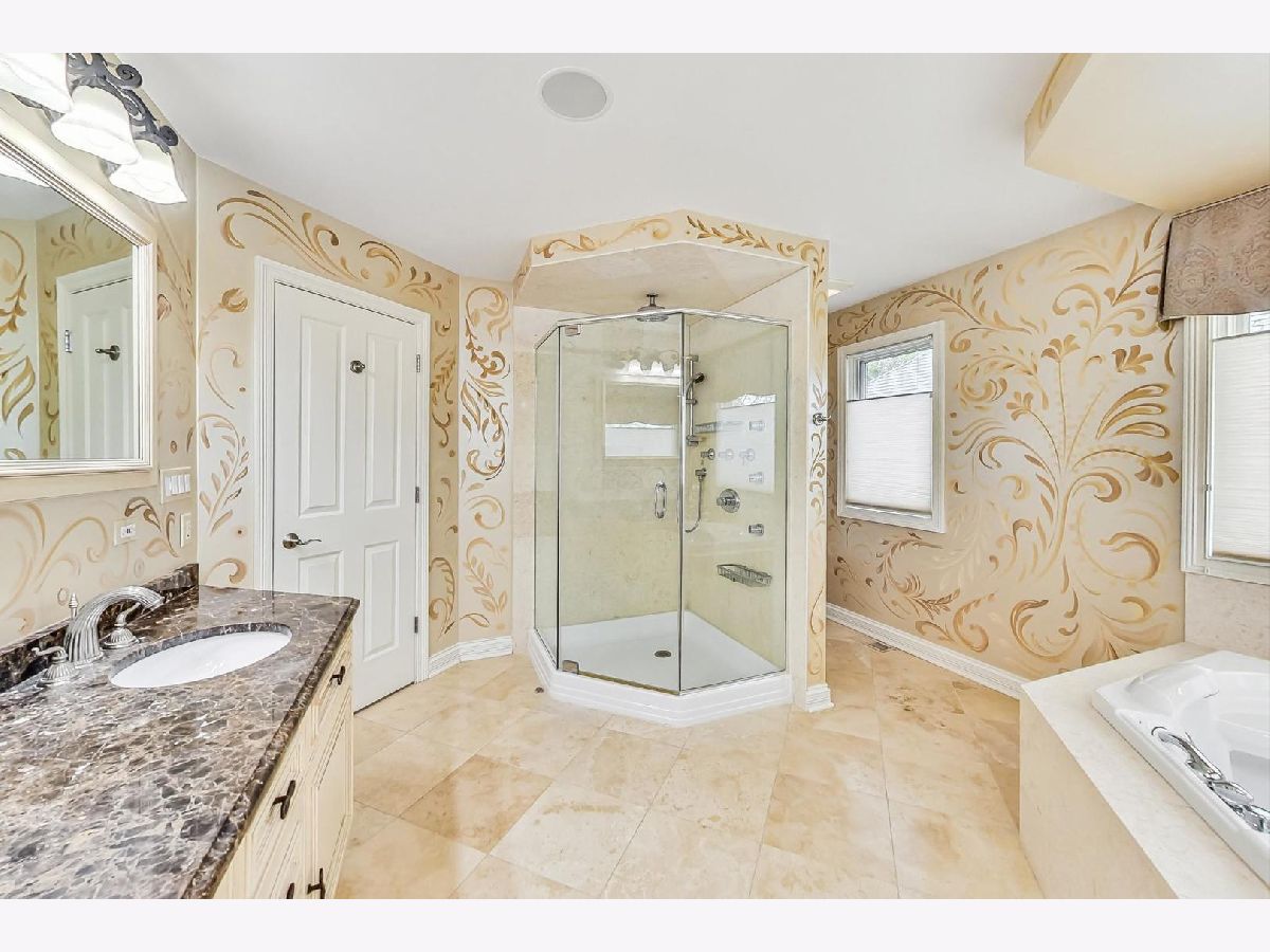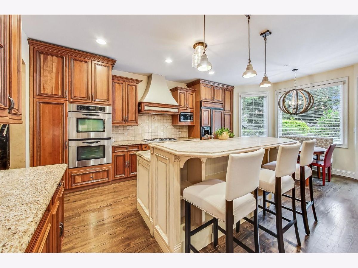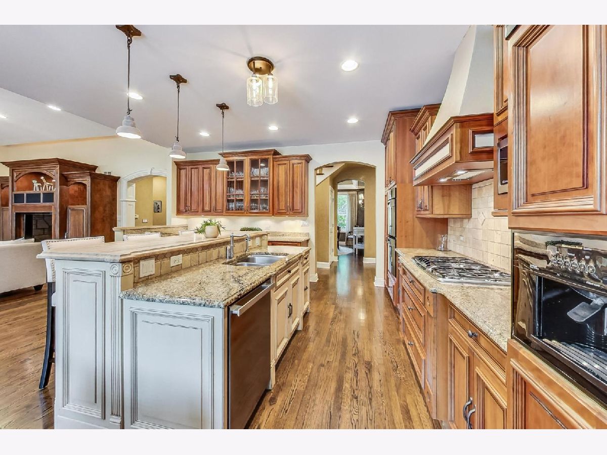 Absolutely stunning! From the moment you arrive, this exceptional home exudes curb appeal with a brick paved driveway, lush landscaping, and prime location, setting the stage for the perfect home located just blocks from Wescott Elementary, and a few minutes to Maple Jr. High and GBN!. Crafted with meticulous attention to detail and upgraded finishes, this newer (2002) all-brick and stone home offers a blend of elegance and functionality, perfect for entertaining and everyday living. Step through the foyer to a separate living room and elegant dining room ideal for large gatherings. Rich moldings, arched doorways and gleaming hardwood floors grace the first level, setting a tone of sophistication throughout. Chefs will appreciate the eat-in gourmet kitchen featuring a large island, beautiful cabinetry, high-end stainless appliances, granite counters, and a travertine island. Flowing into the spacious family room with a stunning stone gas fireplace, built-in entertainment unit and 11 ft. ceiling, this space is designed for pure enjoyment. A wall of windows and French doors open to a professionally landscaped, fully fenced backyard complete with a brick paved patio, multiple sitting areas, firepit, underground sprinklers, and ample green space. A generously sized main floor office boasts custom cabinets, bookshelves, and two built-in desks, providing a haven for productivity. Convenience is key with a first-floor laundry located off the 2-car attached garage, offering a sink and plenty of cabinets. Upstairs, the gracious Primary Suite awaits, with abundant natural light, cozy window seats, tray ceiling, and a spa-like bath with whirlpool tub, separate shower, and dual sink vanity. Three additional generously sized bedrooms, including one with an ensuite bath, 2 with walk-in closets, all equipped with custom closet organizers. Ample storage is found at every turn, including the fully finished lower level, which features wood-like vinyl floors, a vast recreation area with a pool table, wet bar, 5th bedroom, a full bathroom, and an exercise room/6th bedroom with three closets. Additional features include a security system, multi-zoned HVAC systems, a backup sump pump and sound speakers in key areas. Located just blocks from award-winning District #30/#225 schools, proximity to the Sports Complex, YMCA, Town, Metra Train, library, and easy access to major highways (94 & 294), this is a house that you want to call your HOME!