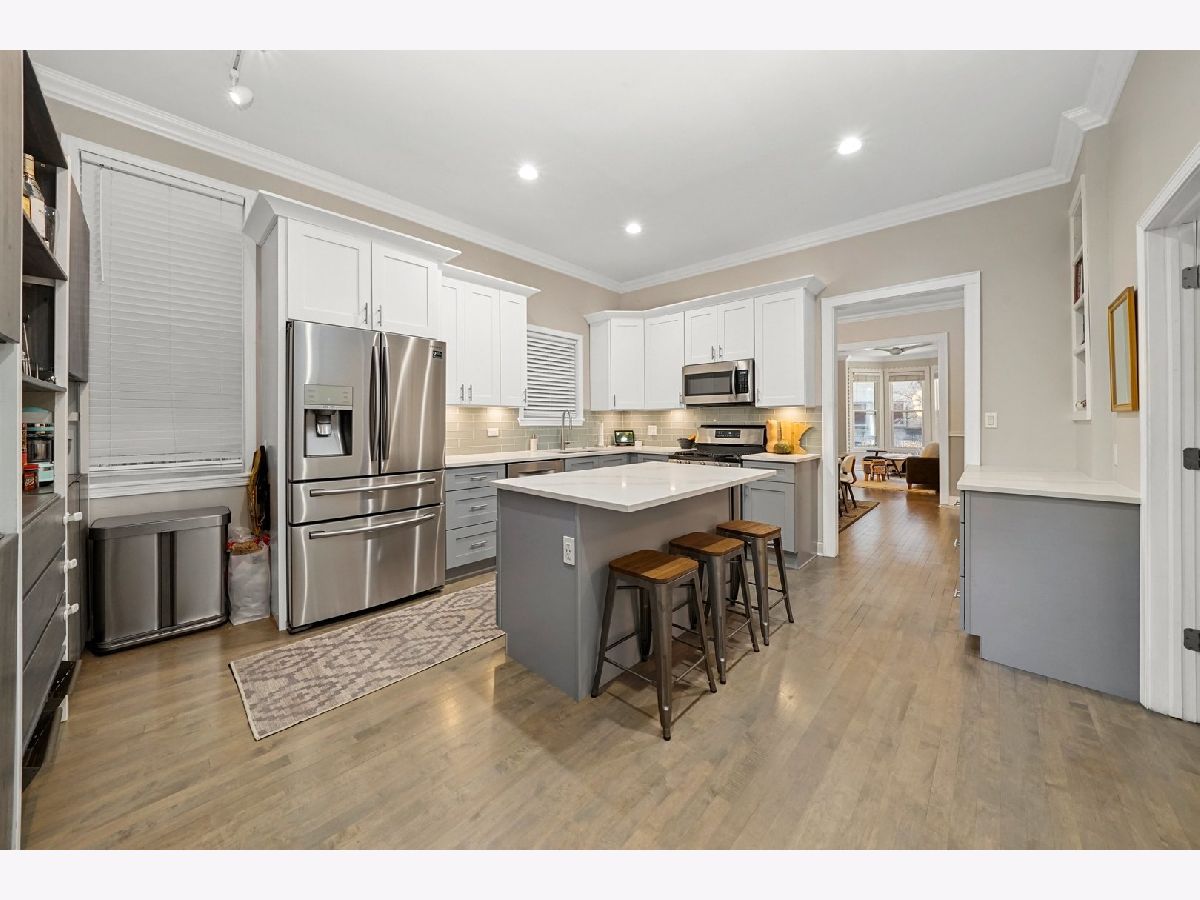 Take a 3D Tour, CLICK on the 3D BUTTON & Walk Around. Watch a Custom Drone Video Tour, Click on Video Button! This 4 bed/3.1 bath home is a true Logan Square gem conveniently located two blocks from the 606 trail. The open concept layout is an entertainer's dream clad large bay windows that fill the room with natural light, fresh paint, hardwood floors & crown molding throughout. The top-of-the-line chef's kitchen was recently renovated with new Samsung and Bosch appliances, soft-close cabinetry, and quartz marble countertops. Easy access to enclosed porch and large professionally landscaped yard with 2-level Trex deck & aluminum railings. The space off the kitchen is perfect for a home office or gym. Three bedrooms on the 2nd floor level. Retreat to your master bedroom ensuite boasting large walk in closet & brand new master bath with new toilet, separate built in vanity, updated light fixtures & mirror, large walk-in shower with marble & subway tile, & high-end faucet fixtures. Spacious 2nd & 3rd bedrooms include custom built in shelving/ storage. The lower level space is perfect for a studio, workshop, or family room featuring 2nd kitchen, full bath, and additional storage. Other notable highlights include an abundance of storage throughout the home, brand new Samsung washer/dryer, humidifier, Nest thermostat, Nest Protect system & smart light bulbs. Easy access to blue line, Armitage bus, and 90-94. Steps from Palmer Square Park, restaurants, nightlife, and everything wonderful Logan Square has to offer!