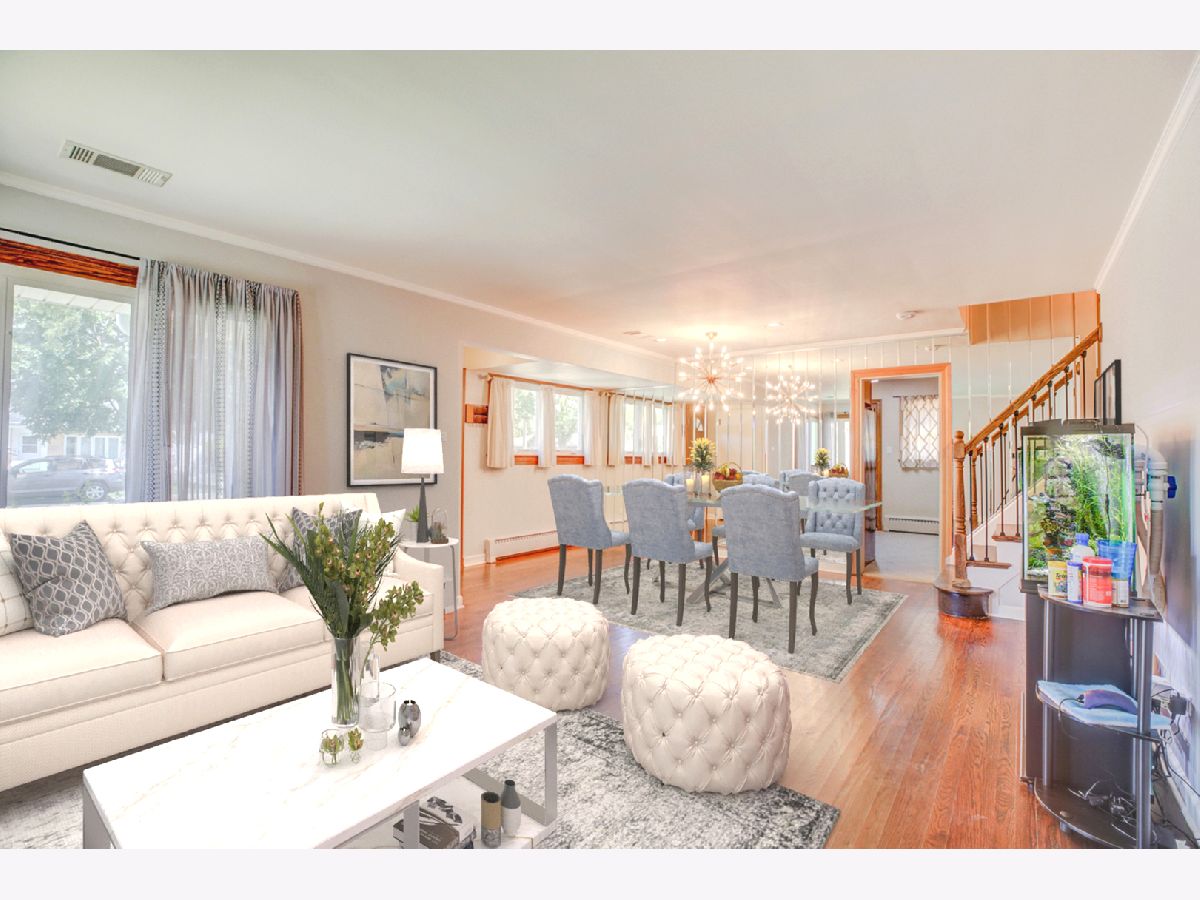Expanded split level W/ 4BR/2BA and 50' wide lot in beautiful Park Ridge! Inside you will feel the warmth with the gleaming hardwood floors and abundance of excellent natural light! Sunny kitchen with black/stainless steel appliances. Beautifully updated bathrooms and newer roof! Large family room is great for family time and/or entertaining. Lower level has 4th bedroom and full bath. Newer 2 1/2 HUGE commercial like car garage. Close to expressway, Mariano's, restaurants, shopping and more! Amazing School Districts.