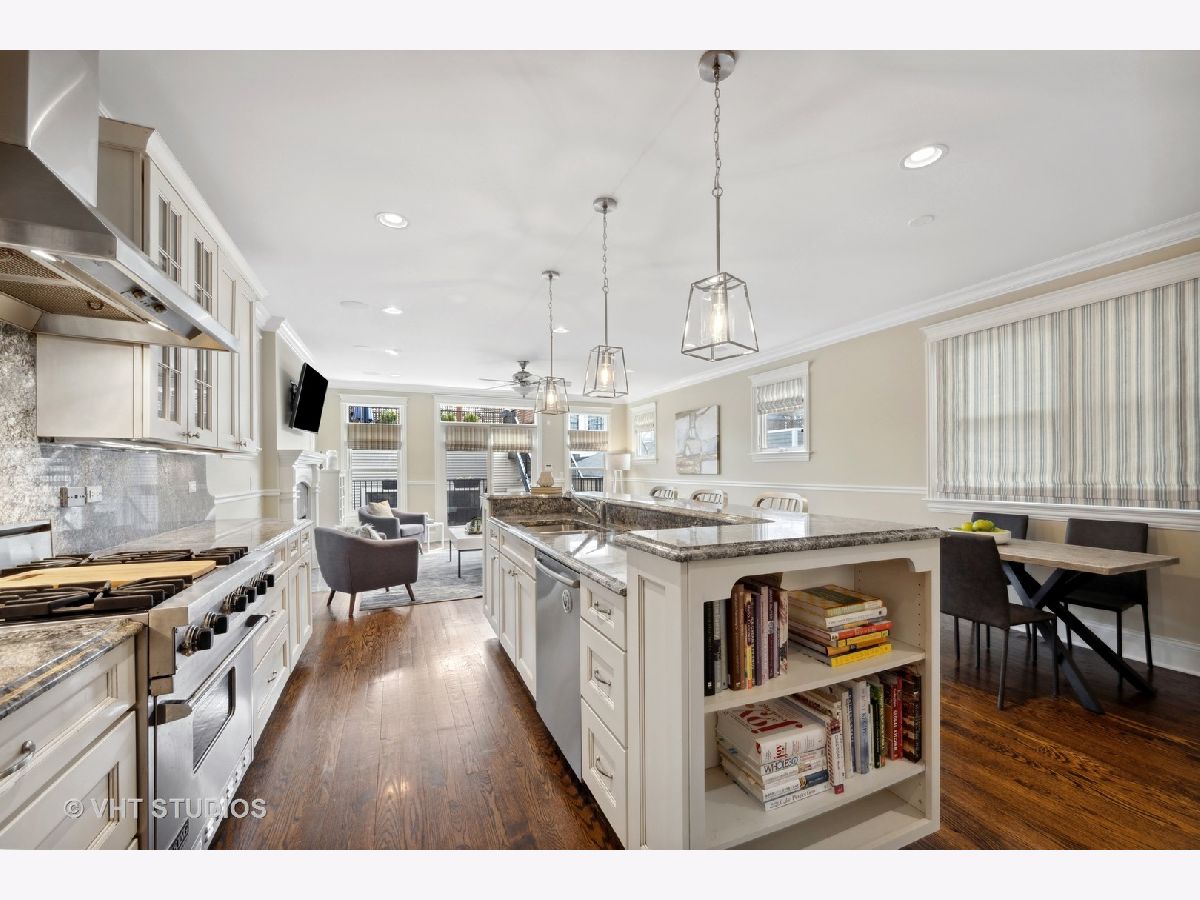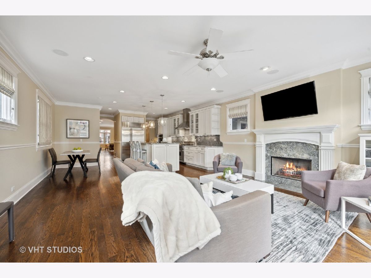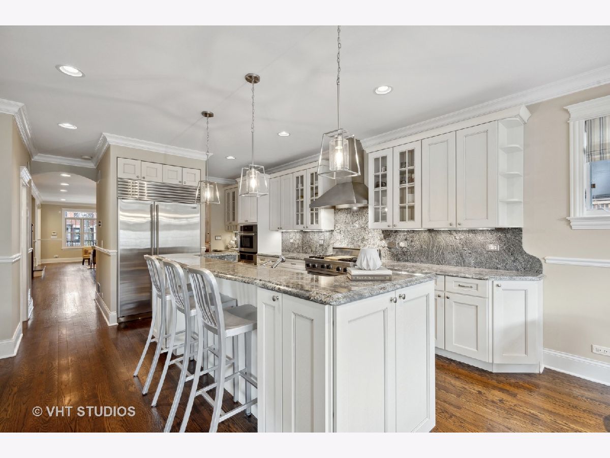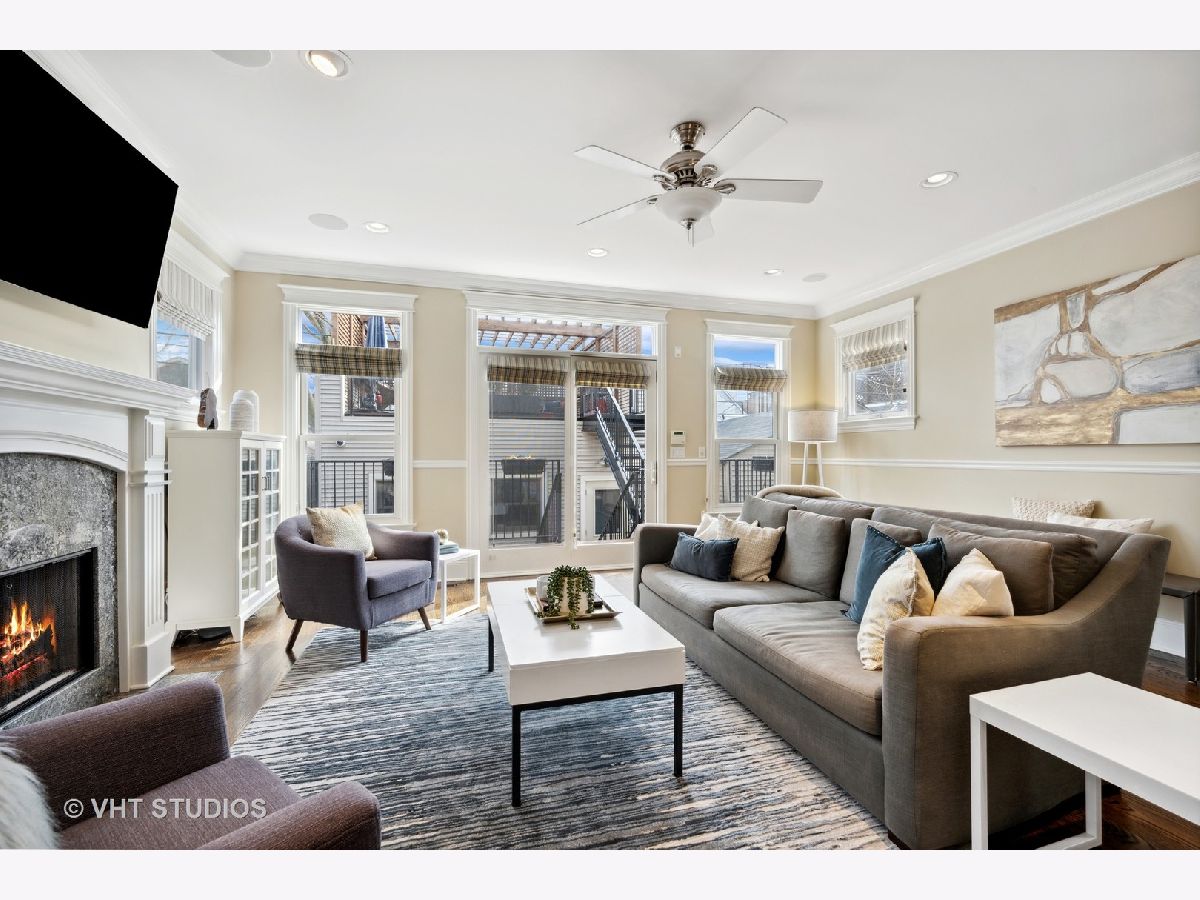 Heart of Roscoe Village: Greeted by a professionally landscaped front yard & parkway, this home is warm & inviting & has been meticulously maintained. Located on a 1-way tree-lined street in Audubon School Dist this 5 bed, 3.1 bath home has stunning millwork, arched lintels, 3 fireplaces, (inc 1 wbfp), hardwood floors on main and upper level, & 9' ceilings throughout. The house features many Smart home capabilities incl speakers, lighting, TV/AV, Wi-Fi boosters, an updated A/V and automation Sonos, Lutron, & Aero systems w/adjustable volume controls. You will never want to leave the amazing 20 x 19 garage roof deck, w Pergola that's great for entertaining. The impressive chef's kitchen does not disappoint with high end all stainless-steel Viking, Sub Zero, Bosch and Jenn Air appliances, butler's pantry w/wine fridge, 10' island with Blue Ice granite that seats three, has under-cabinet and up lighting, an adjacent eat-in breakfast area and 4x4x9 walk-in pantry for additional storage. Generous-sized 31 x 18 primary bedroom will easily accommodate a king size bed with room for a seating area, has wall-to-wall south-facing windows that flood the room with natural light, an architectural recessed ceiling, Juliet balcony that overlooks the garage roof deck + two 7 x 6 custom built walk-in closets. Step into the stunning carrara marble spa-like bath w heated floors, 2 separate sinks, TOTO jetted soaking tub, steam shower w 2 seating areas, rain shower & body sprays + private WC. Generous-sized 2nd & 3rd bedrooms. 2nd bathroom features soaring ceiling skylight, w/Toto and Grohe fixtures. Head down to the lower level for game night w friends or watch your favorite concert in your large family room w wet bar, wine fridge and an adjacent wine cellar for all you wine connoisseurs. Premiere location just steps to the heart of roscoe village: Audubon school, Starbucks, Four Treys Tavern, Full Moon Tavern, The Reveler, Commonwealth, Frasca Pizzeria & Wine Bar, Brown Bag Seafood Co. and Volo Restaurant & Wine Bar & Roost Chicken & Biscuits. 2-blocks to the CTA Brown line, Trader Joe's, Paulina Market and Hamlin Park. Close to Southport Corridor & Lakeview shops and the Music Box & Vic Theatre.