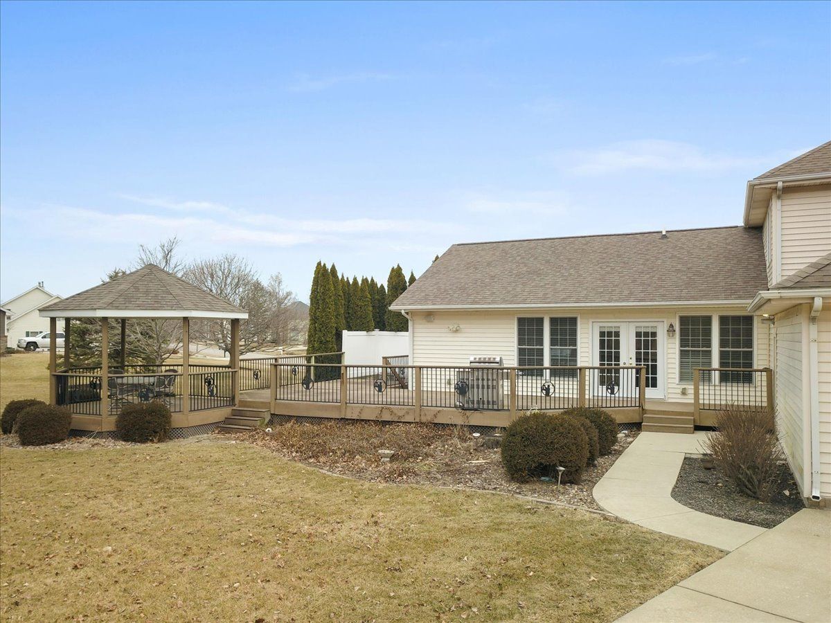 This 5 bedroom, 4.5 bath home has over 6,000 square feet & sits on a 2/3 acre lot on the corner of the golf course. Over half million in updates & additions since last purchased! If you are looking for a house to spread out in, this is it. Perfect for multi generational families. Two master bedrooms, two kitchens, six living areas including game room and office, modern style kitchen with walk in pantry open to a beautiful family room. The addition to home included a master suite on main floor with 10' ceilings, amazing custom design walk in closet & additional family room with windows to the back. Second master suite on 2nd floor with two more spacious bedrooms & a large full bath. Full basement has 5th bedroom, kitchen, family room, game room and walks out to deck. Extra wide side loading garage with sealed floors and attached workshop. Huge Trex wrap around deck with gazebo attached.