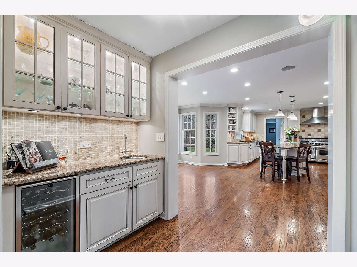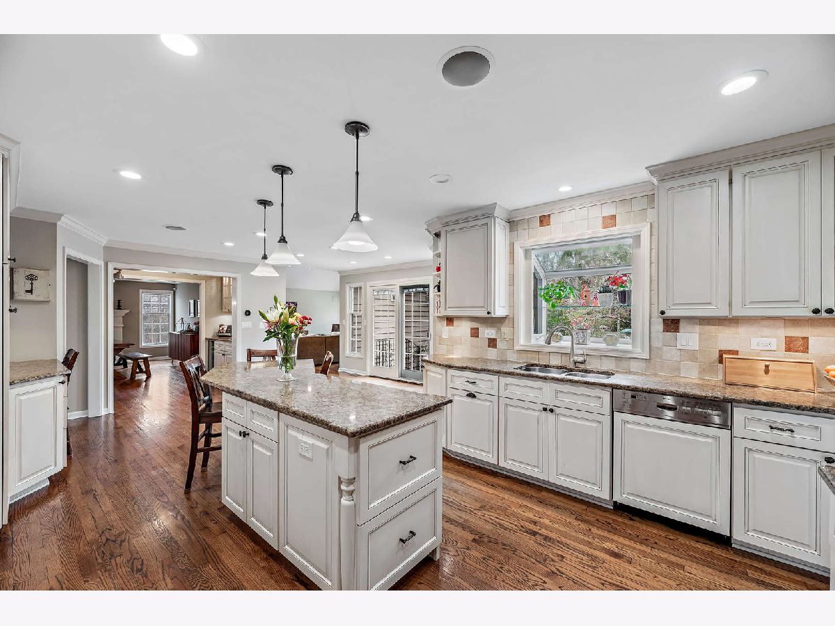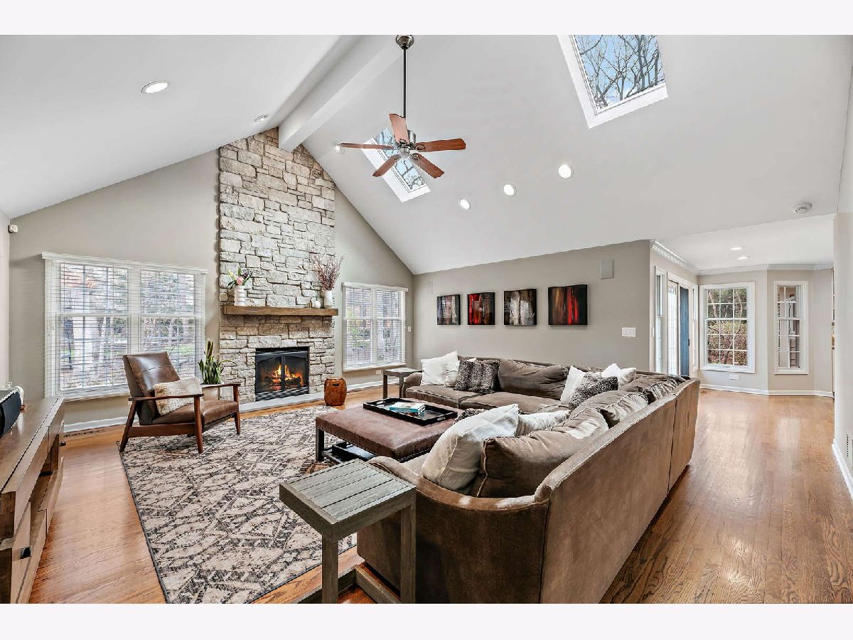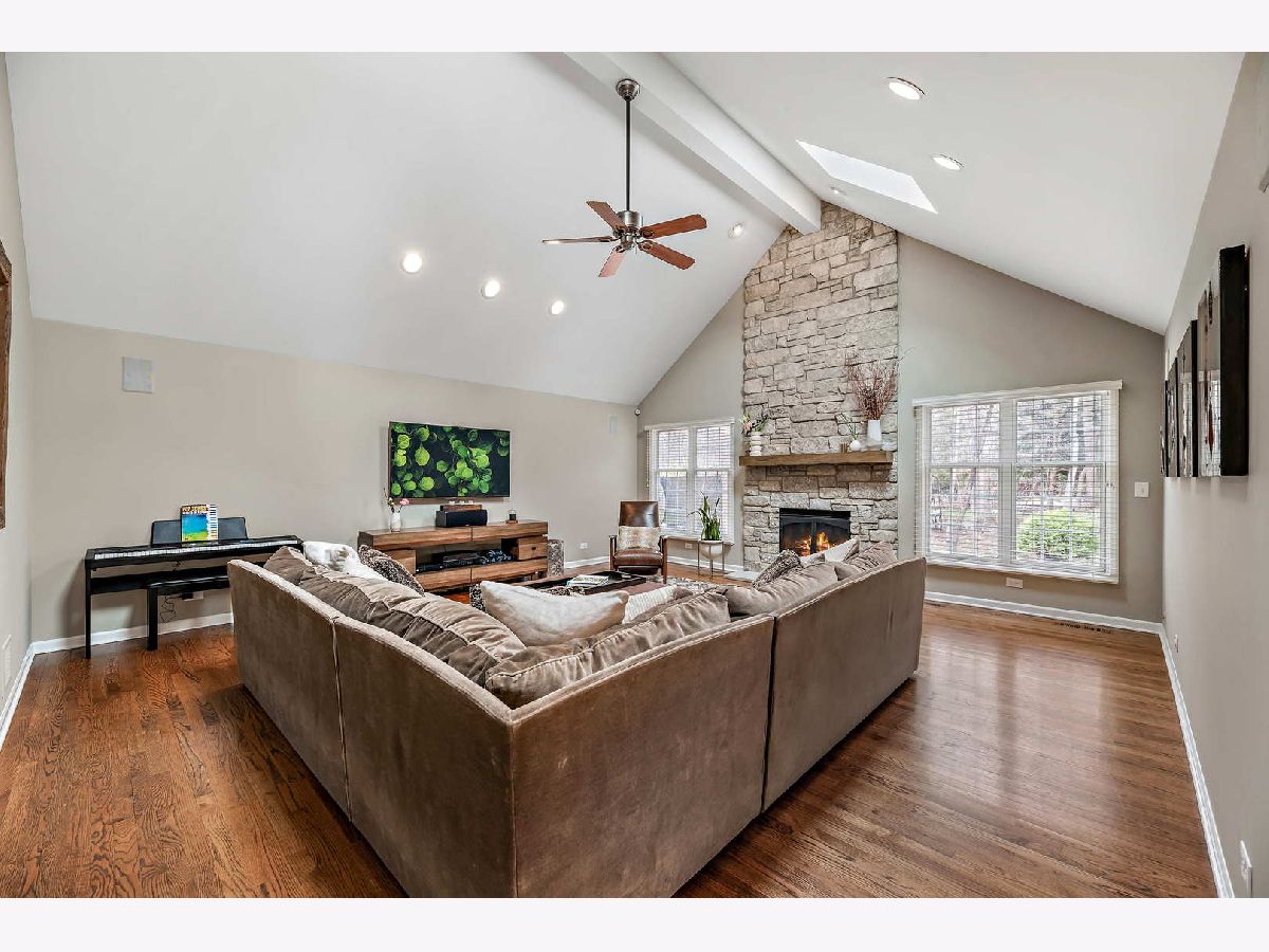 Peacefully situated on one of Lincolnshire's most beloved tree-lined streets, this bright, charmingly updated Colonial is the ideal family home with 3,800 square feet of living space, plus a renovated basement with a fifth bedroom, and a beautifully landscaped yard. A brick paver lined circular drive introduces the home and gives it instant curb appeal. Balancing a sense of tradition with casual living, the home is anchored by a well-designed eat-in kitchen with a Viking range and double ovens, a butler's pantry with a wine fridge, and a spacious sun-lit family room with dramatic vaulted ceilings, skylights, and renovated fireplace. Formal living and dining rooms, a home office, a laundry room, and a half bath further elevate the floorplan's versatility for today's work-from-home, play-from-home lifestyles. Elegant hardwood flooring throughout infuses the main living spaces with authentic warmth. Upstairs, there are four bedrooms and three full bathrooms, including a primary bedroom suite and luxuriously 2020-remodeled walk in shower, plus it has double sink vanities and a whirlpool. The current owners lovingly maintained this home and made many value-added upgrades throughout the years. Features include new front windows, new lighting, new washer and dryer (2020), two-zoned heating/cooling, and a sound system for the dining, family, kitchen, and patio. The 3-car car garage is a rare bonus! This one is truly special for Lincolnshire, and near its award-winning schools and just down the street from Whytegate Park.