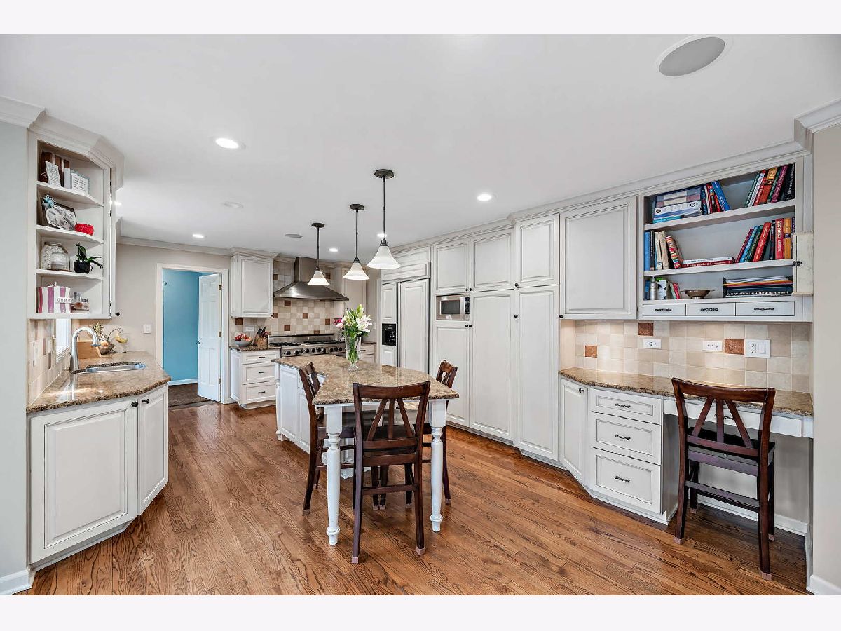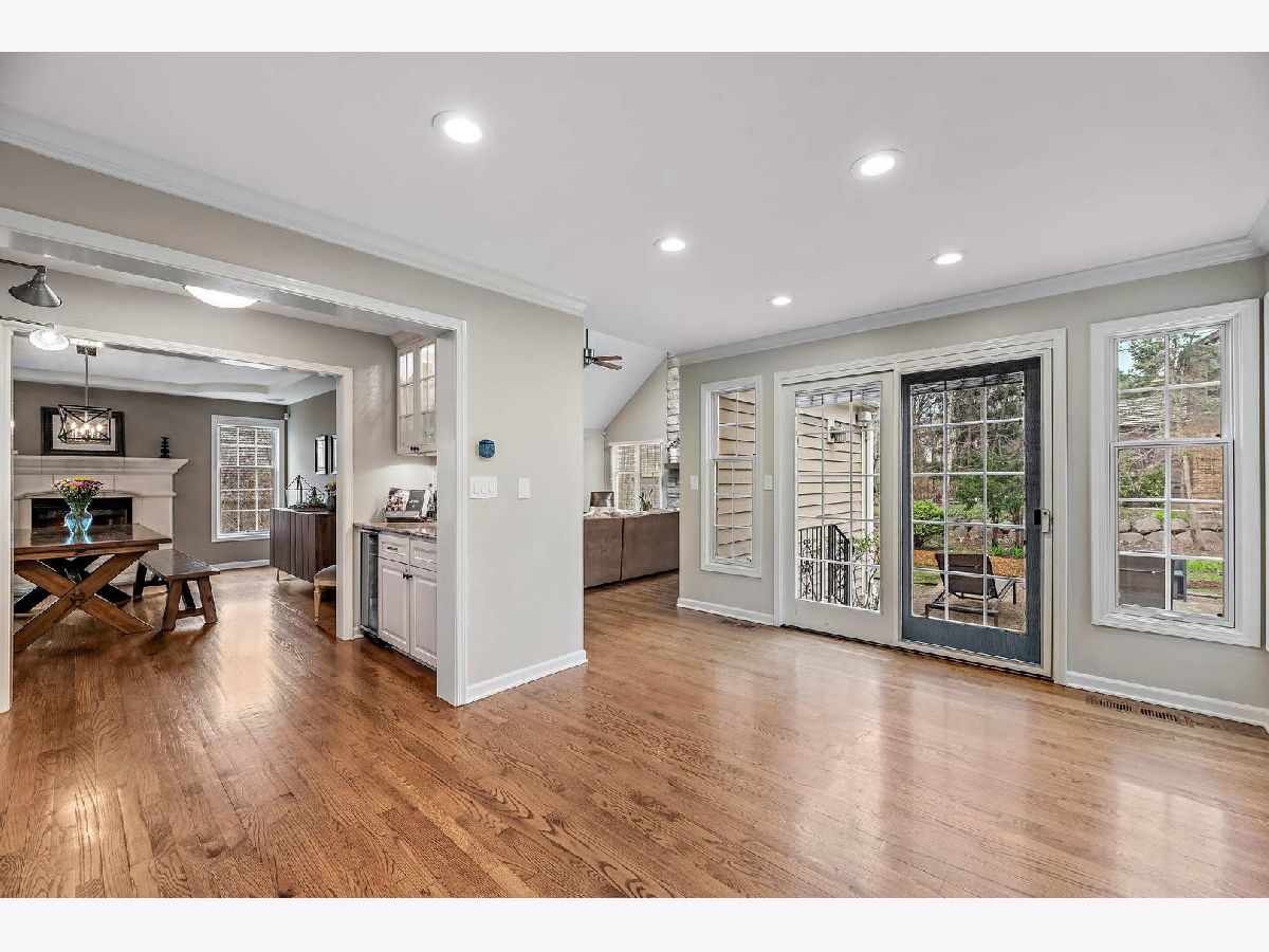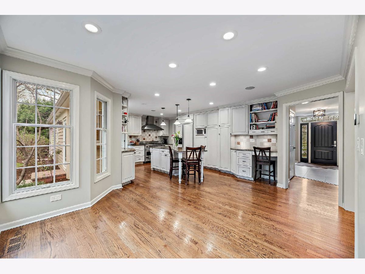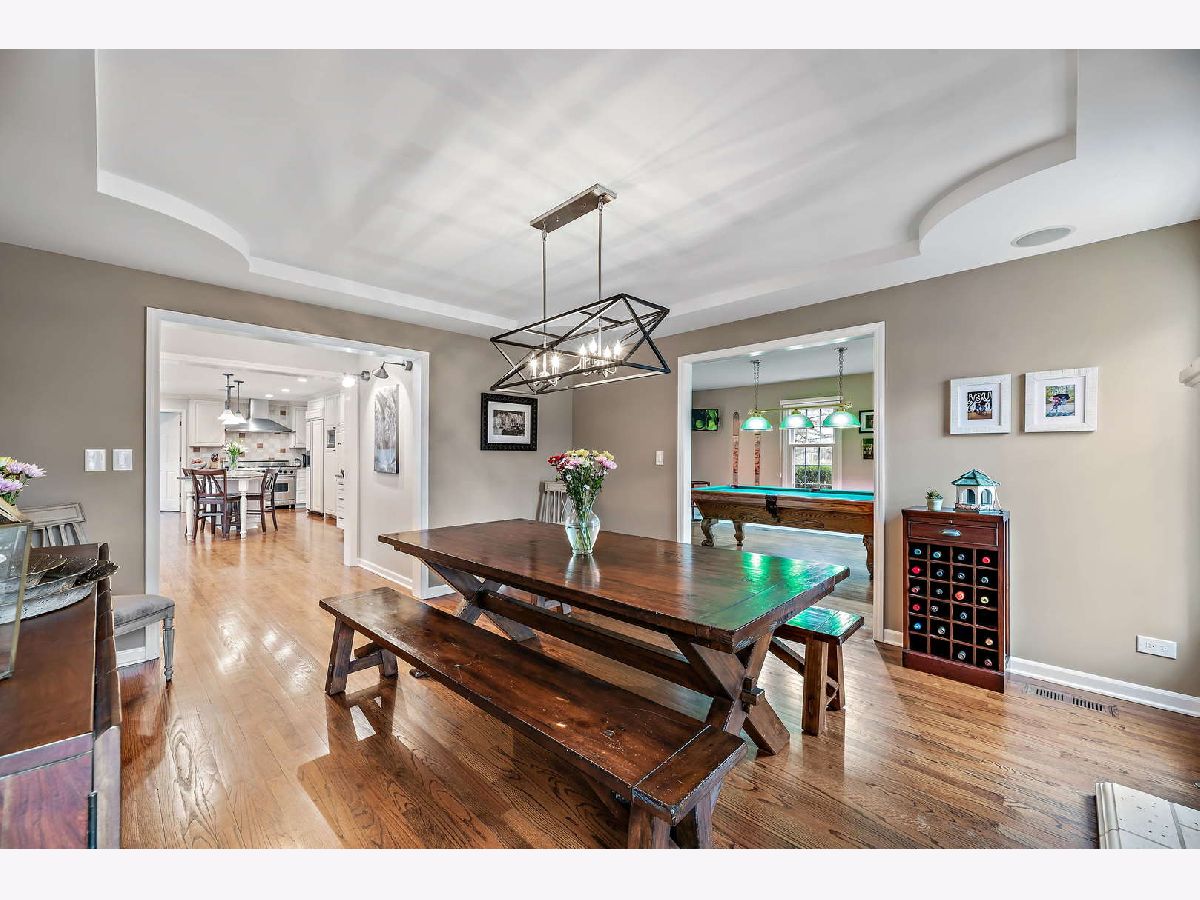 Peacefully situated on one of Lincolnshire's most beloved tree-lined streets, this bright, charmingly updated Colonial is the ideal family home with 3,800 square feet of living space, plus a renovated basement with a fifth bedroom, and a beautifully landscaped yard. A brick paver lined circular drive introduces the home and gives it instant curb appeal. Balancing a sense of tradition with casual living, the home is anchored by a well-designed eat-in kitchen with a Viking range and double ovens, a butler's pantry with a wine fridge, and a spacious sun-lit family room with dramatic vaulted ceilings, skylights, and renovated fireplace. Formal living and dining rooms, a home office, a laundry room, and a half bath further elevate the floorplan's versatility for today's work-from-home, play-from-home lifestyles. Elegant hardwood flooring throughout infuses the main living spaces with authentic warmth. Upstairs, there are four bedrooms and three full bathrooms, including a primary bedroom suite and luxuriously 2020-remodeled walk in shower, plus it has double sink vanities and a whirlpool. The current owners lovingly maintained this home and made many value-added upgrades throughout the years. Features include new front windows, new lighting, new washer and dryer (2020), two-zoned heating/cooling, and a sound system for the dining, family, kitchen, and patio. The 3-car car garage is a rare bonus! This one is truly special for Lincolnshire, and near its award-winning schools and just down the street from Whytegate Park.