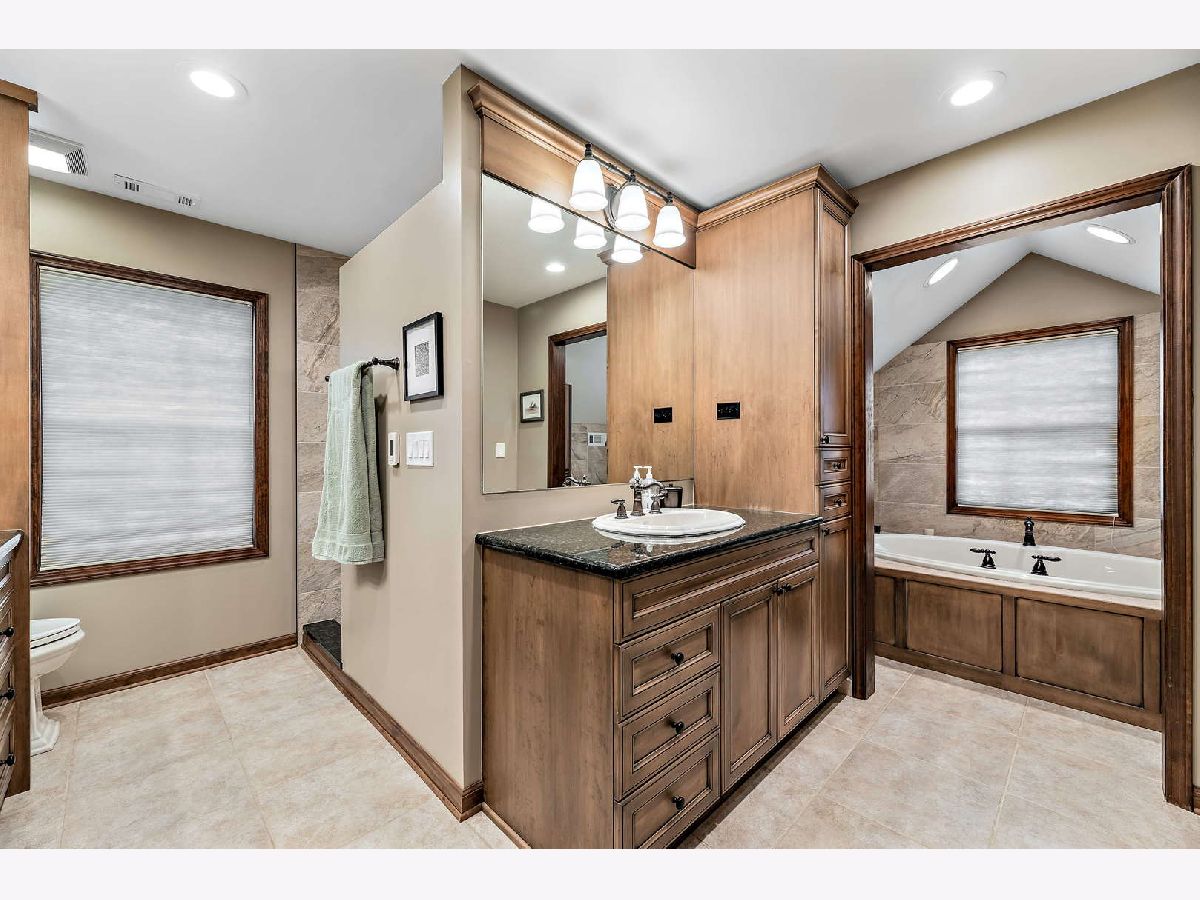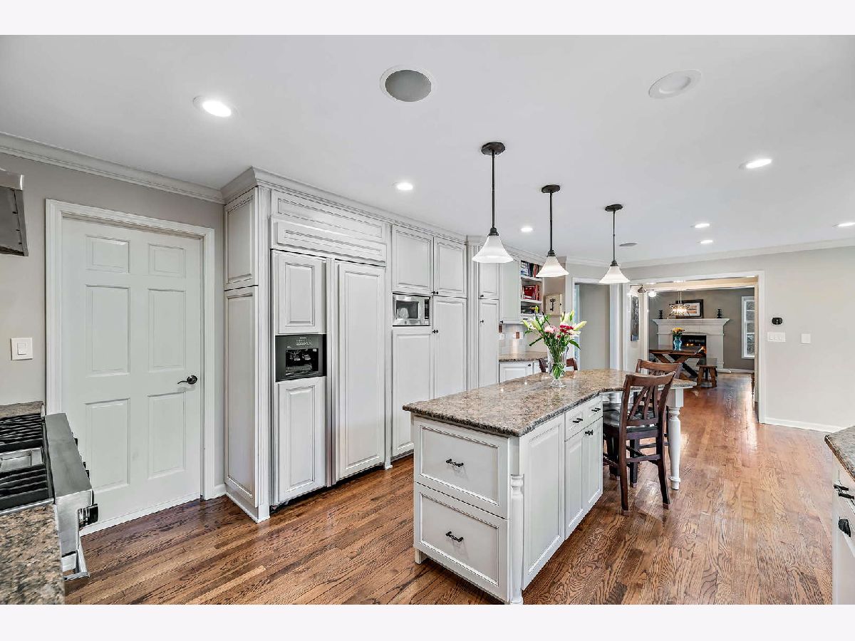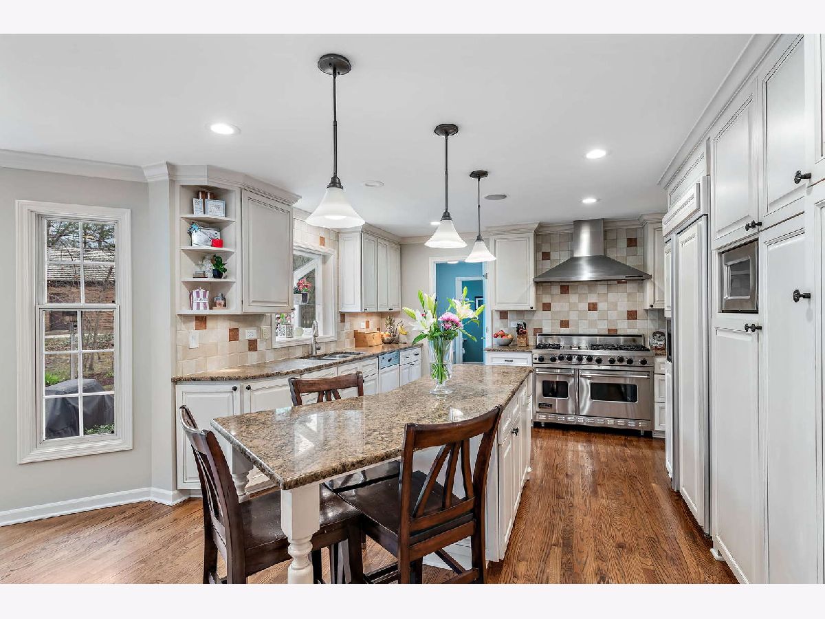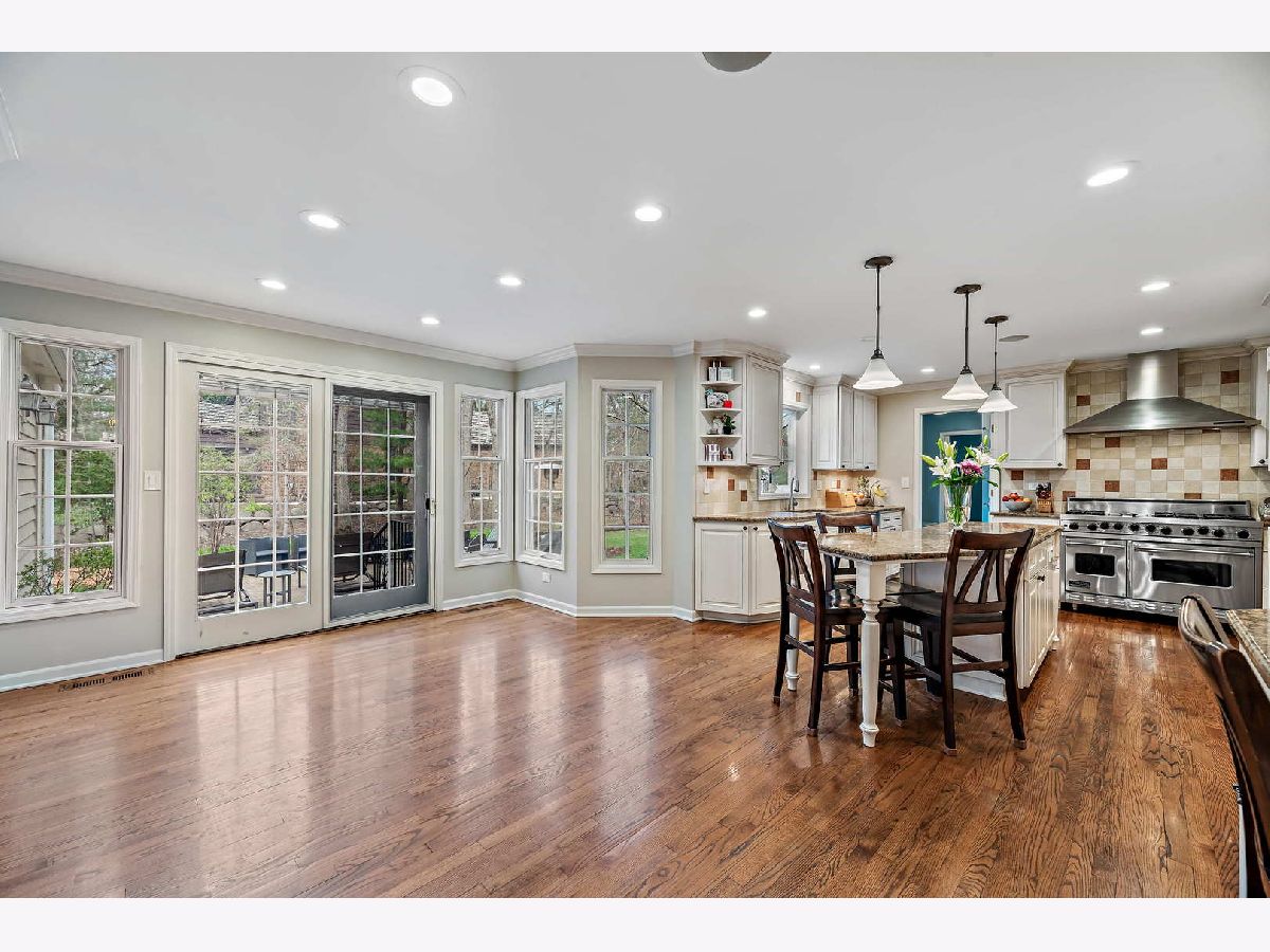 Peacefully situated on one of Lincolnshire's most beloved tree-lined streets, this bright, charmingly updated Colonial is the ideal family home with 3,800 square feet of living space, plus a renovated basement with a fifth bedroom, and a beautifully landscaped yard. A brick paver lined circular drive introduces the home and gives it instant curb appeal. Balancing a sense of tradition with casual living, the home is anchored by a well-designed eat-in kitchen with a Viking range and double ovens, a butler's pantry with a wine fridge, and a spacious sun-lit family room with dramatic vaulted ceilings, skylights, and renovated fireplace. Formal living and dining rooms, a home office, a laundry room, and a half bath further elevate the floorplan's versatility for today's work-from-home, play-from-home lifestyles. Elegant hardwood flooring throughout infuses the main living spaces with authentic warmth. Upstairs, there are four bedrooms and three full bathrooms, including a primary bedroom suite and luxuriously 2020-remodeled walk in shower, plus it has double sink vanities and a whirlpool. The current owners lovingly maintained this home and made many value-added upgrades throughout the years. Features include new front windows, new lighting, new washer and dryer (2020), two-zoned heating/cooling, and a sound system for the dining, family, kitchen, and patio. The 3-car car garage is a rare bonus! This one is truly special for Lincolnshire, and near its award-winning schools and just down the street from Whytegate Park.