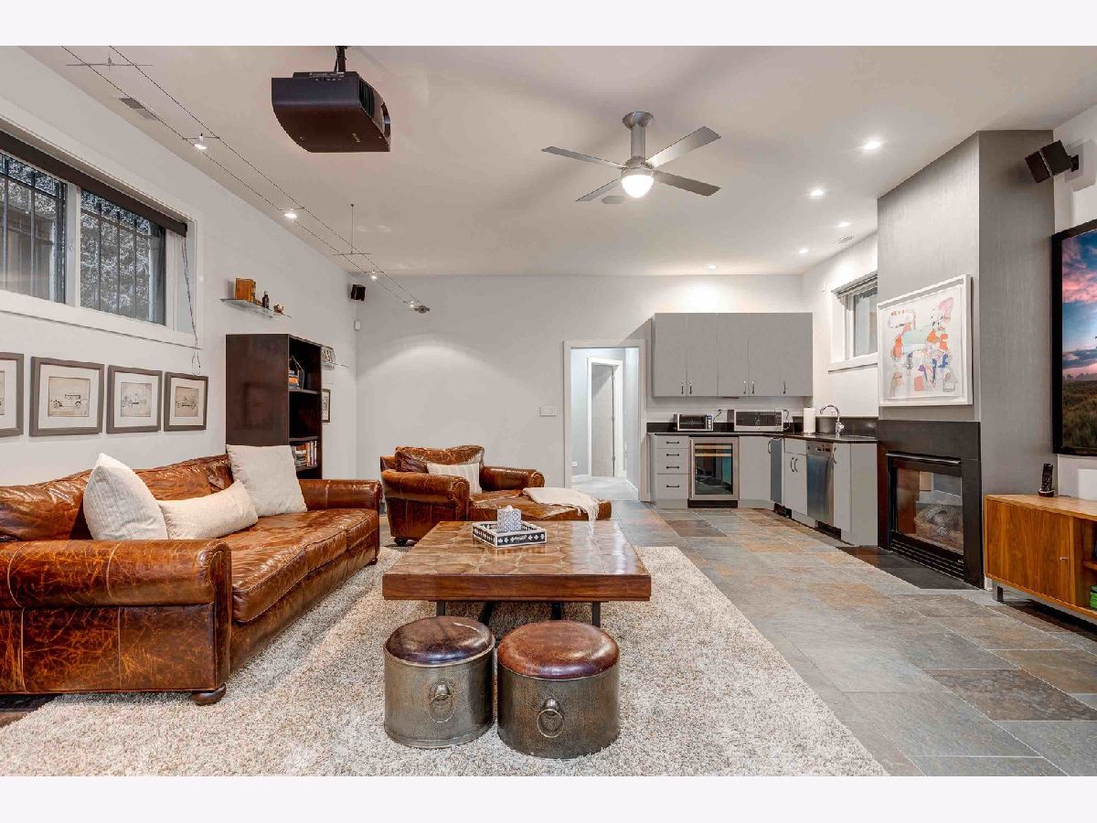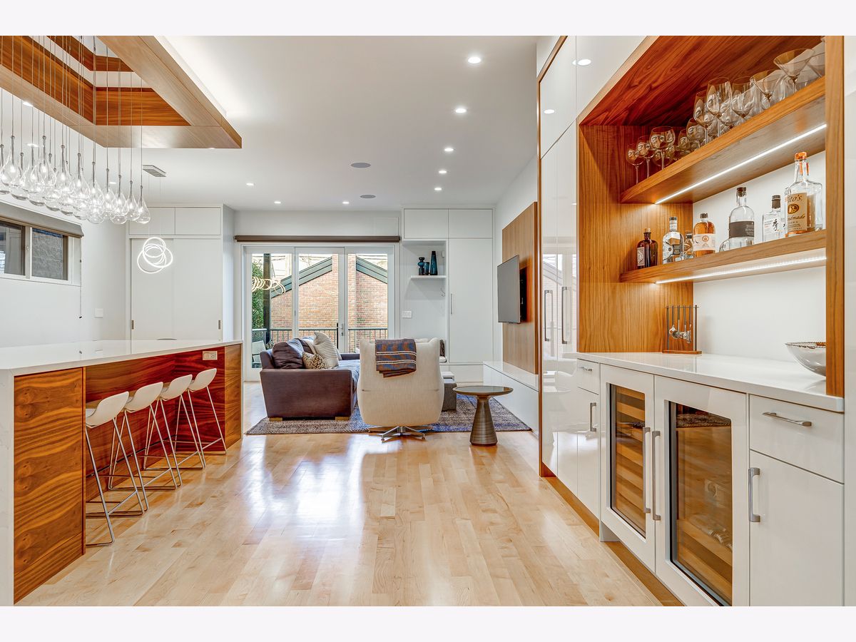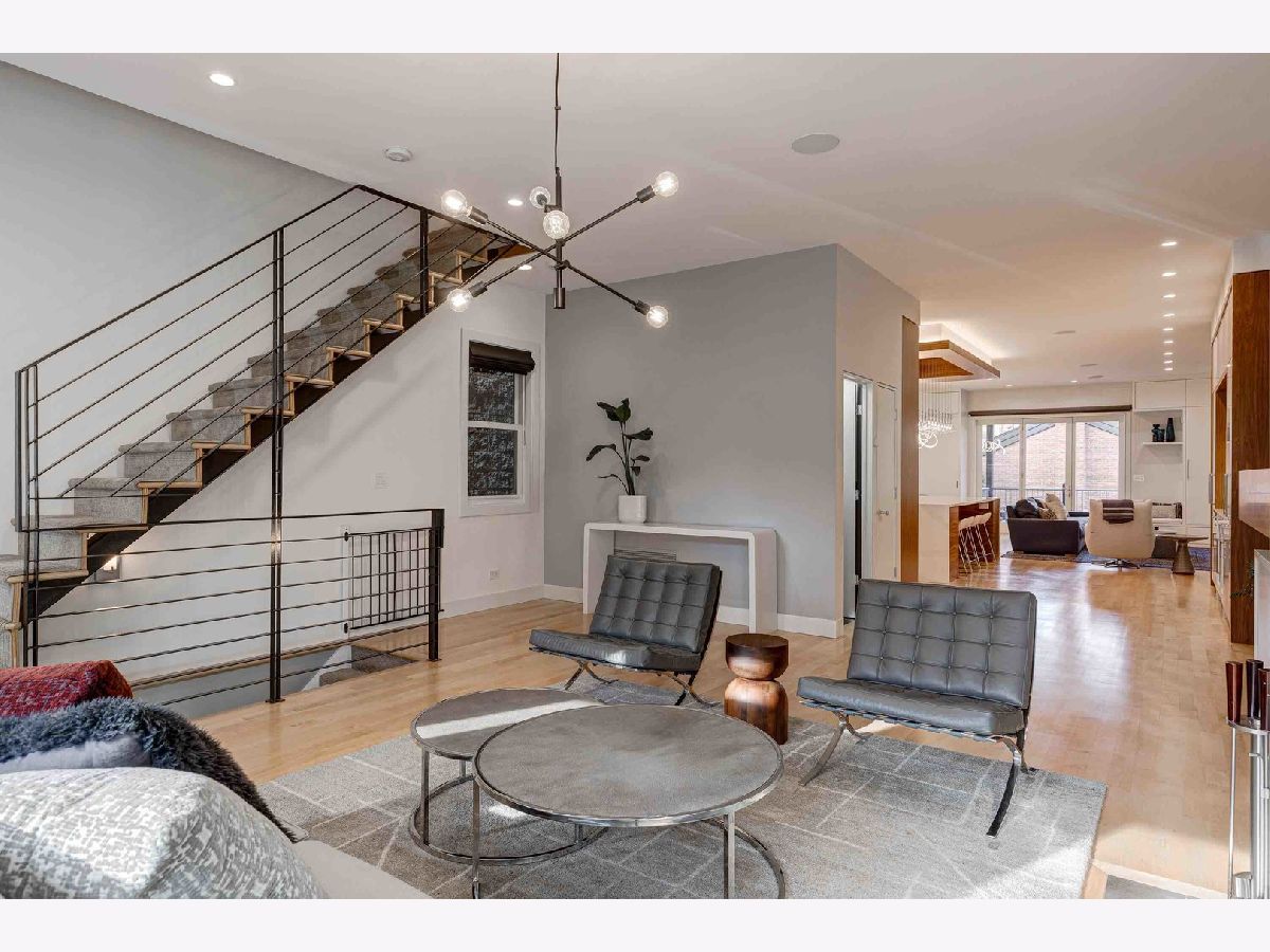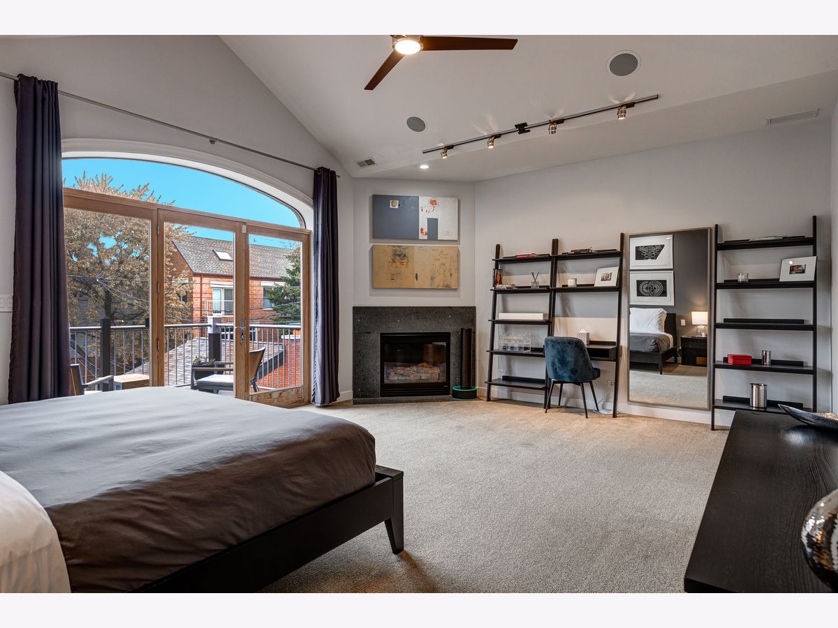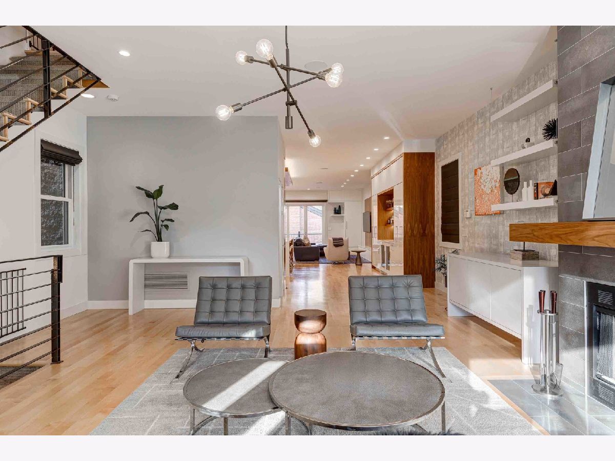 This contemporary dream home 2 blocks from the 606 Trail, and down the street from Drummond school and park, is ready for you to unpack and start enjoying life in the heart of Bucktown! On an oversized lot, beautiful curb appeal with a classic brick Chicago facade gives way to the spacious and open interior boasting 4+ bedrooms, 4.5 baths, multiple living areas and outdoor spaces. The entire first floor was fully remodeled in 2018, with thoughtful touches including custom cabinetry and completely reconfigured floor plan to allow a large open footprint from the front of the home to the back. The showstopper one-of-a-kind designer kitchen is as beautiful as it is functional with high-end custom cased cabinetry, integrated Wolf and Miele appliances, gorgeous 2-tone island with seating for 4, and designer blown glass light fixture. For a totally seamless look, a custom dry bar with 2 beverage coolers, back lighting and additional storage ties the kitchen and family room together. The dining area is perfectly positioned adjacent to the kitchen and family room for easy flow during weeknight meals, and entertaining alike - speakers throughout the main level, primary suite and lower level make for a fun time too! A full wall of family room windows and doors lead to the serene and private backyard - your own (huge) secret garden, complete with outdoor fireplace! Plus, the back doors have thoughtful built-ins and closet space for mudroom and everyday storage. Up the gorgeous iron floating staircase, find the primary suite, which is notably oversized and offers plenty of space for a seating area next to the fireplace, plus a large walk-in closet, speakers and a balcony for morning fresh air among the treetops! In the primary spa bath, find floor-to-ceiling tile, dual floating vanity, glass enclosed shower with speakers and separate soaking tub. 2 additional bedrooms are found on this level, along with a full hall bath and laundry closet. An interior staircase leading up to the roofdeck space is ready for you to add your design ideas to the space - equipped for a hot tub! Prepare to fall in love with the flexible lower level featuring tall ceilings, tons of natural light, a third fireplace, and large kitchenette with plentiful storage, sink, dishwasher, microwave, beverage refrigerator, and ice maker. This space is large enough to serve multiple purposes/usages at once! The front room with unique access to the garden outdoor space could easily be made into a bedroom and/or office. This spacious level has another large living room plus an additional bedroom, a full bath, laundry room and access to the backyard. Plus, enjoy the recently updated patio and landscaping. This unbeatable Bucktown location provides proximity to much of the city's most popular shopping and dining, public transportation, easy highway access, multiple parks and more! 2-car detached garage included.