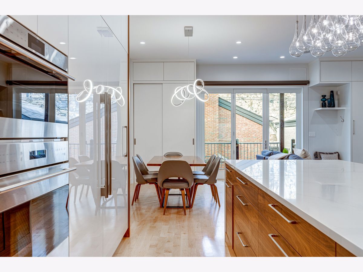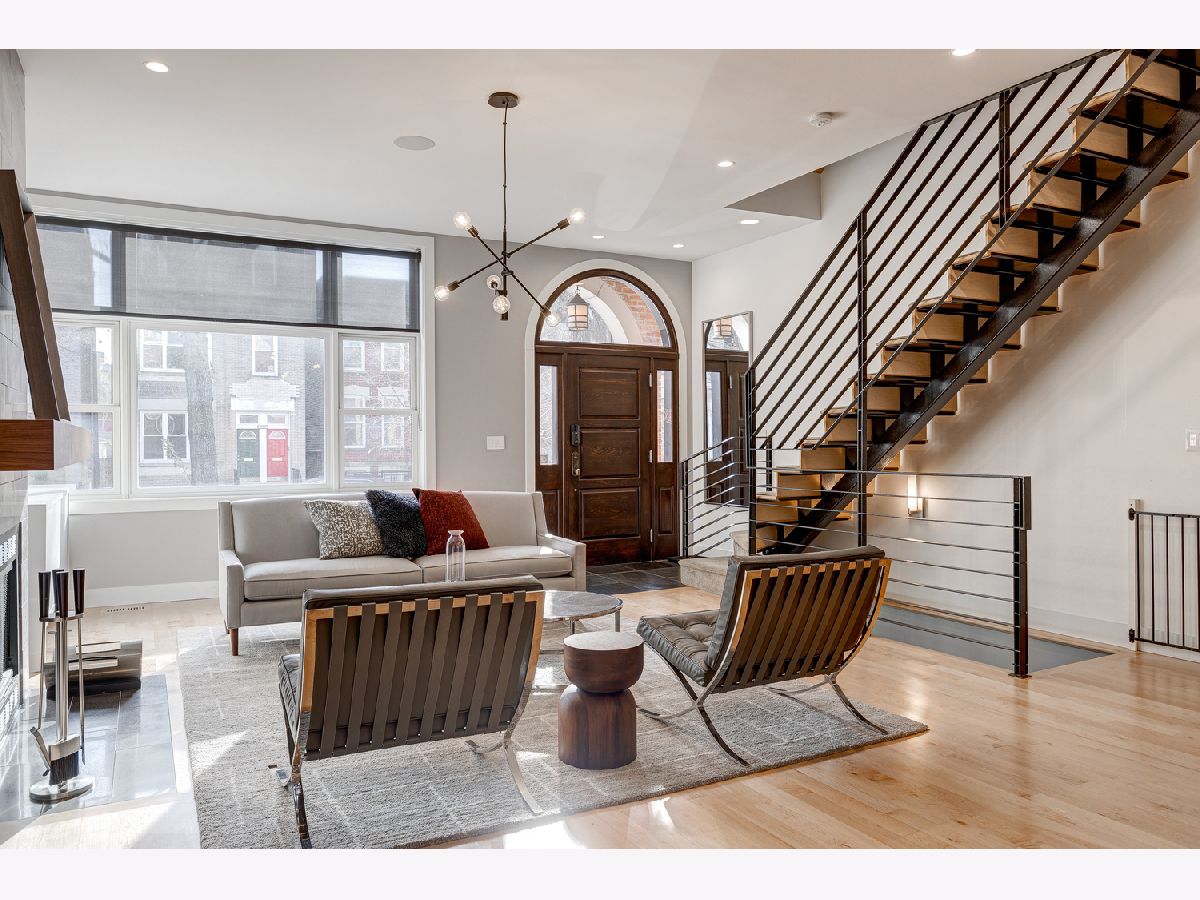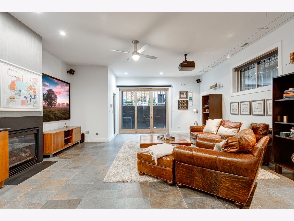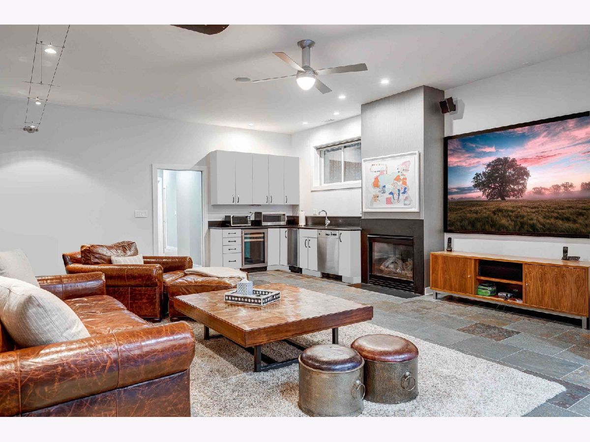 This contemporary dream home 2 blocks from the 606 Trail, and down the street from Drummond school and park, is ready for you to unpack and start enjoying life in the heart of Bucktown! On an oversized lot, beautiful curb appeal with a classic brick Chicago facade gives way to the spacious and open interior boasting 4+ bedrooms, 4.5 baths, multiple living areas and outdoor spaces. The entire first floor was fully remodeled in 2018, with thoughtful touches including custom cabinetry and completely reconfigured floor plan to allow a large open footprint from the front of the home to the back. The showstopper one-of-a-kind designer kitchen is as beautiful as it is functional with high-end custom cased cabinetry, integrated Wolf and Miele appliances, gorgeous 2-tone island with seating for 4, and designer blown glass light fixture. For a totally seamless look, a custom dry bar with 2 beverage coolers, back lighting and additional storage ties the kitchen and family room together. The dining area is perfectly positioned adjacent to the kitchen and family room for easy flow during weeknight meals, and entertaining alike - speakers throughout the main level, primary suite and lower level make for a fun time too! A full wall of family room windows and doors lead to the serene and private backyard - your own (huge) secret garden, complete with outdoor fireplace! Plus, the back doors have thoughtful built-ins and closet space for mudroom and everyday storage. Up the gorgeous iron floating staircase, find the primary suite, which is notably oversized and offers plenty of space for a seating area next to the fireplace, plus a large walk-in closet, speakers and a balcony for morning fresh air among the treetops! In the primary spa bath, find floor-to-ceiling tile, dual floating vanity, glass enclosed shower with speakers and separate soaking tub. 2 additional bedrooms are found on this level, along with a full hall bath and laundry closet. An interior staircase leading up to the roofdeck space is ready for you to add your design ideas to the space - equipped for a hot tub! Prepare to fall in love with the flexible lower level featuring tall ceilings, tons of natural light, a third fireplace, and large kitchenette with plentiful storage, sink, dishwasher, microwave, beverage refrigerator, and ice maker. This space is large enough to serve multiple purposes/usages at once! The front room with unique access to the garden outdoor space could easily be made into a bedroom and/or office. This spacious level has another large living room plus an additional bedroom, a full bath, laundry room and access to the backyard. Plus, enjoy the recently updated patio and landscaping. This unbeatable Bucktown location provides proximity to much of the city's most popular shopping and dining, public transportation, easy highway access, multiple parks and more! 2-car detached garage included.