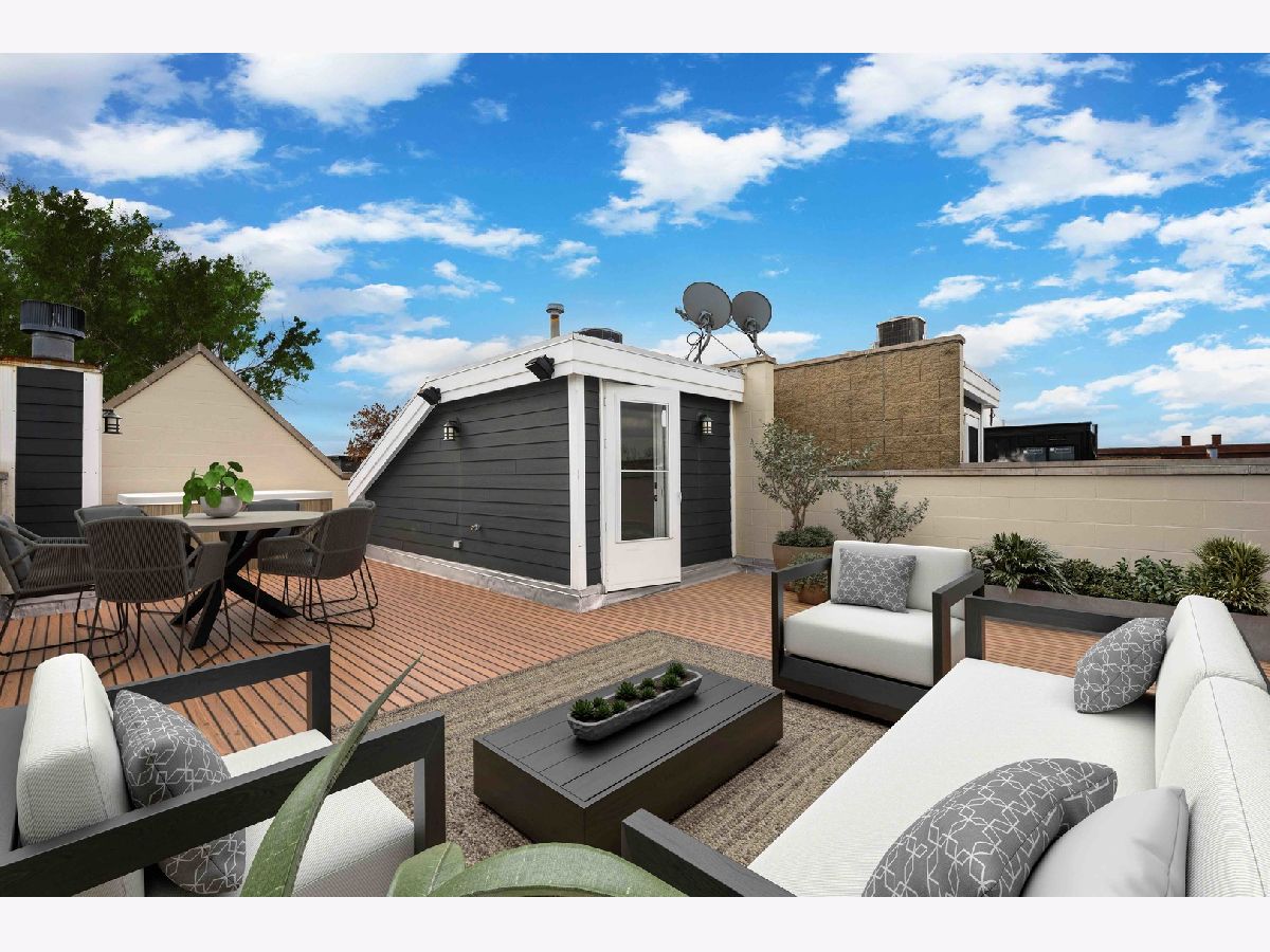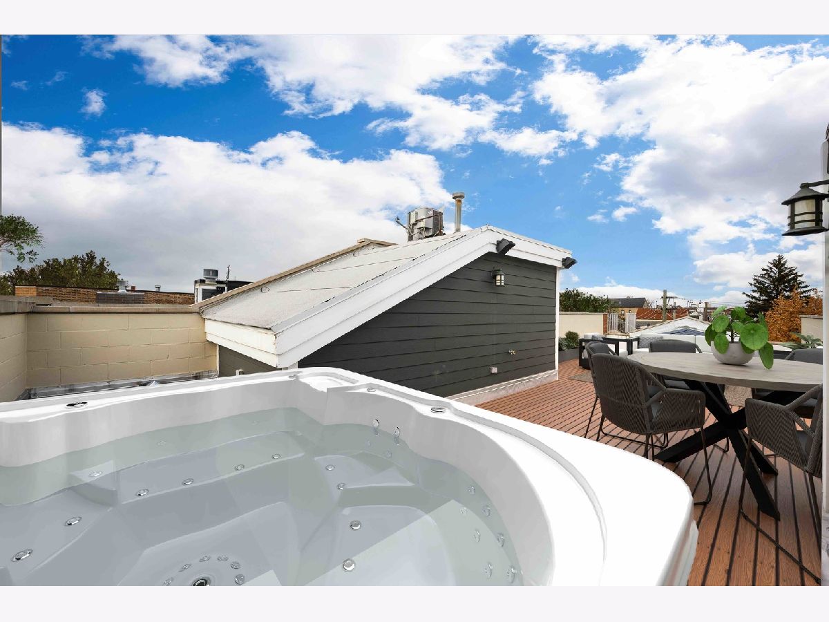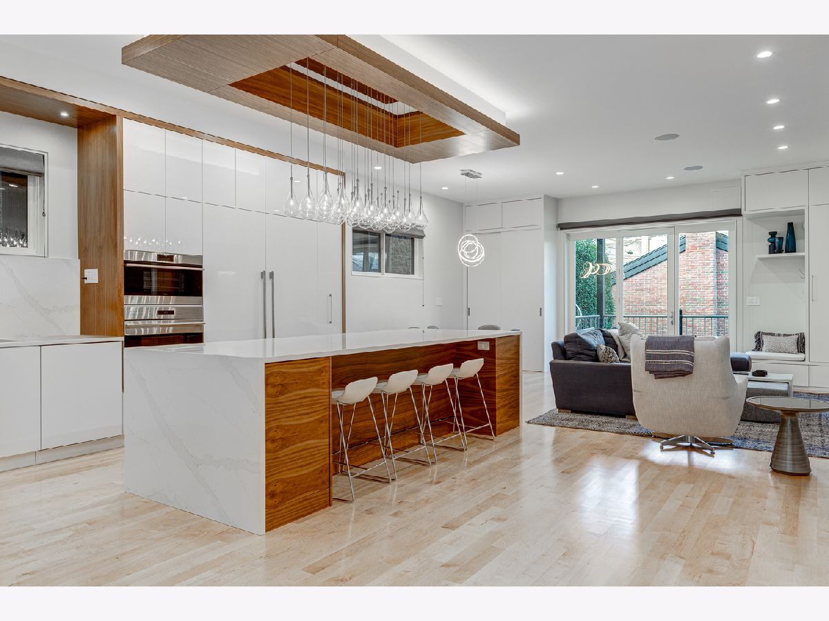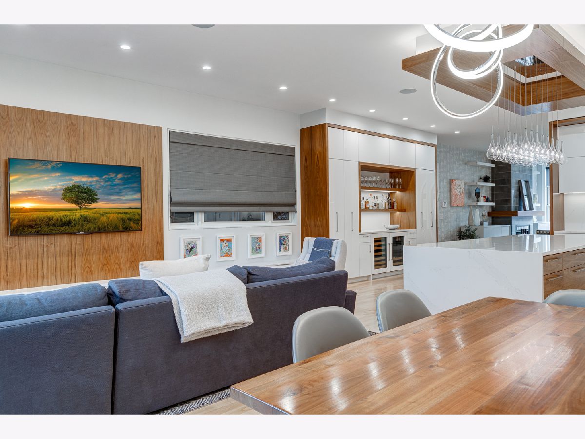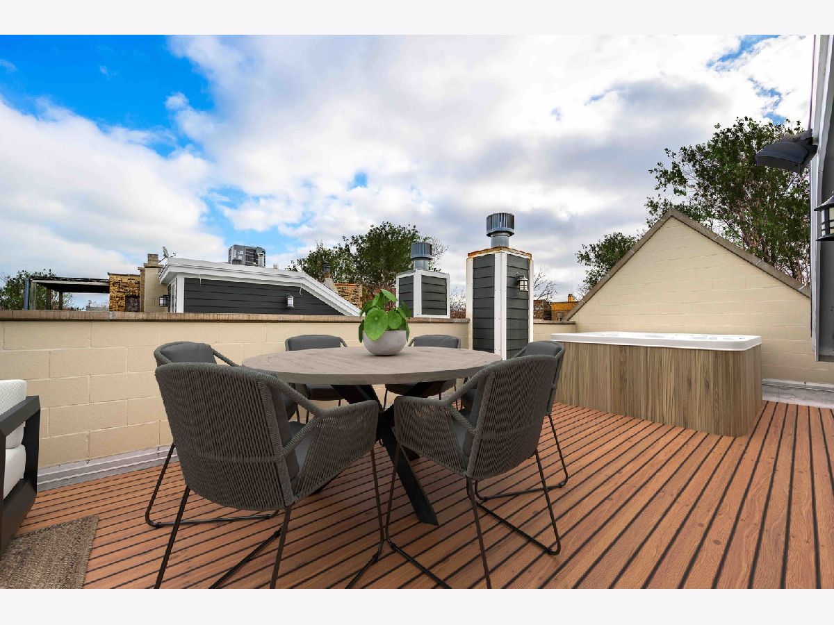 This contemporary dream home 2 blocks from the 606 Trail, and down the street from Drummond school and park, is ready for you to unpack and start enjoying life in the heart of Bucktown! On an oversized lot, beautiful curb appeal with a classic brick Chicago facade gives way to the spacious and open interior boasting 4+ bedrooms, 4.5 baths, multiple living areas and outdoor spaces. The entire first floor was fully remodeled in 2018, with thoughtful touches including custom cabinetry and completely reconfigured floor plan to allow a large open footprint from the front of the home to the back. The showstopper one-of-a-kind designer kitchen is as beautiful as it is functional with high-end custom cased cabinetry, integrated Wolf and Miele appliances, gorgeous 2-tone island with seating for 4, and designer blown glass light fixture. For a totally seamless look, a custom dry bar with 2 beverage coolers, back lighting and additional storage ties the kitchen and family room together. The dining area is perfectly positioned adjacent to the kitchen and family room for easy flow during weeknight meals, and entertaining alike - speakers throughout the main level, primary suite and lower level make for a fun time too! A full wall of family room windows and doors lead to the serene and private backyard - your own (huge) secret garden, complete with outdoor fireplace! Plus, the back doors have thoughtful built-ins and closet space for mudroom and everyday storage. Up the gorgeous iron floating staircase, find the primary suite, which is notably oversized and offers plenty of space for a seating area next to the fireplace, plus a large walk-in closet, speakers and a balcony for morning fresh air among the treetops! In the primary spa bath, find floor-to-ceiling tile, dual floating vanity, glass enclosed shower with speakers and separate soaking tub. 2 additional bedrooms are found on this level, along with a full hall bath and laundry closet. An interior staircase leading up to the roofdeck space is ready for you to add your design ideas to the space - equipped for a hot tub! Prepare to fall in love with the flexible lower level featuring tall ceilings, tons of natural light, a third fireplace, and large kitchenette with plentiful storage, sink, dishwasher, microwave, beverage refrigerator, and ice maker. This space is large enough to serve multiple purposes/usages at once! The front room with unique access to the garden outdoor space could easily be made into a bedroom and/or office. This spacious level has another large living room plus an additional bedroom, a full bath, laundry room and access to the backyard. Plus, enjoy the recently updated patio and landscaping. This unbeatable Bucktown location provides proximity to much of the city's most popular shopping and dining, public transportation, easy highway access, multiple parks and more! 2-car detached garage included.