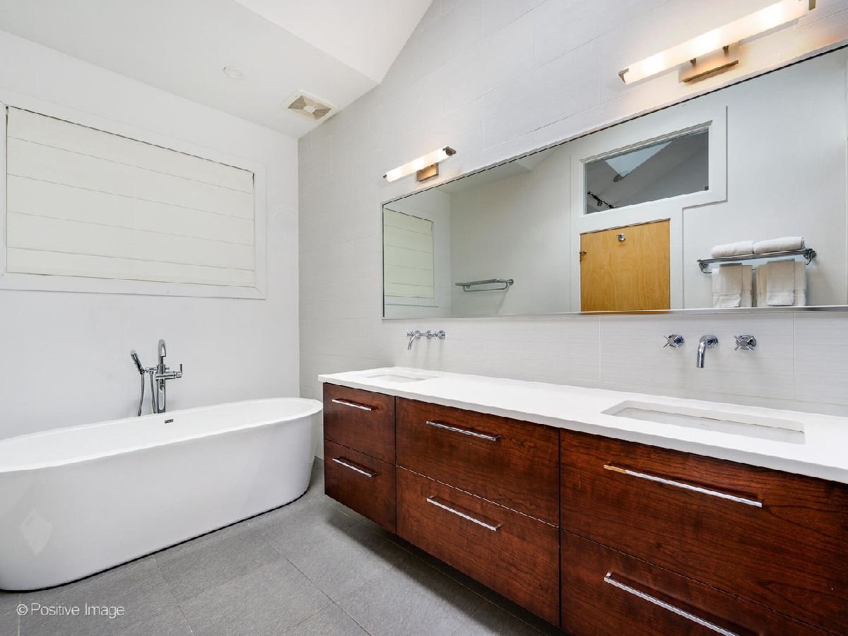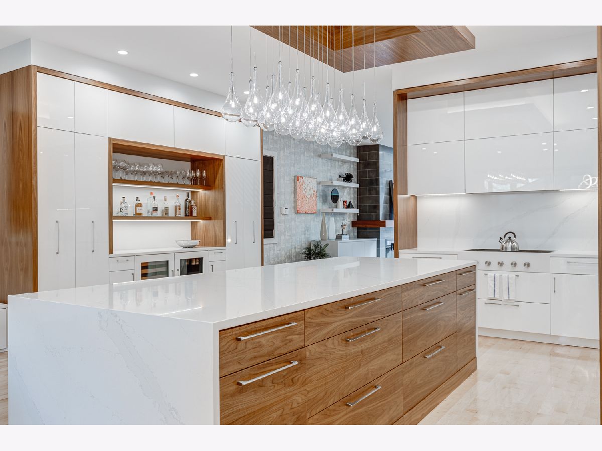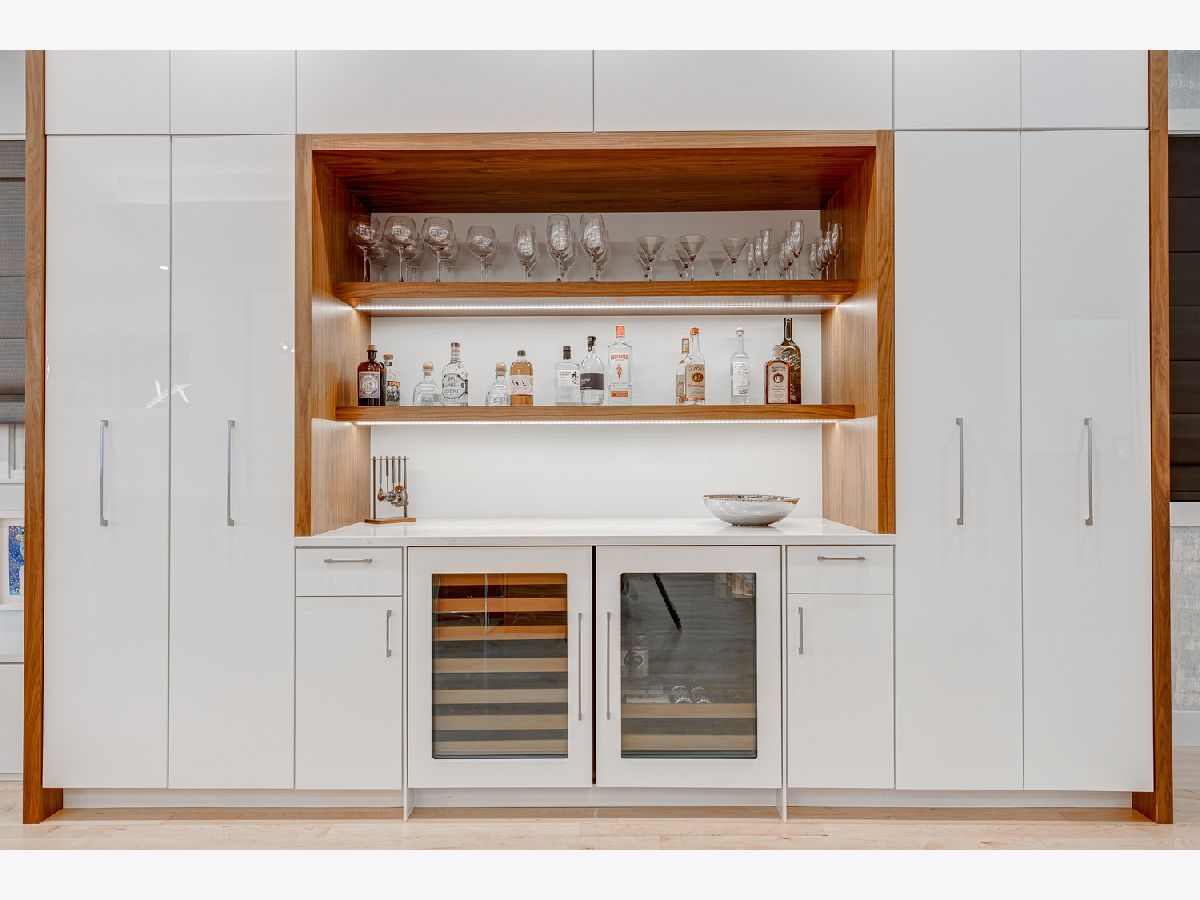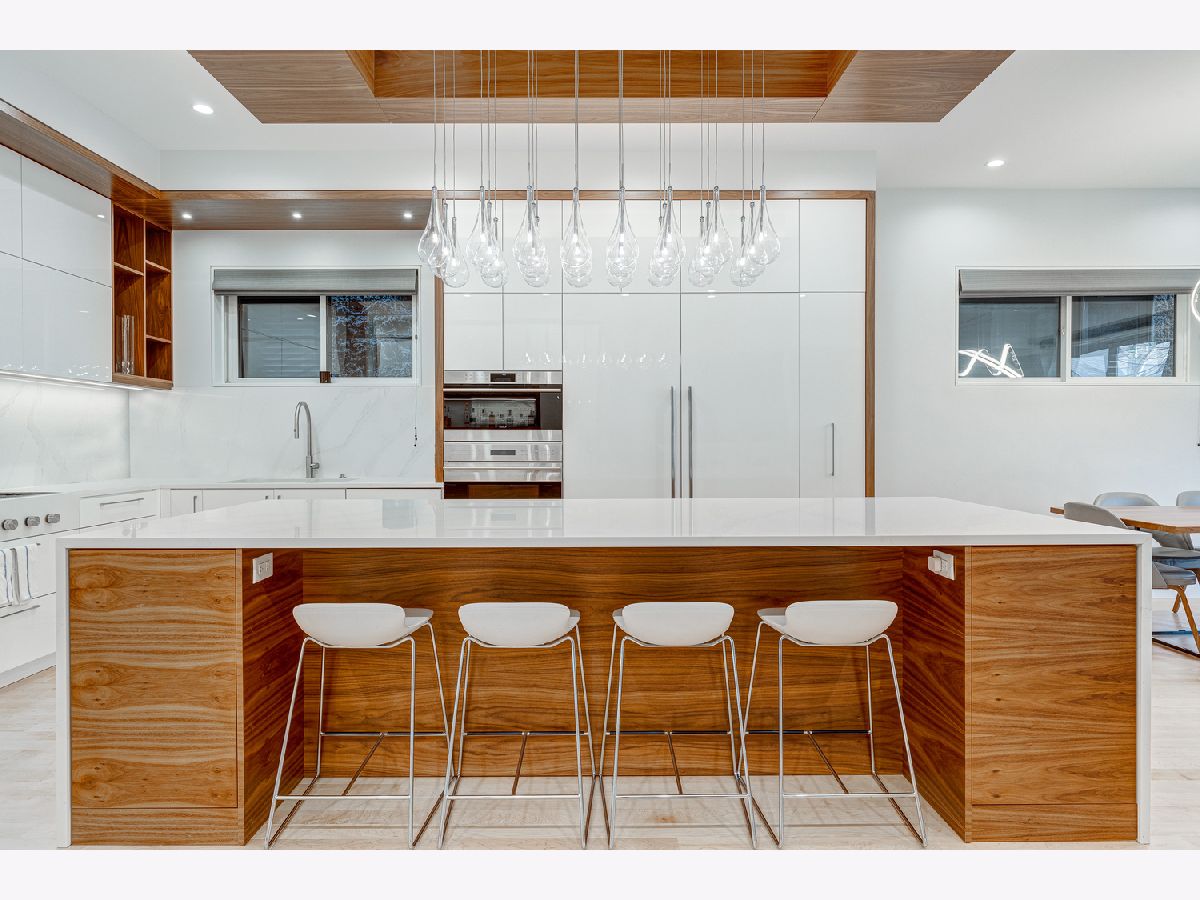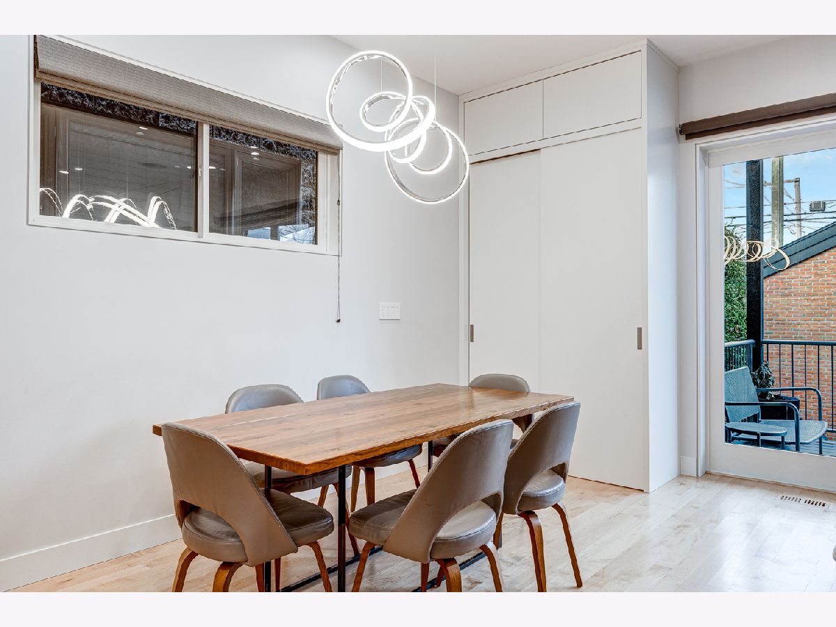 This contemporary dream home 2 blocks from the 606 Trail, and down the street from Drummond school and park, is ready for you to unpack and start enjoying life in the heart of Bucktown! On an oversized lot, beautiful curb appeal with a classic brick Chicago facade gives way to the spacious and open interior boasting 4+ bedrooms, 4.5 baths, multiple living areas and outdoor spaces. The entire first floor was fully remodeled in 2018, with thoughtful touches including custom cabinetry and completely reconfigured floor plan to allow a large open footprint from the front of the home to the back. The showstopper one-of-a-kind designer kitchen is as beautiful as it is functional with high-end custom cased cabinetry, integrated Wolf and Miele appliances, gorgeous 2-tone island with seating for 4, and designer blown glass light fixture. For a totally seamless look, a custom dry bar with 2 beverage coolers, back lighting and additional storage ties the kitchen and family room together. The dining area is perfectly positioned adjacent to the kitchen and family room for easy flow during weeknight meals, and entertaining alike - speakers throughout the main level, primary suite and lower level make for a fun time too! A full wall of family room windows and doors lead to the serene and private backyard - your own (huge) secret garden, complete with outdoor fireplace! Plus, the back doors have thoughtful built-ins and closet space for mudroom and everyday storage. Up the gorgeous iron floating staircase, find the primary suite, which is notably oversized and offers plenty of space for a seating area next to the fireplace, plus a large walk-in closet, speakers and a balcony for morning fresh air among the treetops! In the primary spa bath, find floor-to-ceiling tile, dual floating vanity, glass enclosed shower with speakers and separate soaking tub. 2 additional bedrooms are found on this level, along with a full hall bath and laundry closet. An interior staircase leading up to the roofdeck space is ready for you to add your design ideas to the space - equipped for a hot tub! Prepare to fall in love with the flexible lower level featuring tall ceilings, tons of natural light, a third fireplace, and large kitchenette with plentiful storage, sink, dishwasher, microwave, beverage refrigerator, and ice maker. This space is large enough to serve multiple purposes/usages at once! The front room with unique access to the garden outdoor space could easily be made into a bedroom and/or office. This spacious level has another large living room plus an additional bedroom, a full bath, laundry room and access to the backyard. Plus, enjoy the recently updated patio and landscaping. This unbeatable Bucktown location provides proximity to much of the city's most popular shopping and dining, public transportation, easy highway access, multiple parks and more! 2-car detached garage included.