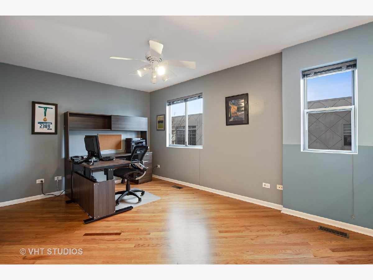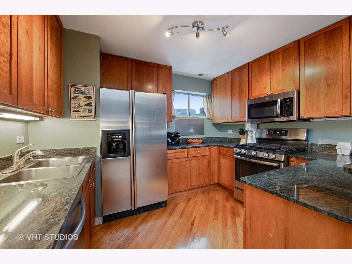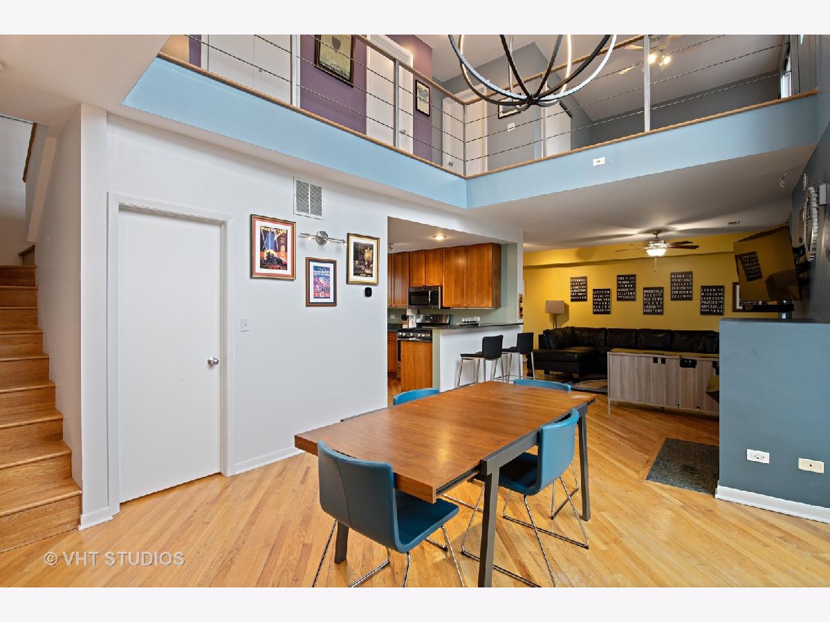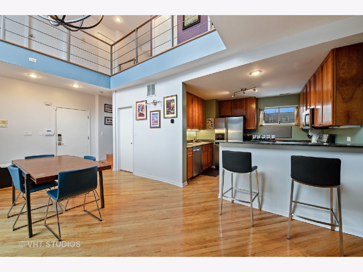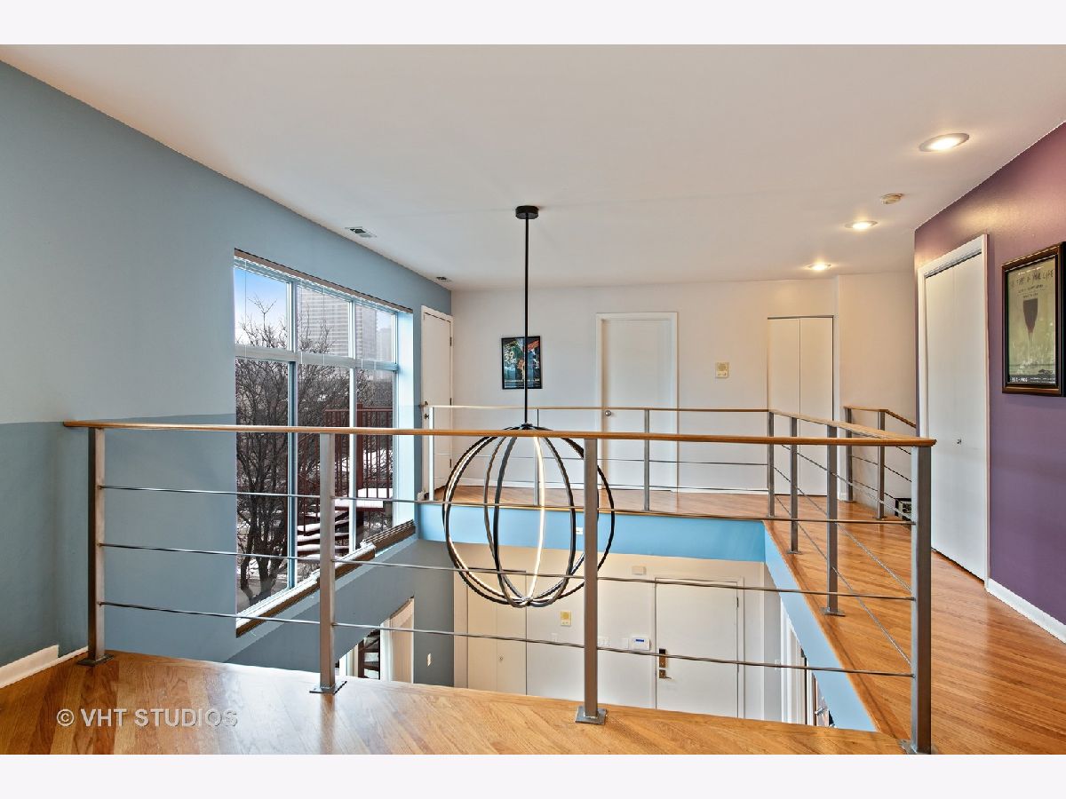This unit has an amazing private 15x37 ft yard and is a duplex up penthouse in a gated community. There is an amazingly dramatic 2 story living room with tons of windows and an extravagant light fixture that creates incredible drama. While there are 2 large bedrooms, there is also a den that is current being used as an office that could be converted into a 3rd bedroom. This home has been recently painted, has skyline views, and gets tons of light because of the north and south and east facing windows. The 1 car garage parking is attached. IN addition to the private yard, there is a 12x5 balcony off of the living room. The kitchen has 42" Cherry cabinets, granite counters, and stainless steal appliances. All of the bedrooms on on the second level with the huge master bedroom having a walk in closet and on suite bathroom. The laundry is on the second level. The China Town Redline station is 2 block away, as is the entertainment district and Greenline station on Cermak. Dont miss ou