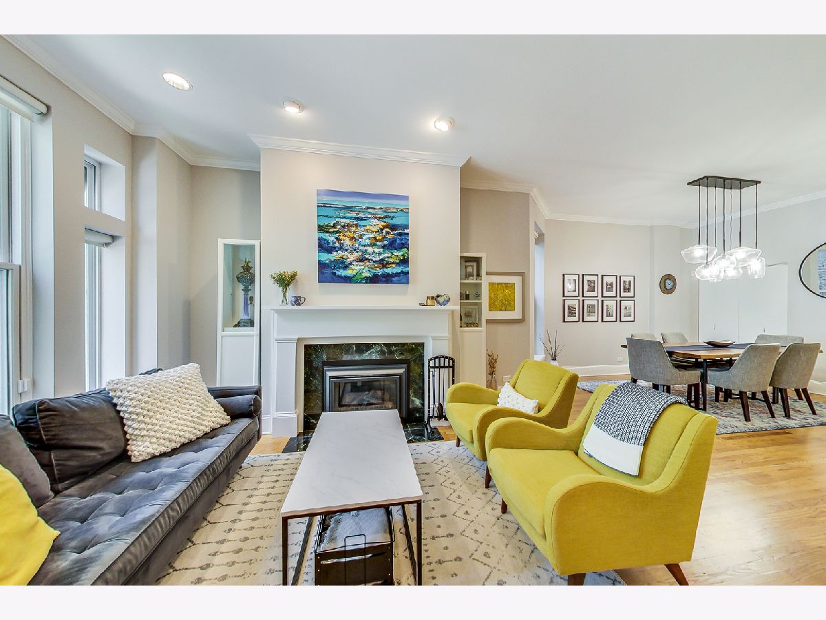 Absolutely amazing Lincoln Park location. This beautiful duplex lives like a single family home and features vintage charm with all the modern updates. This home features a private entrance with custom built-ins, crown moldings, a gorgeous gas fireplace, high ceilings, and large windows with great natural light. There are three spacious living areas, two on the main floor and a big family room in the lower level. Large dining room with a pantry. The kitchen offers tons of counter space, high end stainless Kitchen Aid appliances, a built-in wine refrigerator, loads of storage, and a breakfast room that opens to the private deck. The primary bedroom features a walk-in closet and ensuite bathroom with double vanity and a spacious walk-in shower. On the main level is a second bedroom and a full bathroom. The lower level offers a large guest suite, 4th bedroom/office, and a large family room. In addition to the deck off the kitchen, there is a huge shared(with only 1 other unit) roofdeck over the garage. Gated driveway leading to a garage parking space. Steps to shopping, cafes, restaurants, theatre, Oz Park, two train stops, and the lakefront.