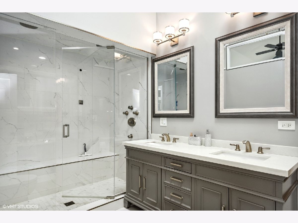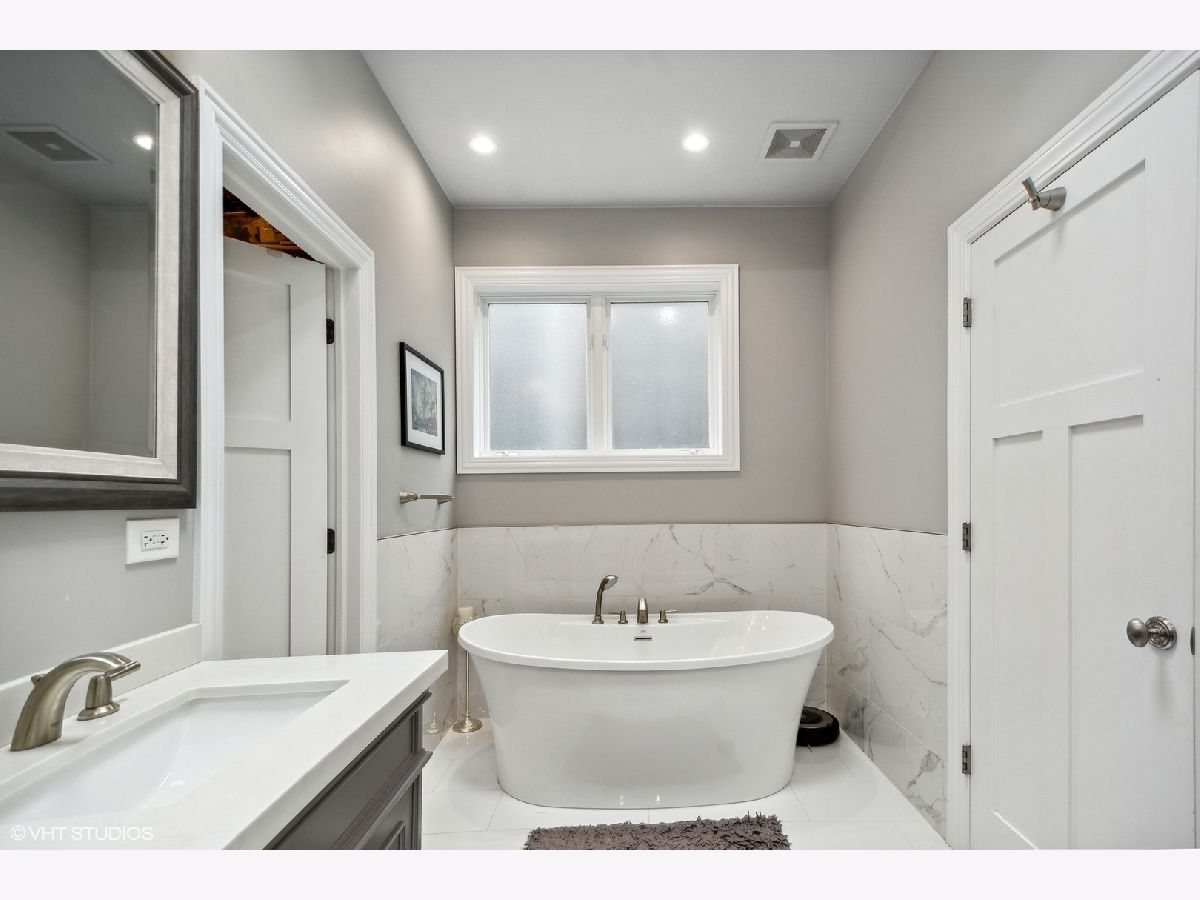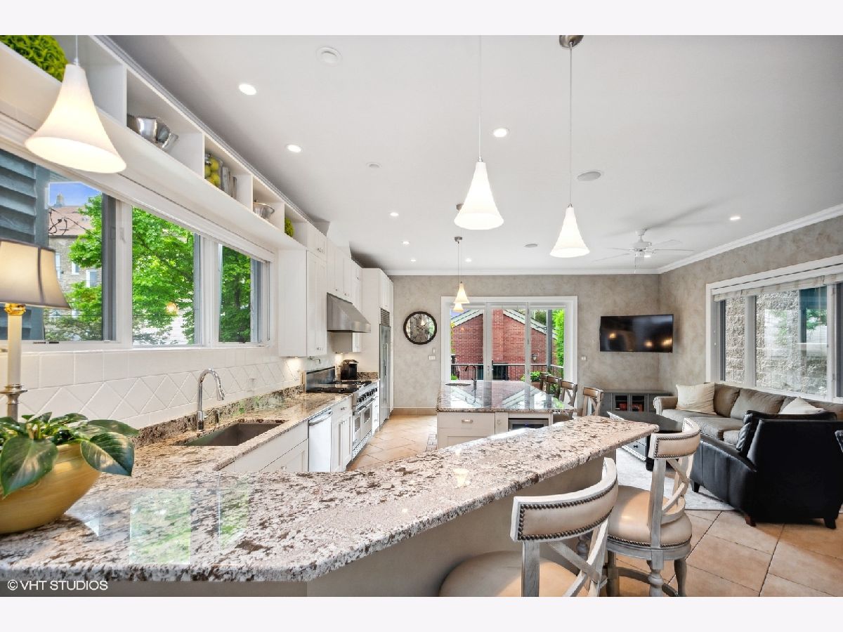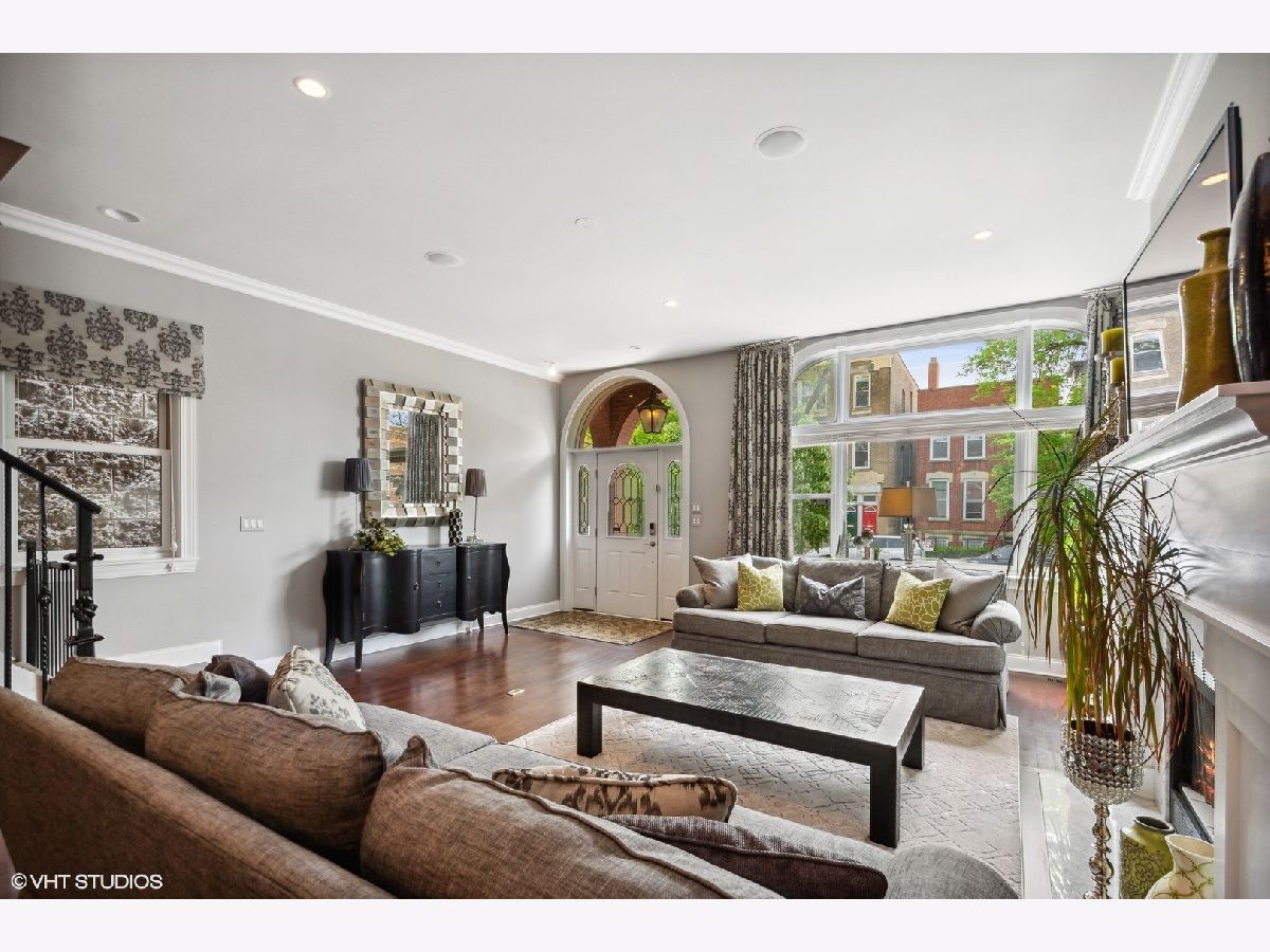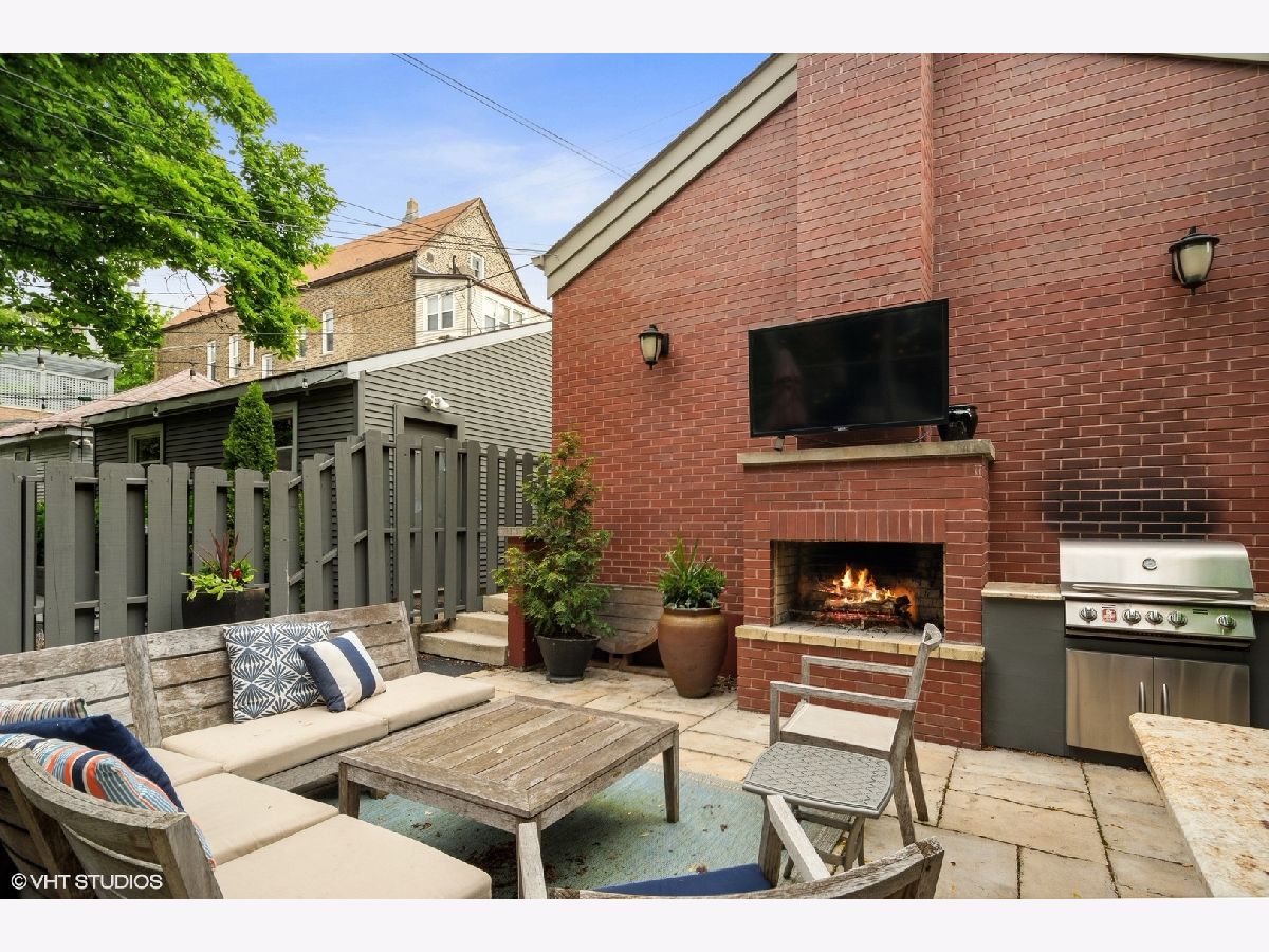 Not finding what you are looking for in a SFH layout? Be impressed with this extra wide floorplan located in the most coveted location within Bucktown's borders. Situated on a 30' wide lot, this home features wide room sizes as well as scores of natural light coming from the southern exposure. Enter from the gracious foyer, which opens into an inviting living room with wood burning fireplace and formal dining room. Located in the back of the home is a designer concept kitchen featuring all high end stainless appliances and an oversized island with bar seating and additional serving counter. The second level offers three bedrooms, including the luxurious primary suite with a gas log fireplace, vaulted ceiling heights and a newly remodeled bathroom and a walk-in closet to envy. The extra wide front bedroom includes a walk-in closet and ensuite full bathroom. Convenient bedroom level laundry can also be found on the second floor. A third bedroom and third full bath complete this level. The interior staircase leading up to the penthouse level features a brand new roof and the option to build-out a future rooftop deck. The lower level is where you will find a front family room/play room, a sunk-in front patio and additional guest bedroom and full bathroom. While the kids play in the front room, gather the adults in the back at the professional grade, fully functioning in-home sports bar with 6 flat screen tvs, surround sound speakers, built-in bar with beverage center, ice maker, sink, wine closet and dishwasher. A few steps out the back door provides convenient access to the stone pavered backyard with wood burning fireplace and built-in kitchen. This home is located in Pulaski Elementary and also is walking distance to Drummond. Extremely convenient to shopping and dining on Damen/North Ave, and walking distance to parks and CTA and Metra. Taxes: $19,875.32