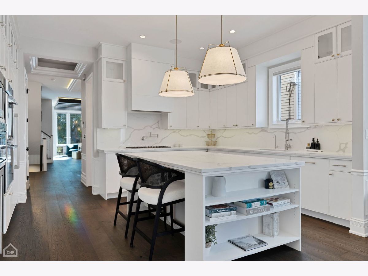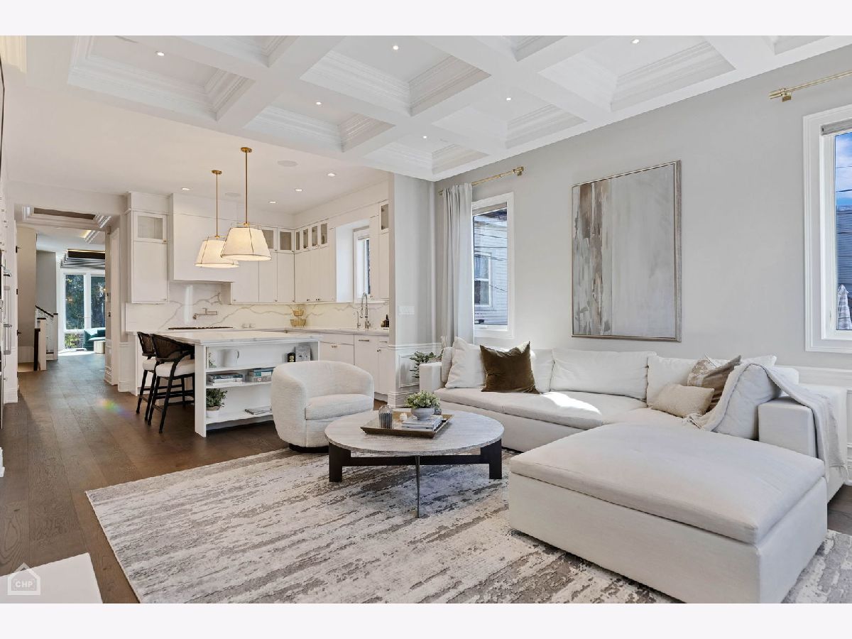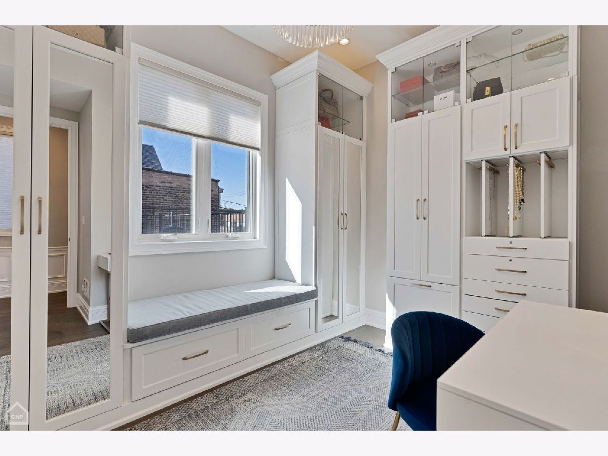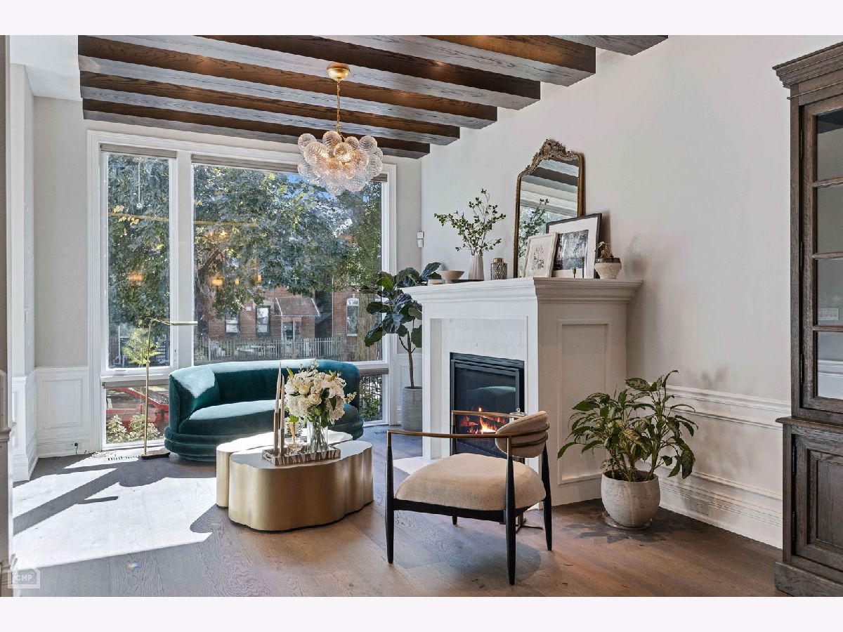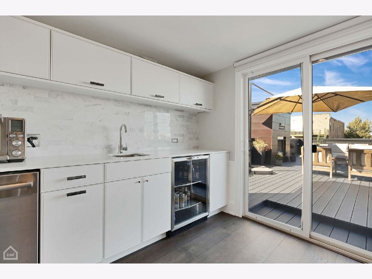 A custom-designed, single-family home with very rare views of the city skyline from its rooftop. This one-of-a-kind gem has 6 bedrooms (4 on the second level) and 3.5 baths and sits on the best block in all of West Town with its extra-wide street, ample parking for visitors, and canopy of mature trees. Upon entering, you will be greeted by 7.25-inch-wide oak floors, 10-foot ceilings, exquisite millwork, decorative ceiling beams, and 8' solid core doors. The gorgeous gourmet kitchen features a timeless elegant design with Calcutta quartz countertops and full backsplash, an island with breakfast bar seating, 56-inch double-stacked cabinets, accent LED lighting, and brass accents. Thermador appliance package includes a 6-burner stove, custom hood and pot filler, a double oven, a separate beverage fridge, and an espresso machine. The open floor plan leads to the family room with a fireplace with custom built-ins, built-in speakers, and all custom Hunter Douglas window treatments. Head to the second floor, which features 4 bedrooms (rare to find) and 1 of the 2 laundry area options. The primary suite hosts a walk-in closet with built-in organizers, a large ensuite bath with heated floors, a double vanity, a separate steam shower with rain head and multiple body sprays, and a soaking tub. Bedroom #2 has been fully converted to a custom closet/dressing room featuring shoe shelving, purse, hat displays, boutique storage, and LED accent lighting throughout - take a seat on the built-in bench and stay awhile! The current office (bed #3) is a great space and bed #4 faces south and boasts a wall of sunshine through floor-to-ceiling windows and a designer/custom accent wall. The lower level is a perfect entertaining space with great light, a rec room with a wet bar, 2 more bedrooms (office, guest suite, and/or gym flex space), a full bath, mudroom, and the 2nd laundry area option. The penthouse level offers another wet bar with a dishwasher and beverage fridge. It opens onto a roof deck: north side with stunning unobstructed city views, speakers, and a TV hook up; south side with tree-top views of Erie Street - perfect space for those who love to garden. Other upgrades include a 2-car garage, smart home features, multiple Nest 3rd gen WiFi systems, a security gate system with cameras, central vacuum, Navian radiant flooring, custom lighting, and LED lighting. These are just a few features of this meticulous and stunning single-family home. There are 3 separate outdoor spaces: off the family room, above the two-car garage, and on the rooftop, all featuring durable Trex decking material. Located one block south of Chicago Ave is a stone's throw from endless shopping and dining options and 0.2 miles from a major grocery chain. It is less than 2 miles from the loop and has easy access to I-90/94 and I-290. Roof deck fireplace in "as-is" condition.
