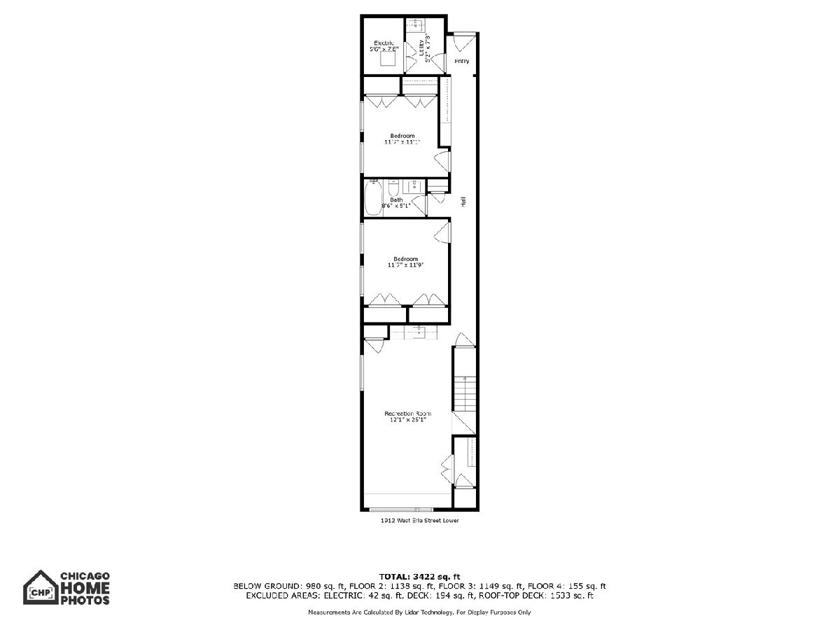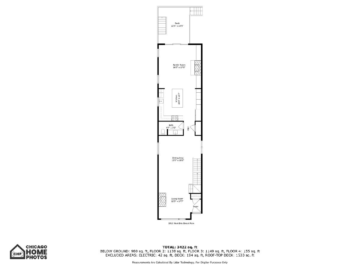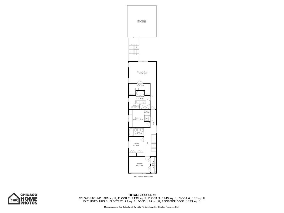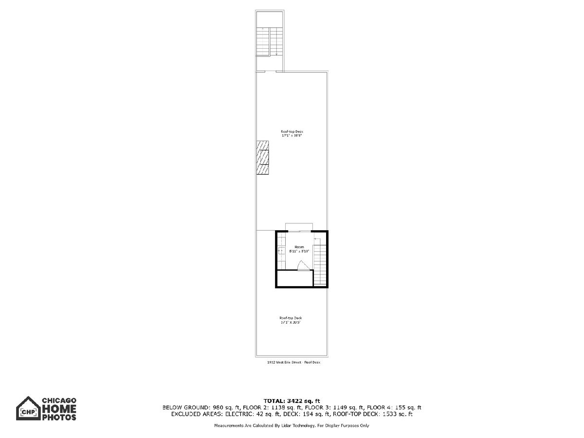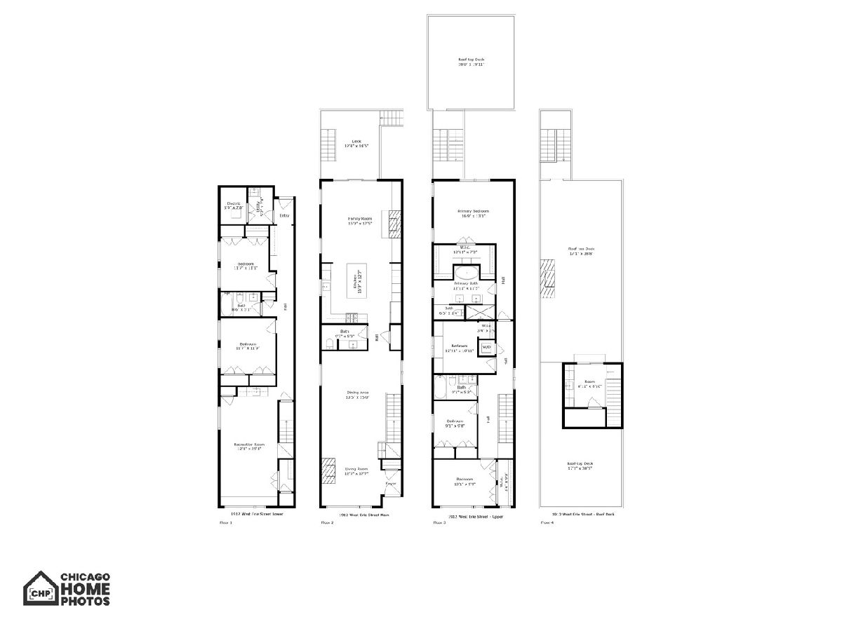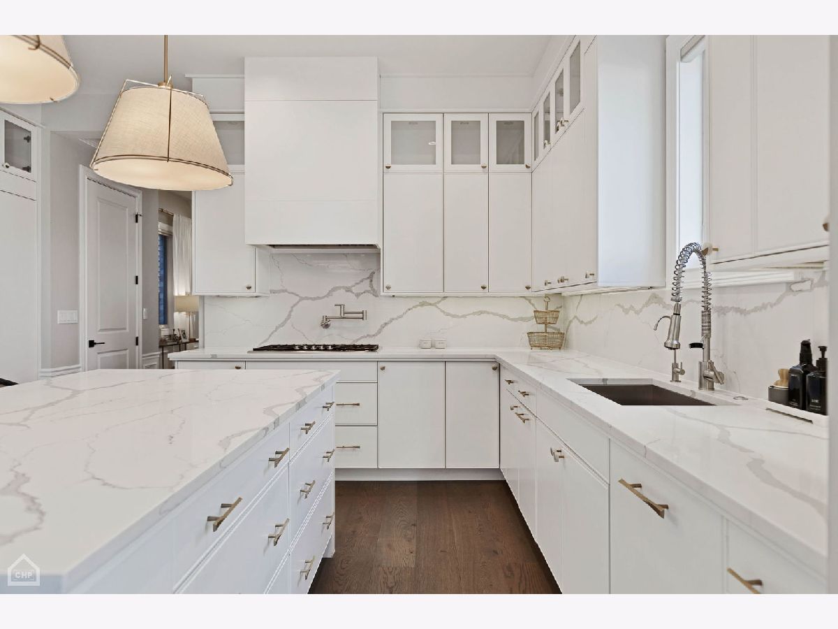 A custom-designed, single-family home with very rare views of the city skyline from its rooftop. This one-of-a-kind gem has 6 bedrooms (4 on the second level) and 3.5 baths and sits on the best block in all of West Town with its extra-wide street, ample parking for visitors, and canopy of mature trees. Upon entering, you will be greeted by 7.25-inch-wide oak floors, 10-foot ceilings, exquisite millwork, decorative ceiling beams, and 8' solid core doors. The gorgeous gourmet kitchen features a timeless elegant design with Calcutta quartz countertops and full backsplash, an island with breakfast bar seating, 56-inch double-stacked cabinets, accent LED lighting, and brass accents. Thermador appliance package includes a 6-burner stove, custom hood and pot filler, a double oven, a separate beverage fridge, and an espresso machine. The open floor plan leads to the family room with a fireplace with custom built-ins, built-in speakers, and all custom Hunter Douglas window treatments. Head to the second floor, which features 4 bedrooms (rare to find) and 1 of the 2 laundry area options. The primary suite hosts a walk-in closet with built-in organizers, a large ensuite bath with heated floors, a double vanity, a separate steam shower with rain head and multiple body sprays, and a soaking tub. Bedroom #2 has been fully converted to a custom closet/dressing room featuring shoe shelving, purse, hat displays, boutique storage, and LED accent lighting throughout - take a seat on the built-in bench and stay awhile! The current office (bed #3) is a great space and bed #4 faces south and boasts a wall of sunshine through floor-to-ceiling windows and a designer/custom accent wall. The lower level is a perfect entertaining space with great light, a rec room with a wet bar, 2 more bedrooms (office, guest suite, and/or gym flex space), a full bath, mudroom, and the 2nd laundry area option. The penthouse level offers another wet bar with a dishwasher and beverage fridge. It opens onto a roof deck: north side with stunning unobstructed city views, speakers, and a TV hook up; south side with tree-top views of Erie Street - perfect space for those who love to garden. Other upgrades include a 2-car garage, smart home features, multiple Nest 3rd gen WiFi systems, a security gate system with cameras, central vacuum, Navian radiant flooring, custom lighting, and LED lighting. These are just a few features of this meticulous and stunning single-family home. There are 3 separate outdoor spaces: off the family room, above the two-car garage, and on the rooftop, all featuring durable Trex decking material. Located one block south of Chicago Ave is a stone's throw from endless shopping and dining options and 0.2 miles from a major grocery chain. It is less than 2 miles from the loop and has easy access to I-90/94 and I-290. Roof deck fireplace in "as-is" condition.