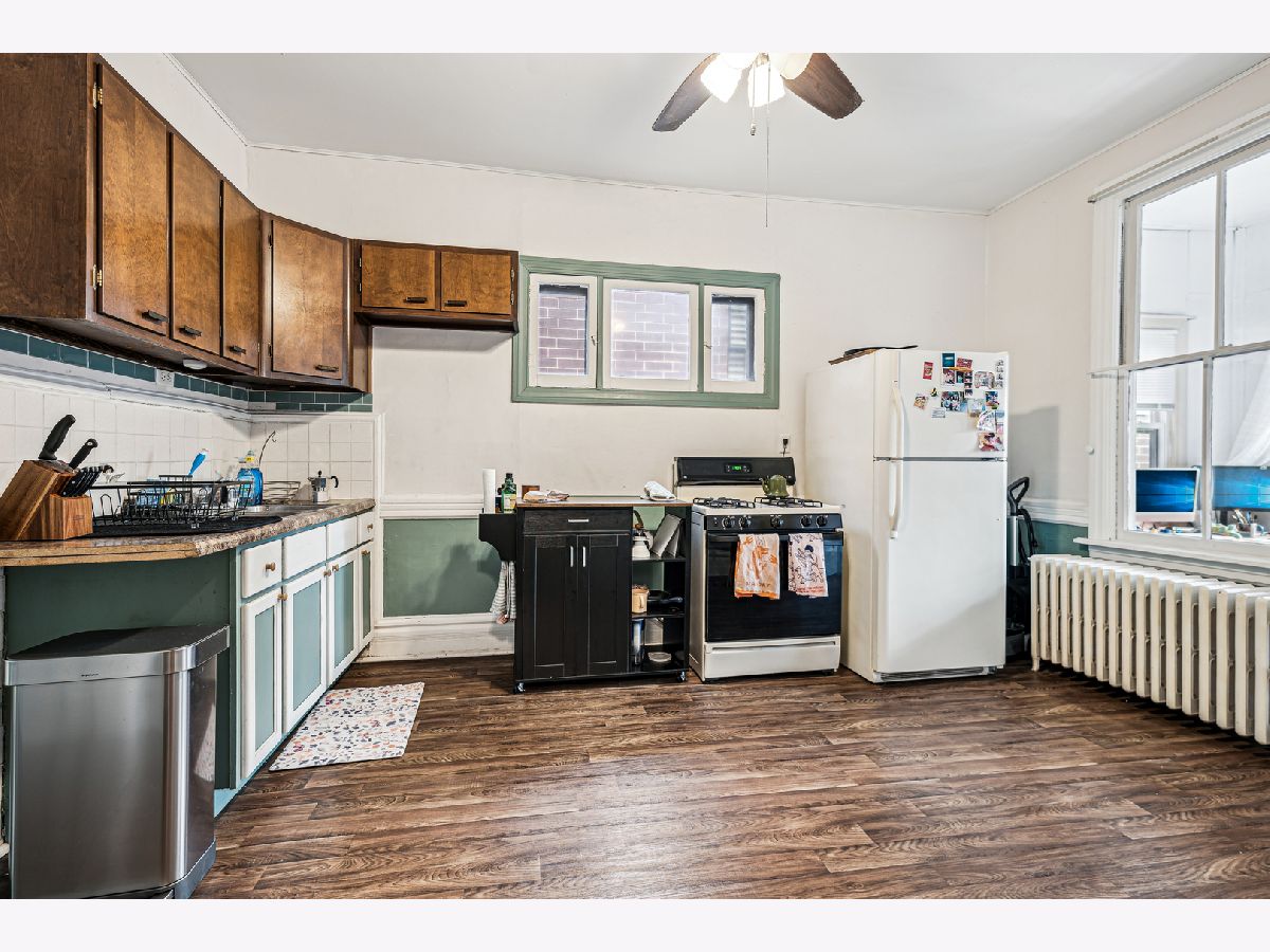 Rarely available 3-flat building is located near Irving Park/Damen/Lincoln. First floor unit has living room picture window for plenty of natural sunlight, gently used carpet and ceiling fan. Kitchen has vinyl floor, built-in hutch, stainless steel sink, stainless steel refrigerator, stainless steel stove and walk-in pantry. Enclosed porch has radiator and sitting area overlooking yard with brick paver patio, two-car garage(2020) with inner yard door and privacy fence. Oak staircase leads to second floor unit which has living room picture window and ceiling fan. Full bath has clawfoot tub. Third floor unit has bath with vinyl floor, kitchen with wood cabinets and enclosed back porch area. New hot water heaters installed in 2022. New back siding and aluminum capped windows replaced in 2020. Building has circuit breakers in all electric boxes. Near CTA, shopping and train. Pride of ownership! Come see for yourself!! Hurry!!! Multiple offers received, highest and best due by Tuesday December 17th, 5:00 pm.