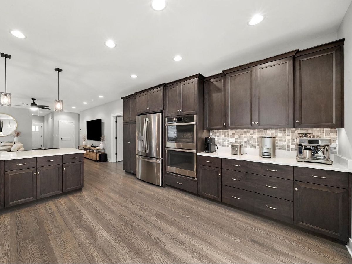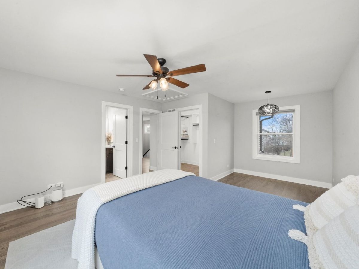 THIS IS IT! A beautifully designed home offering 4 bedrooms, including 2 full master suites, and 3.5 bathrooms! From the moment you pull up, you'll notice the striking resemblance to a Frank Lloyd Wright Prairie-style home-classic, timeless, and full of character. Designed for true first-floor living, this home gives you the best of both worlds: the convenience of a ranch layout with the added space and versatility of a second floor. Step into the welcoming foyer and into the open-concept living and dining rooms, perfect for entertaining and everyday living. The spacious kitchen offers plenty of counter space, cabinets galore, a breakfast bar, pantry, and all appliances included-even a double oven for the chef at heart! The main floor features a primary master suite complete with a custom-designed walk-in closet and a full bathroom with dual sinks. Plus, enjoy the convenience of a main floor laundry room, now upgraded with brand-new custom cabinetry. Upstairs, you'll find the second master suite complete with another well designed walk-in closet, private full bath, and a cozy sitting area. The additional bedrooms are generously sized and, along with the staircase, feature beautifully upgraded hardwood. Every detail was thoughtfully considered, with the flooring carefully selected and perfectly matched throughout, creating a seamless and elevated design. The finished basement offers endless possibilities-recreation space, office, or home gym. Step outside to your private backyard oasis, featuring a new composite fence and fresh landscaping for added curb appeal. The back deck, surrounded by a peaceful treeline, creates the ideal setting for morning coffee or evening gatherings. Plus, enjoy the convenience of an attached 2-car garage. This home has been meticulously maintained and upgraded from top to bottom. Commuter-friendly and perfectly located near shopping, dining, and more. Schedule your showing today-this is the one you've been waiting for!
