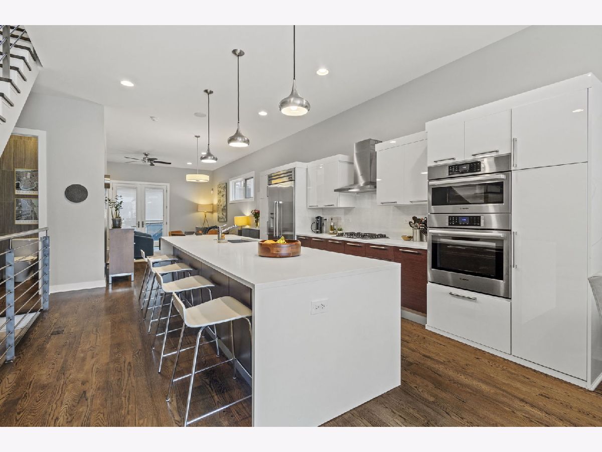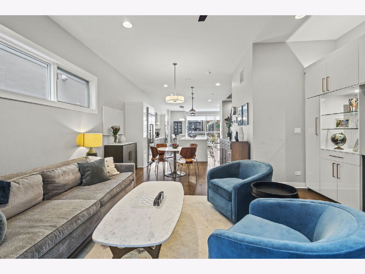 Exquisite 4-Bedroom Contemporary Residence in the Heart of West Town! Welcome to this architecturally striking single-family home, a masterpiece of modern design nestled on one of West Town's most coveted blocks. With a sophisticated glass, brick, and aluminum facade framed by professionally landscaped greenery, this newer construction residence exudes refined curb appeal and urban elegance. Step into a luminous, expansive living room where dramatic wraparound floor-to-ceiling windows flood the space with natural light. The open-concept layout flows seamlessly into a grand dining area, highlighted by designer-curated lighting fixtures that create an atmosphere perfect for intimate dinners or lavish entertaining. The gourmet chef's kitchen is a vision of sleek functionality, featuring waterfall-edge quartz countertops, custom flat-panel Italian cabinetry with integrated storage solutions, and premium stainless steel appliances. The centerpiece-a sprawling quartz island-offers abundant seating and serves as a natural gathering place for guests. The adjacent family room opens directly onto one of three private outdoor retreats. Designed for sophisticated entertaining, the garage-top deck boasts multiple lounge areas, a custom beverage center, and a pergola offering shade and style. Upstairs, the second level offers three serene bedrooms and two luxurious baths. The primary suite is a true sanctuary, complete with a spa-inspired ensuite featuring a walk-in rain shower, Kohler soaking tub, dual vanities, and bespoke closet systems designed for elegance and functionality. The third level is an entertainer's dream-an indoor/outdoor lounge space that opens onto two spectacular rooftop terraces. Enjoy panoramic skyline views from the expansive south-facing deck, while the north-facing terrace offers a private, tranquil escape. The lower level delivers an additional spacious family room, a custom wet bar ideal for hosting, a fourth bedroom, and a third full bath-perfect for guests or multi-generational living. Ideally situated near Fulton Market, the West Loop, and downtown Chicago, this exceptional home combines modern luxury with the vibrancy of one of the city's most dynamic neighborhoods. Recognized by Chicago Agent Magazine as West Town's premier block, this is an unparalleled opportunity to live in style and comfort. A true urban oasis-this home must be seen to be believed.