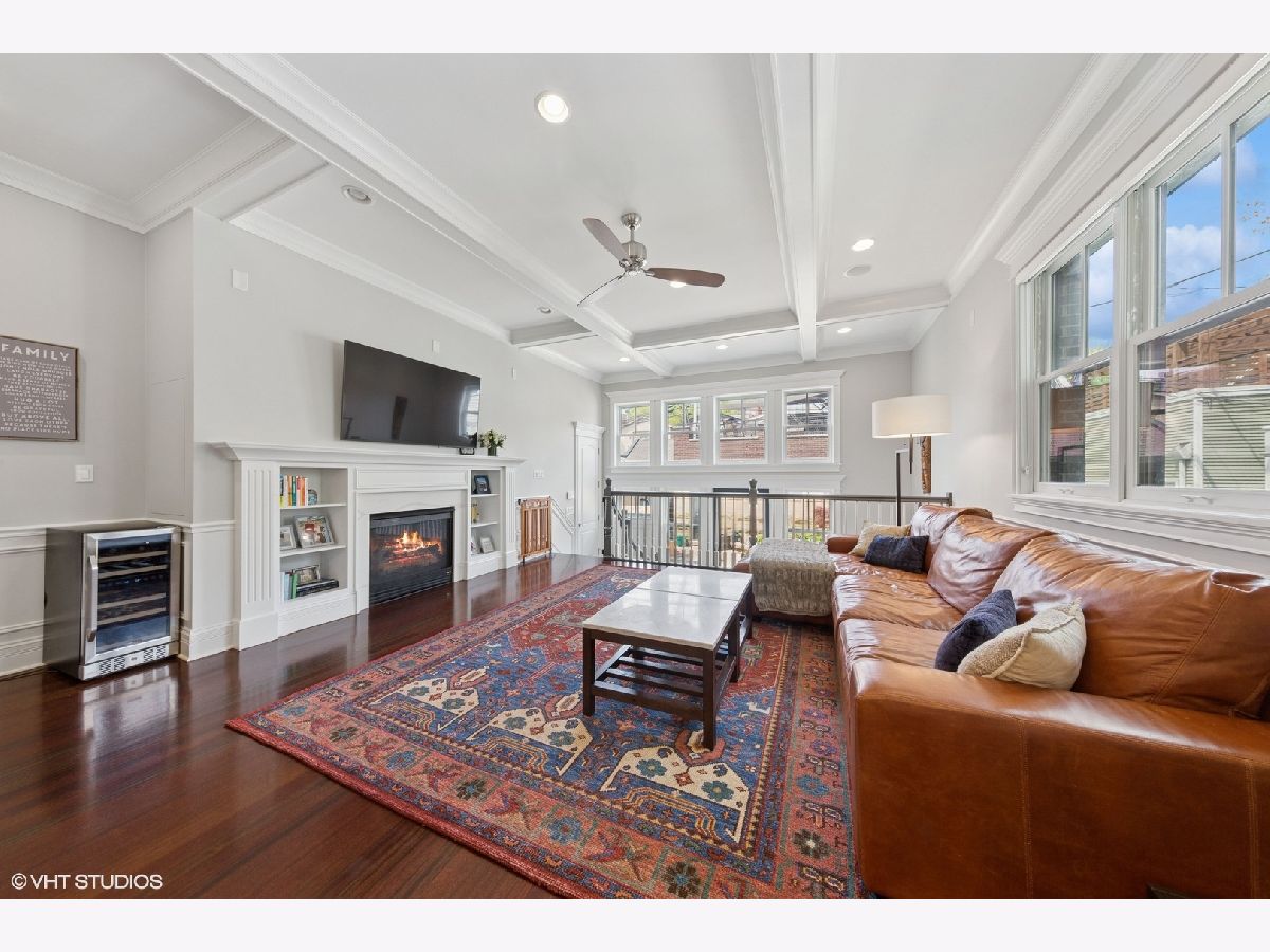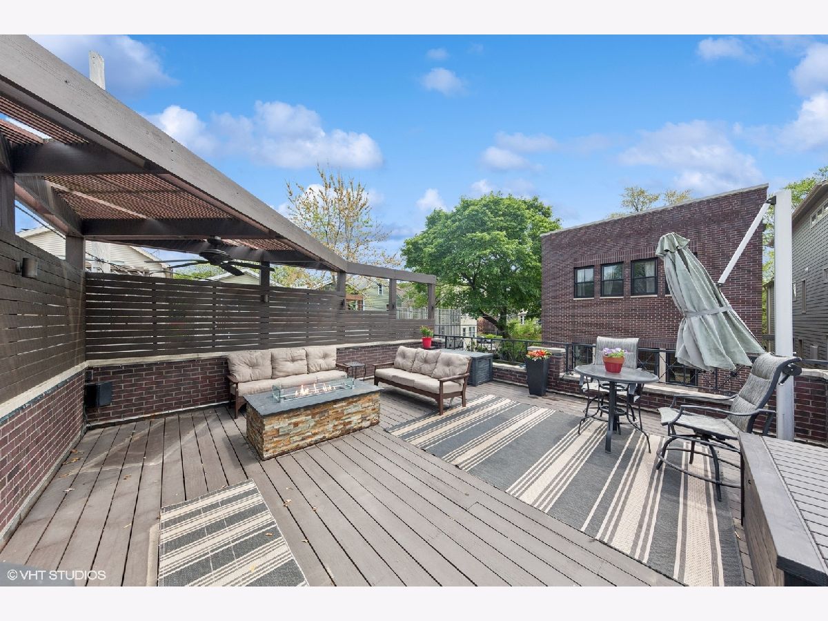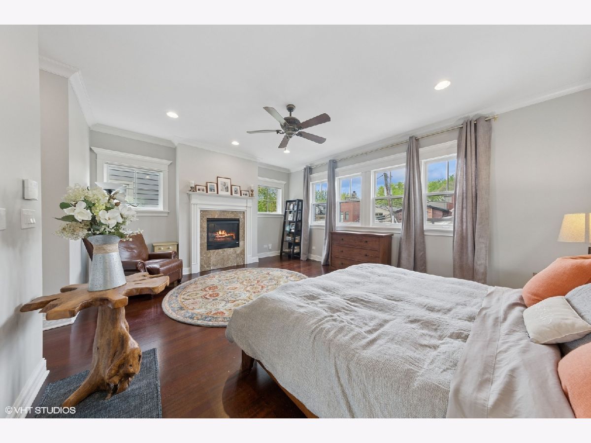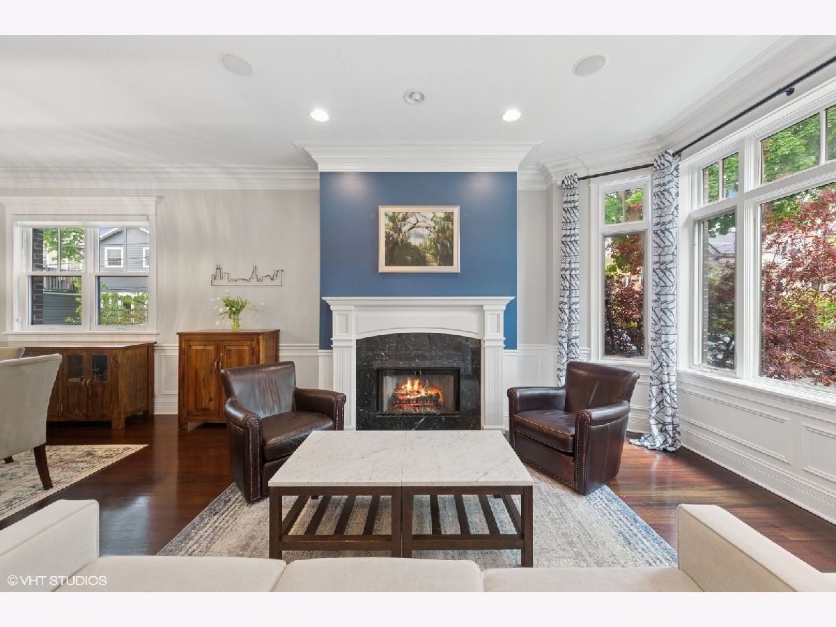 This stunning brick and limestone corner home built by Paul Petersen sits on a tree-lined street in the heart of Roscoe Village. This 4-bedroom, 3.5-bath residence blends timeless elegance with modern comforts and a layout perfect for everyday living and entertaining. Step inside to find soaring ceilings, abundant natural light, and thoughtful finishes throughout. The spacious main level features formal living and dining areas accented by one of four fireplaces. At the heart of the home is a professionally designed chef's kitchen with a massive 9-foot quartz island, Wolf six-burner gas range and oven (2024), Bosch 800 series dishwasher (2024), KitchenAid microwave, oven and warming drawer (2024), Sub-Zero refrigerator (2019/20), and custom cabinetry-all anchored by sleek granite countertops and bar seating beneath sophisticated pendant lighting. Flowing seamlessly from the kitchen is an expansive great room featuring a fireplace and custom built-ins, leading to an oversized private rear patio. Beyond, a fully built-out roof deck above the heated two-car garage offers a rare, multi-season outdoor retreat, perfect for dining, lounging, or entertaining. Upstairs features well-proportioned bedrooms with generous closet space, convenient second-floor laundry, and a luxurious primary suite with a fireplace, massive walk-in closet and a spa-like bathroom complete with a jetted tub, steam shower, double vanity and heated floors. The radiant-heated lower level is ideal for relaxation and recreation, featuring a generous family room with fireplace and wet bar, a fourth bedroom, a full bath, and secondary laundry. Beneath plush carpet lies heated flooring for year-round comfort. All of this just steps to parks, shops, restaurants, and top-rated schools, this home blends classic craftsmanship with modern conveniences in one of Chicago's most desirable neighborhoods.