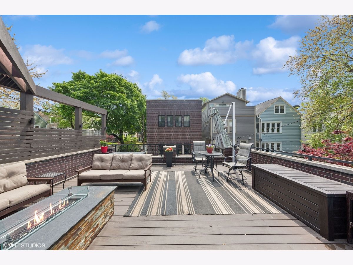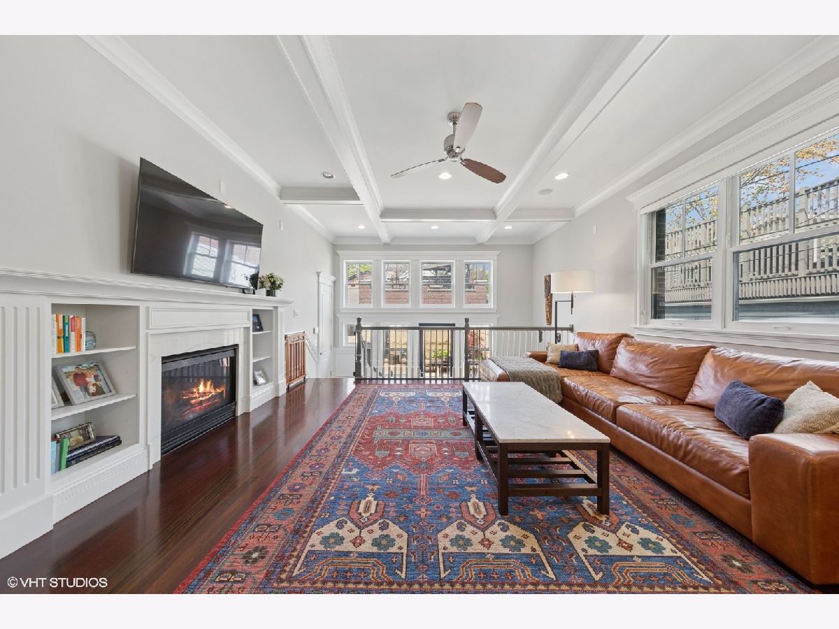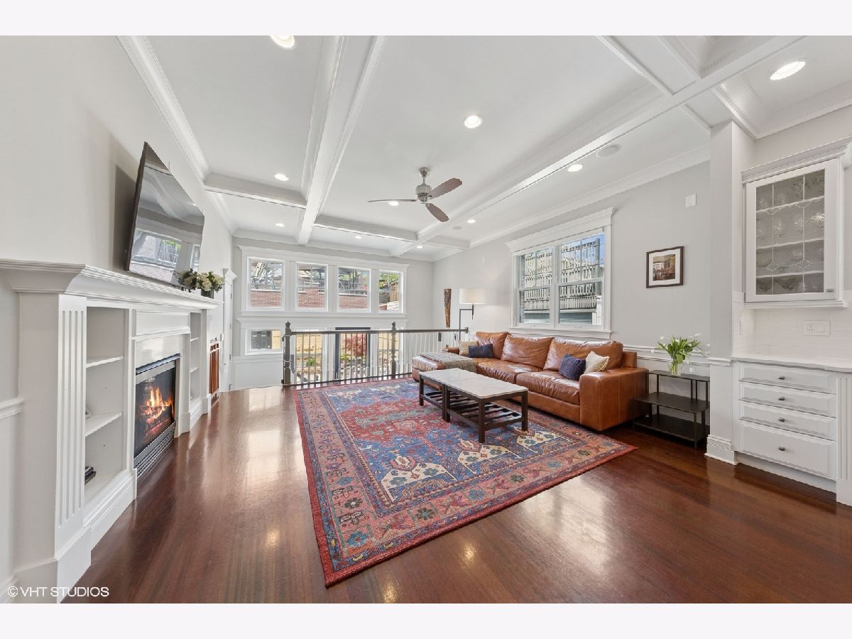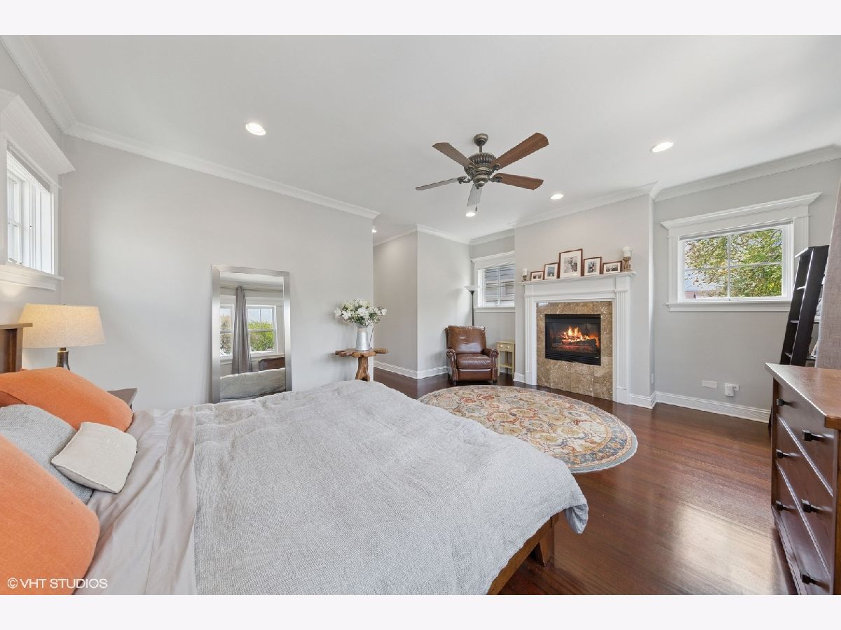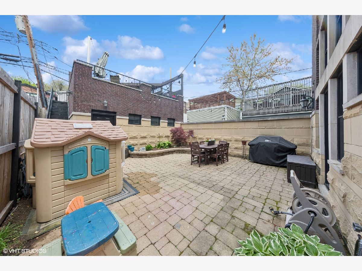 This stunning brick and limestone corner home built by Paul Petersen sits on a tree-lined street in the heart of Roscoe Village. This 4-bedroom, 3.5-bath residence blends timeless elegance with modern comforts and a layout perfect for everyday living and entertaining. Step inside to find soaring ceilings, abundant natural light, and thoughtful finishes throughout. The spacious main level features formal living and dining areas accented by one of four fireplaces. At the heart of the home is a professionally designed chef's kitchen with a massive 9-foot quartz island, Wolf six-burner gas range and oven (2024), Bosch 800 series dishwasher (2024), KitchenAid microwave, oven and warming drawer (2024), Sub-Zero refrigerator (2019/20), and custom cabinetry-all anchored by sleek granite countertops and bar seating beneath sophisticated pendant lighting. Flowing seamlessly from the kitchen is an expansive great room featuring a fireplace and custom built-ins, leading to an oversized private rear patio. Beyond, a fully built-out roof deck above the heated two-car garage offers a rare, multi-season outdoor retreat, perfect for dining, lounging, or entertaining. Upstairs features well-proportioned bedrooms with generous closet space, convenient second-floor laundry, and a luxurious primary suite with a fireplace, massive walk-in closet and a spa-like bathroom complete with a jetted tub, steam shower, double vanity and heated floors. The radiant-heated lower level is ideal for relaxation and recreation, featuring a generous family room with fireplace and wet bar, a fourth bedroom, a full bath, and secondary laundry. Beneath plush carpet lies heated flooring for year-round comfort. All of this just steps to parks, shops, restaurants, and top-rated schools, this home blends classic craftsmanship with modern conveniences in one of Chicago's most desirable neighborhoods.