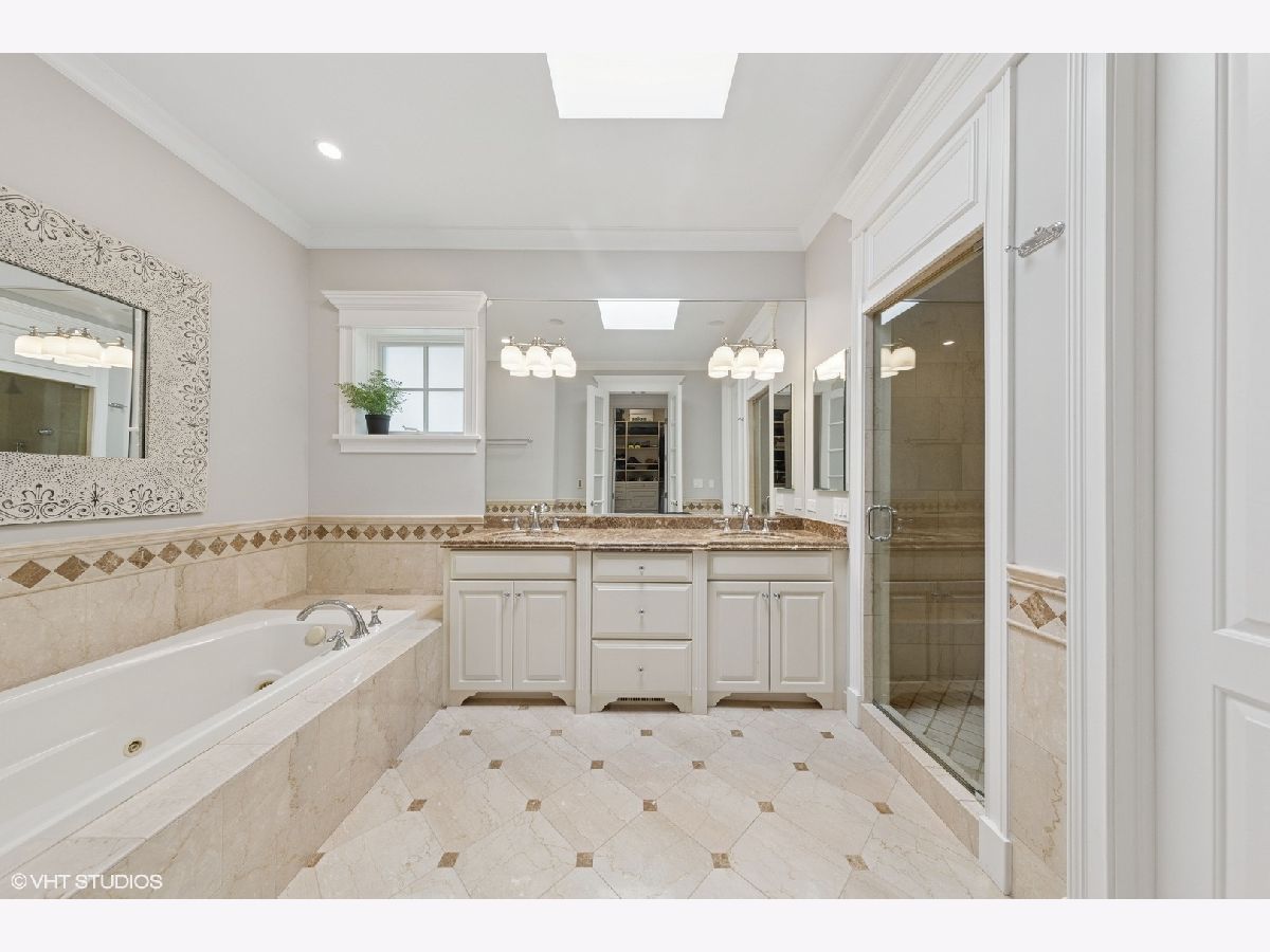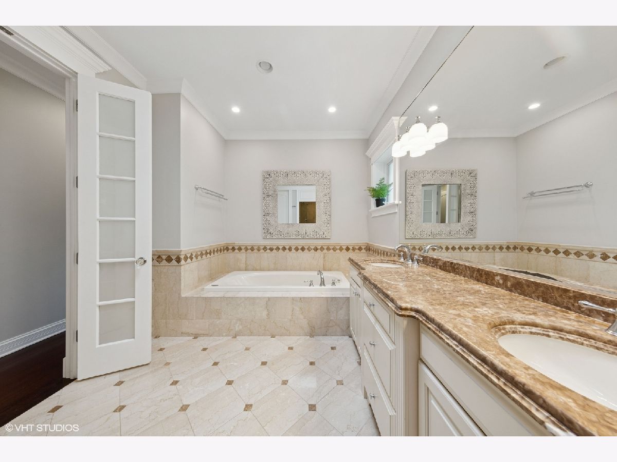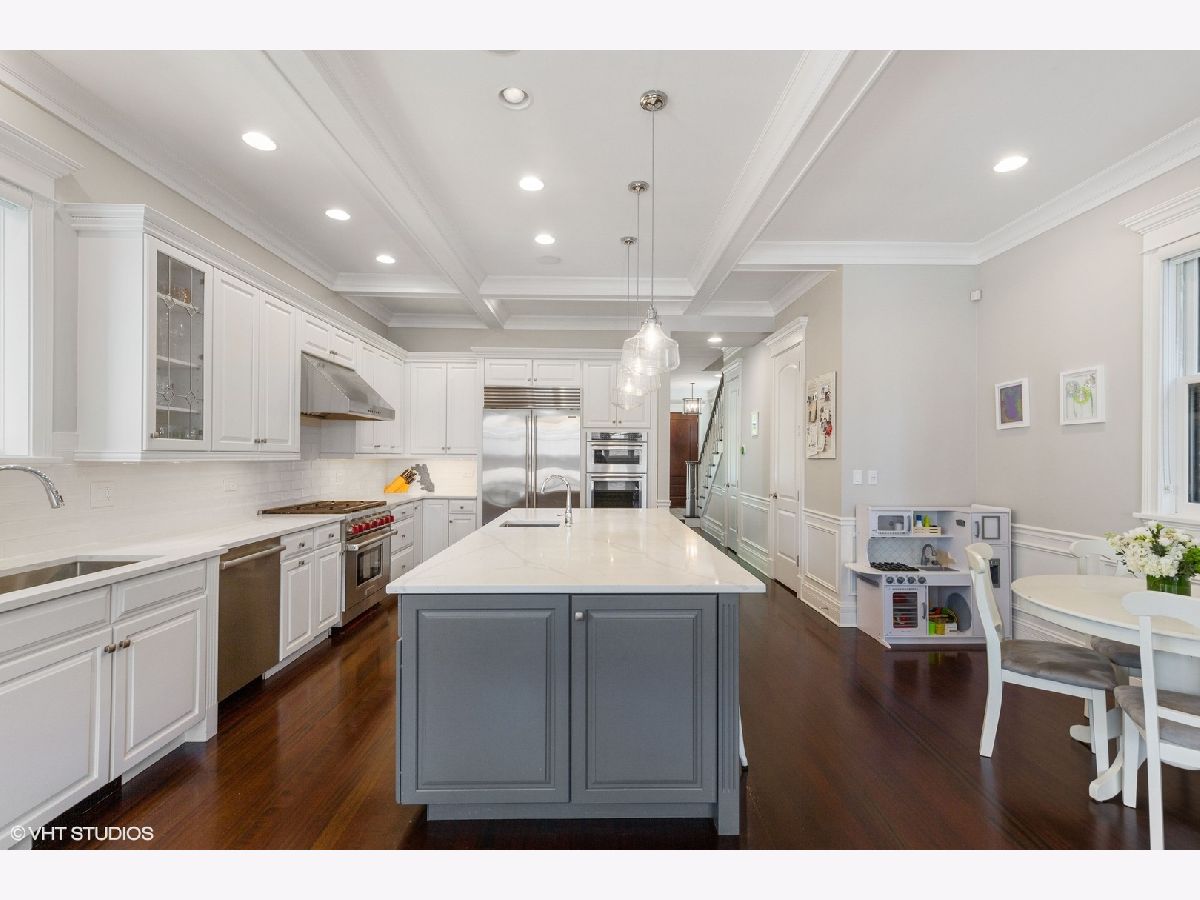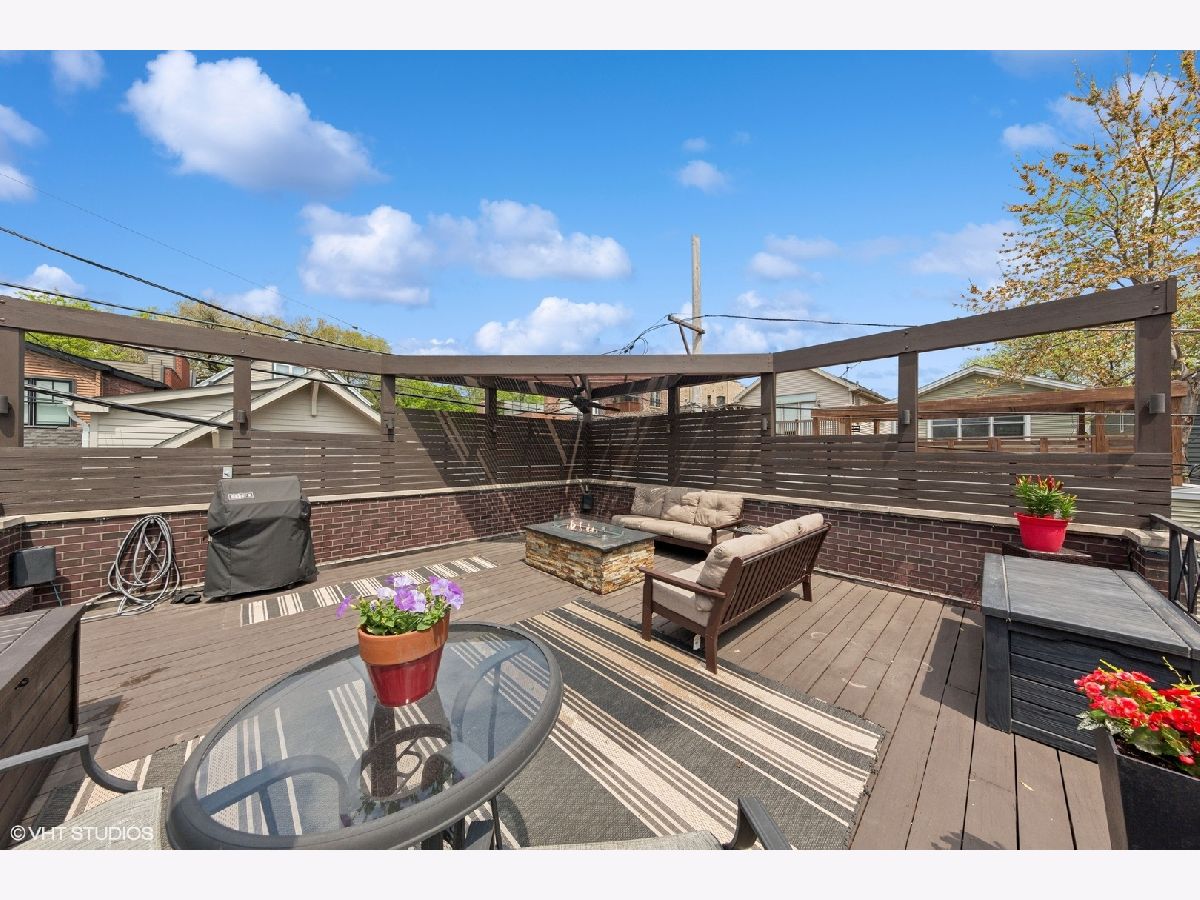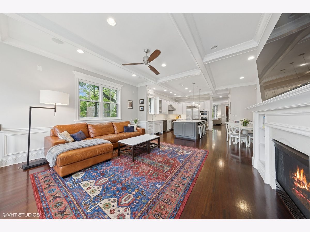 This stunning brick and limestone corner home built by Paul Petersen sits on a tree-lined street in the heart of Roscoe Village. This 4-bedroom, 3.5-bath residence blends timeless elegance with modern comforts and a layout perfect for everyday living and entertaining. Step inside to find soaring ceilings, abundant natural light, and thoughtful finishes throughout. The spacious main level features formal living and dining areas accented by one of four fireplaces. At the heart of the home is a professionally designed chef's kitchen with a massive 9-foot quartz island, Wolf six-burner gas range and oven (2024), Bosch 800 series dishwasher (2024), KitchenAid microwave, oven and warming drawer (2024), Sub-Zero refrigerator (2019/20), and custom cabinetry-all anchored by sleek granite countertops and bar seating beneath sophisticated pendant lighting. Flowing seamlessly from the kitchen is an expansive great room featuring a fireplace and custom built-ins, leading to an oversized private rear patio. Beyond, a fully built-out roof deck above the heated two-car garage offers a rare, multi-season outdoor retreat, perfect for dining, lounging, or entertaining. Upstairs features well-proportioned bedrooms with generous closet space, convenient second-floor laundry, and a luxurious primary suite with a fireplace, massive walk-in closet and a spa-like bathroom complete with a jetted tub, steam shower, double vanity and heated floors. The radiant-heated lower level is ideal for relaxation and recreation, featuring a generous family room with fireplace and wet bar, a fourth bedroom, a full bath, and secondary laundry. Beneath plush carpet lies heated flooring for year-round comfort. All of this just steps to parks, shops, restaurants, and top-rated schools, this home blends classic craftsmanship with modern conveniences in one of Chicago's most desirable neighborhoods.