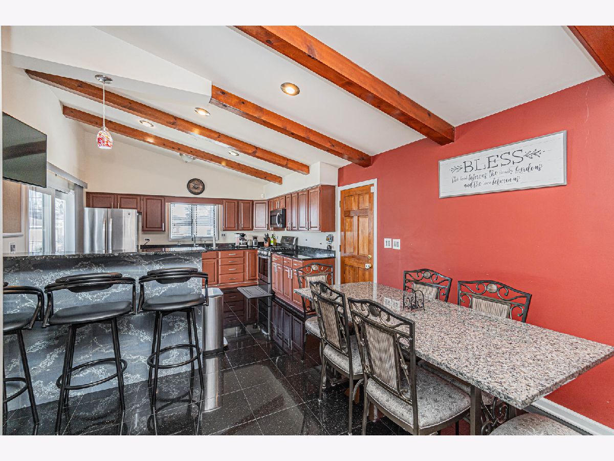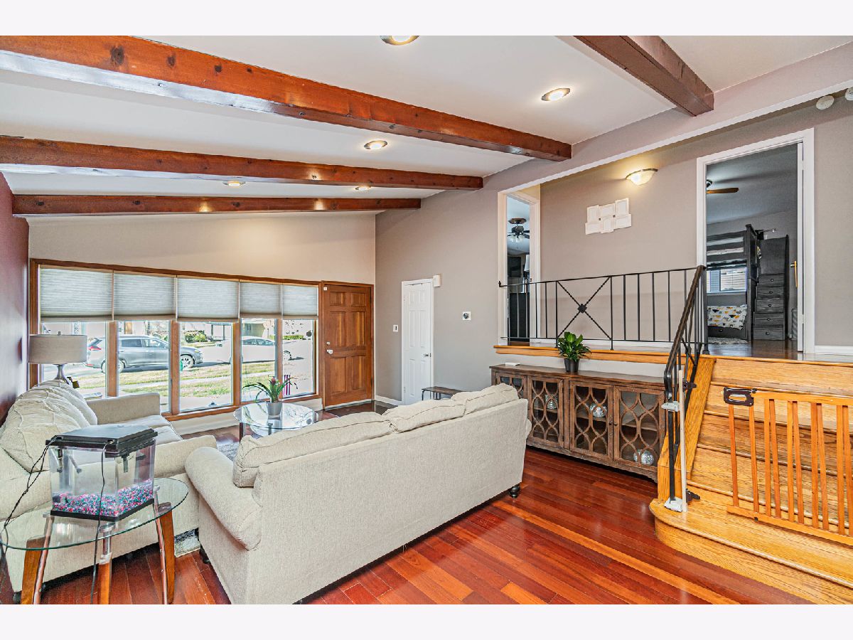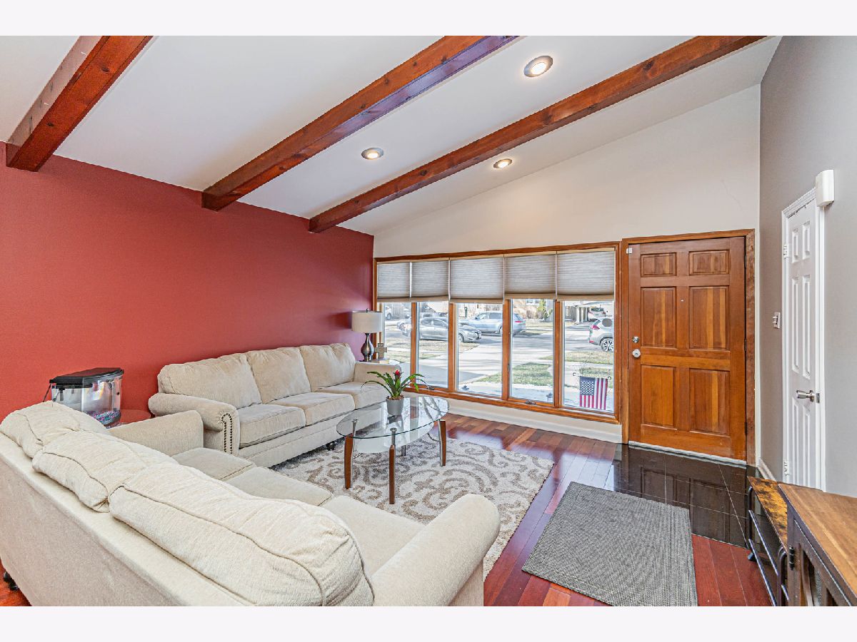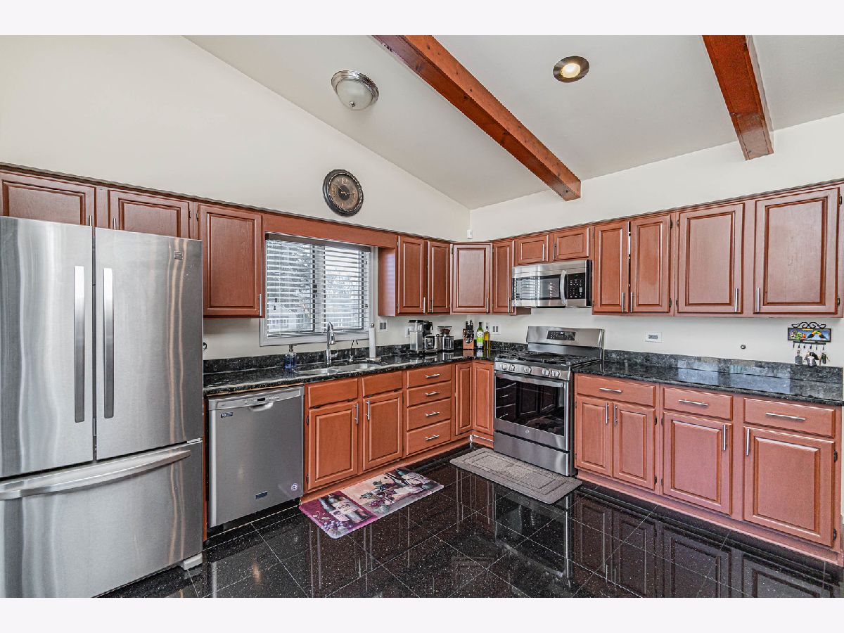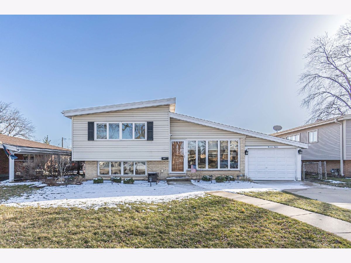 Back on the market, making this your lucky day! Your search is over! Welcome home! 1915 Greenleaf is a wonderfully-maintained and cared-for, 3 bed, 2 bath split-level home on a quiet cul-de-sac in desirable Des Plaines. Enter into the foyer and you will see a beautiful, large contemporary living room with vaulted cathedral ceilings and natural wooden beams that give it the vintage feel. The wonderful floor plan contains an entirely open concept main floor, going from the living room through the kitchen. You have both a dining room area AND a full eat-in kitchen with a sliding door that leads to your beautiful cement patio/backyard. The kitchen consists of ceramic tiles, real wooden cabinets, granite countertops w/ a breakfast bar, and stainless steel appliances. Newer appliances; Oven/Range(2023), Dishwasher(2021), Microwave (2021), Fridge (2014). Completing the main level is a mudroom (newly built 2021) that leads you to the attached 2 car garage and a bonus room, which was converted into an office with heating/cooling (2021); a rare find in a 3-bedroom split-level home. Head upstairs where you will find 3 generously-sized bedrooms, along with a nicely updated full bathroom. Hardwood flooring throughout the main & upper levels. The family room is located in the lower level where you will spend your family nights in the beautiful recreation room. A full bathroom with a standing shower and a separate laundry room completes the lower level, which also has been updated with luxury vinyl flooring (2020). Your home will be the main destination for summertime gatherings with your huge, fenced-in, professionally landscaped backyard that is a child's dream oasis! A shed was also installed in the backyard in 2021. Enjoy sipping your morning coffee on your cement patio while watching the children play in the yard. New roof in 2020, new 6-panel doors/closets and canned lighting installed throughout the home and new front landscaping done in 2023. Literally nothing to do but move in! This one surely won't last long, so do your client a favor and schedule your showing now!