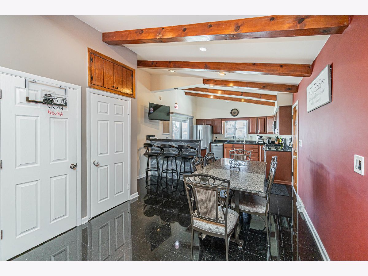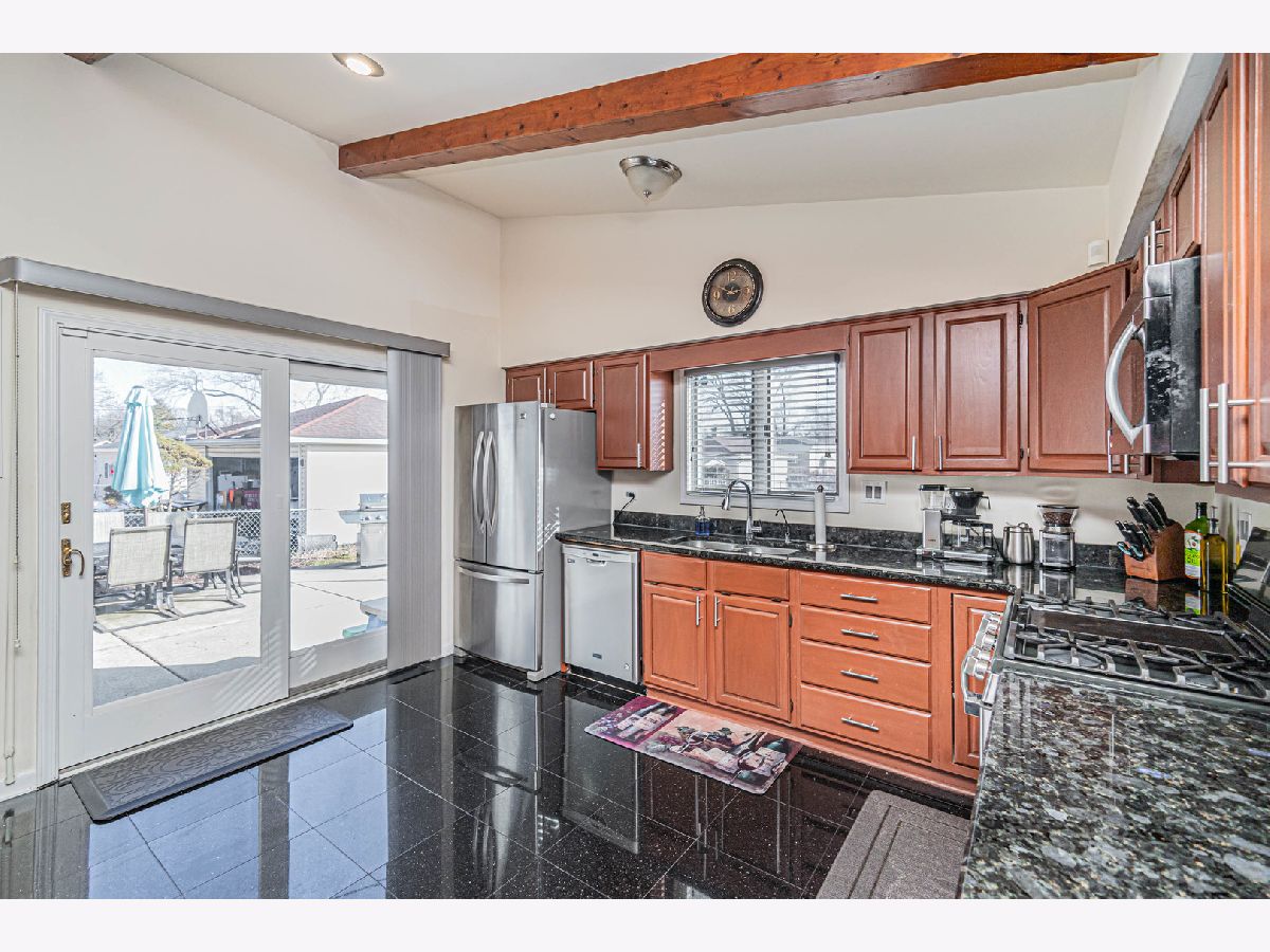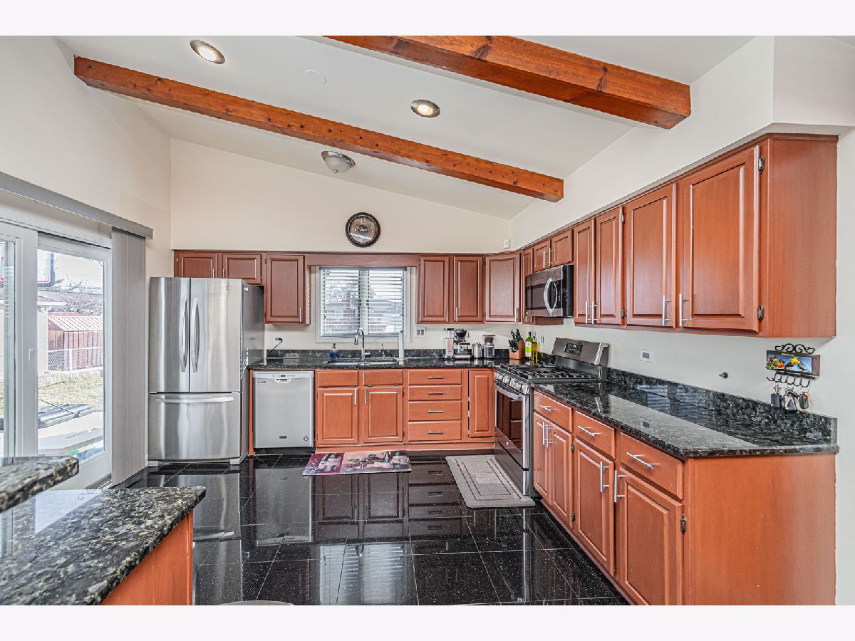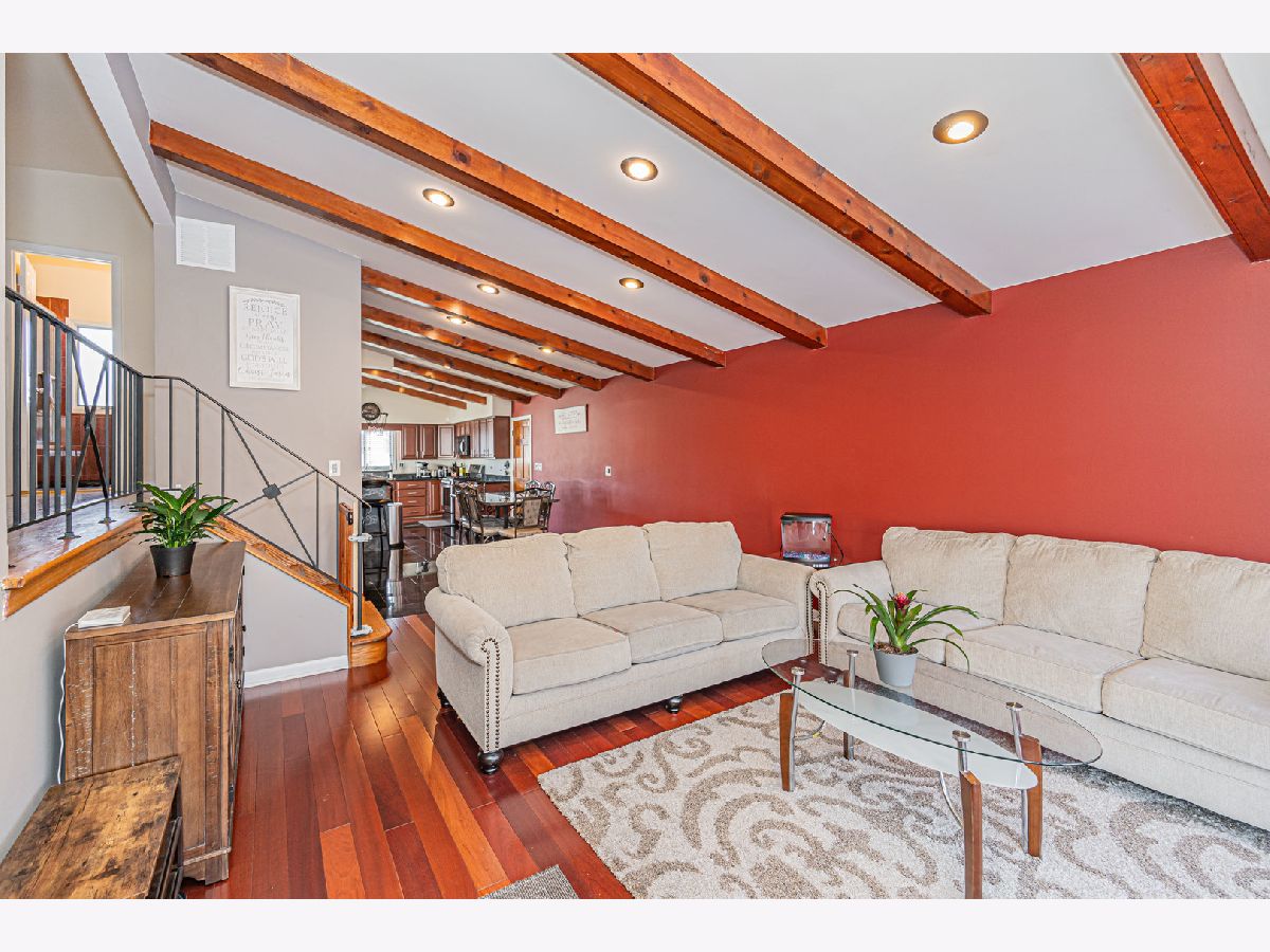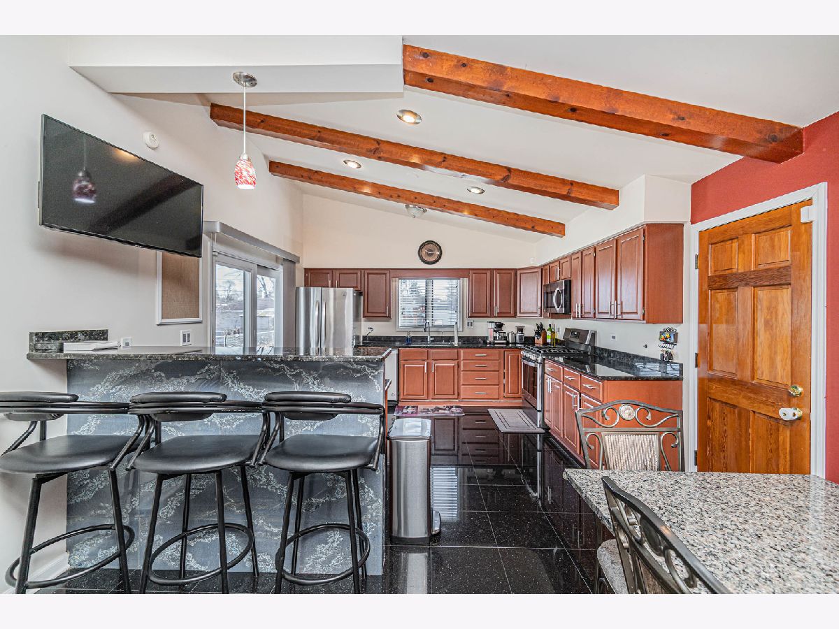 Back on the market, making this your lucky day! Your search is over! Welcome home! 1915 Greenleaf is a wonderfully-maintained and cared-for, 3 bed, 2 bath split-level home on a quiet cul-de-sac in desirable Des Plaines. Enter into the foyer and you will see a beautiful, large contemporary living room with vaulted cathedral ceilings and natural wooden beams that give it the vintage feel. The wonderful floor plan contains an entirely open concept main floor, going from the living room through the kitchen. You have both a dining room area AND a full eat-in kitchen with a sliding door that leads to your beautiful cement patio/backyard. The kitchen consists of ceramic tiles, real wooden cabinets, granite countertops w/ a breakfast bar, and stainless steel appliances. Newer appliances; Oven/Range(2023), Dishwasher(2021), Microwave (2021), Fridge (2014). Completing the main level is a mudroom (newly built 2021) that leads you to the attached 2 car garage and a bonus room, which was converted into an office with heating/cooling (2021); a rare find in a 3-bedroom split-level home. Head upstairs where you will find 3 generously-sized bedrooms, along with a nicely updated full bathroom. Hardwood flooring throughout the main & upper levels. The family room is located in the lower level where you will spend your family nights in the beautiful recreation room. A full bathroom with a standing shower and a separate laundry room completes the lower level, which also has been updated with luxury vinyl flooring (2020). Your home will be the main destination for summertime gatherings with your huge, fenced-in, professionally landscaped backyard that is a child's dream oasis! A shed was also installed in the backyard in 2021. Enjoy sipping your morning coffee on your cement patio while watching the children play in the yard. New roof in 2020, new 6-panel doors/closets and canned lighting installed throughout the home and new front landscaping done in 2023. Literally nothing to do but move in! This one surely won't last long, so do your client a favor and schedule your showing now!