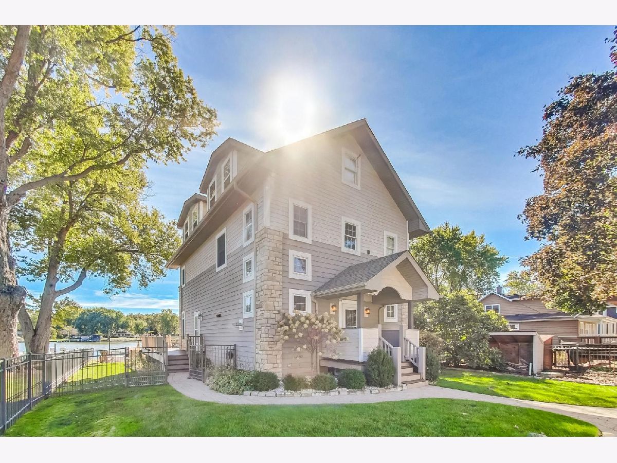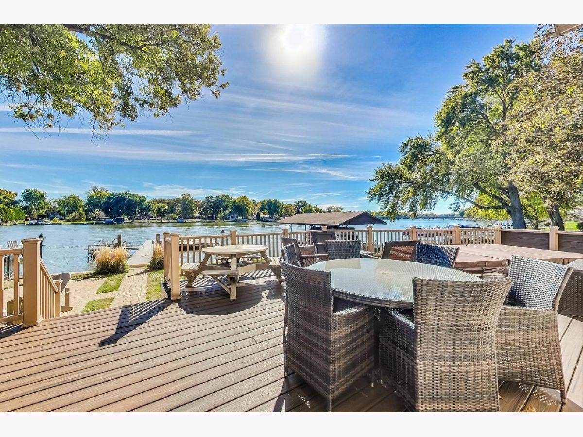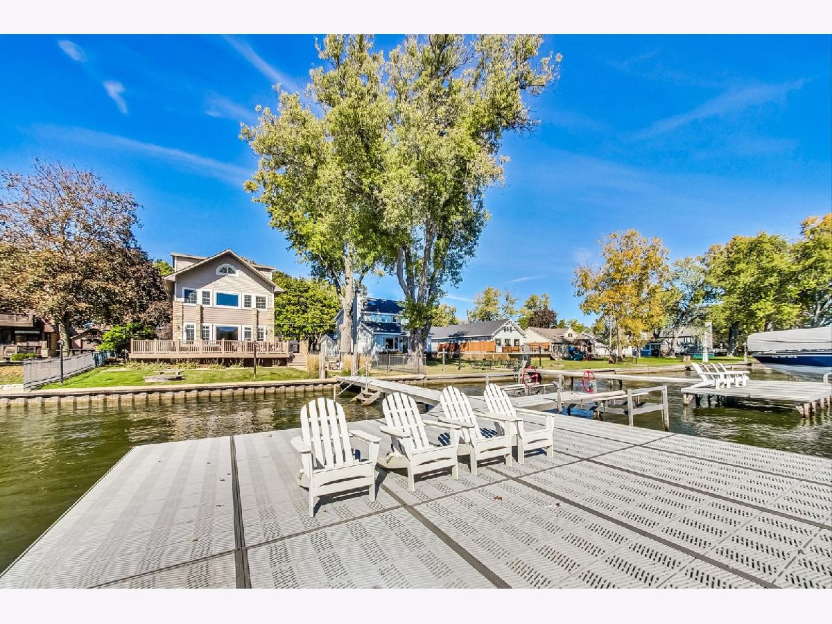 Fully updated 4 bed, 3 bath Fox Riverfront Chain O'Lakes home is a must-see! One of the few houses in the neighborhood with a fully fenced yard to the water, this home has the perfect balance of indoor and outdoor living all year. One of the best features of this home is the outdoor space off the living room. There is plenty of space for entertaining on the huge Trex deck, a 10-person built-in LA spa. Cool night? Step off the deck to one of two spaces to enjoy a fire pit and make some s'mores. Do you like water sports or sunbathing? The Extended 60 ft dock includes two wave runner lifts and has a 528 sq ft sitting area and steps into the river for fun in the sun. Ready to go inside? Step into the cozy living room that looks out over the river. The living room features a stone fireplace for those winter nights and several windows to flood the room with natural light and includes brand new motorized shades. Adjacent to the living room is the large kitchen that was updated in 2018 with refreshed cabinets, quartz countertops and appliances. The stove and microwave are brand new and still under warranty. The first-floor rounds out with a bedroom and full bathroom, large storage closet and wood laminate flooring thru-out. The second floor features the primary bedroom with large en-suite that features two separate vanities, large walk-in shower and separate soaking tub. The space for seventh bedroom was taken from the primary. Another bedroom and full bathroom, that was added in 2018, which includes a washer and dryer, caps off the second floor. In 2023, the third-floor addition added three bedrooms, and each room has Mitsubishi mini-split hvac units. Detached garage has a single vehicle door but is the size of a two car with parking for six additional cars on the parking pads. Two Sea-Doo Spark wave runners and furniture can be made available.