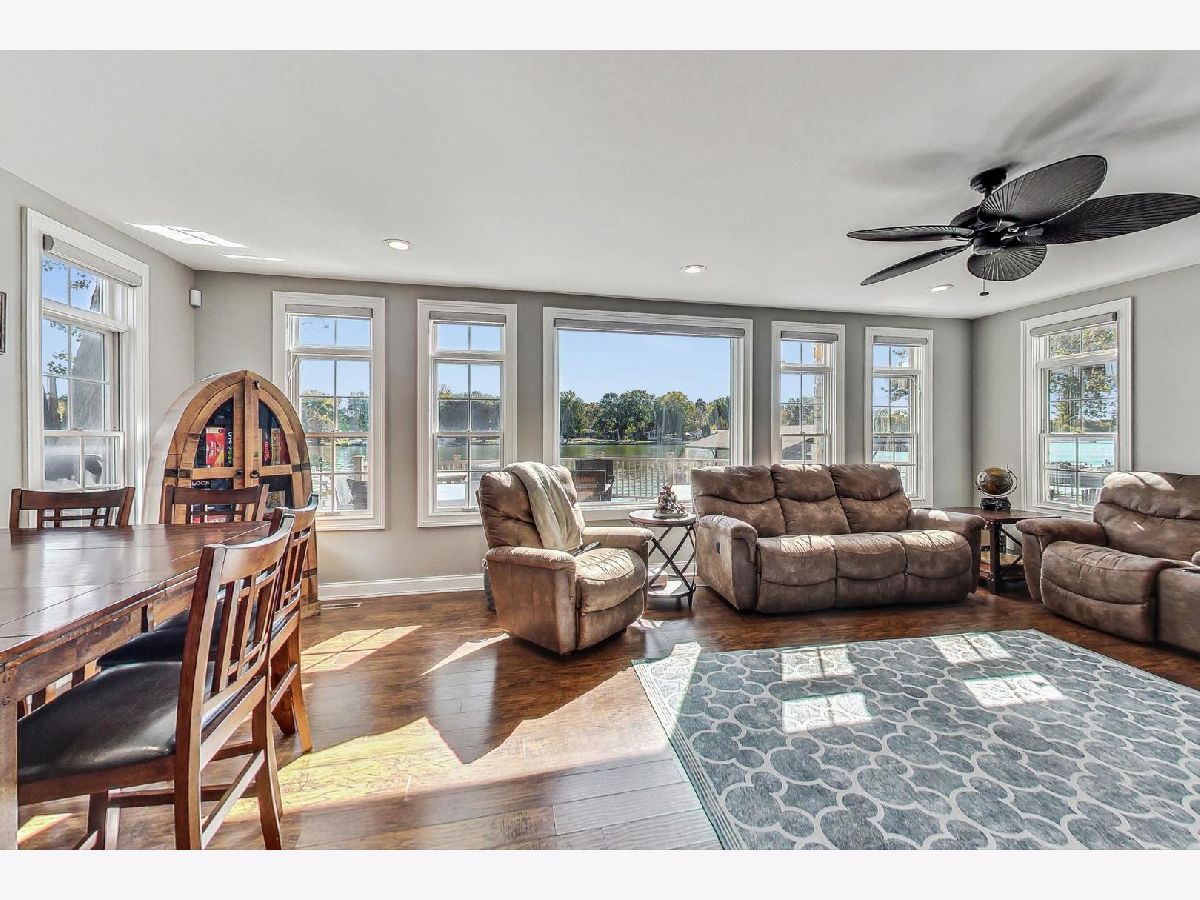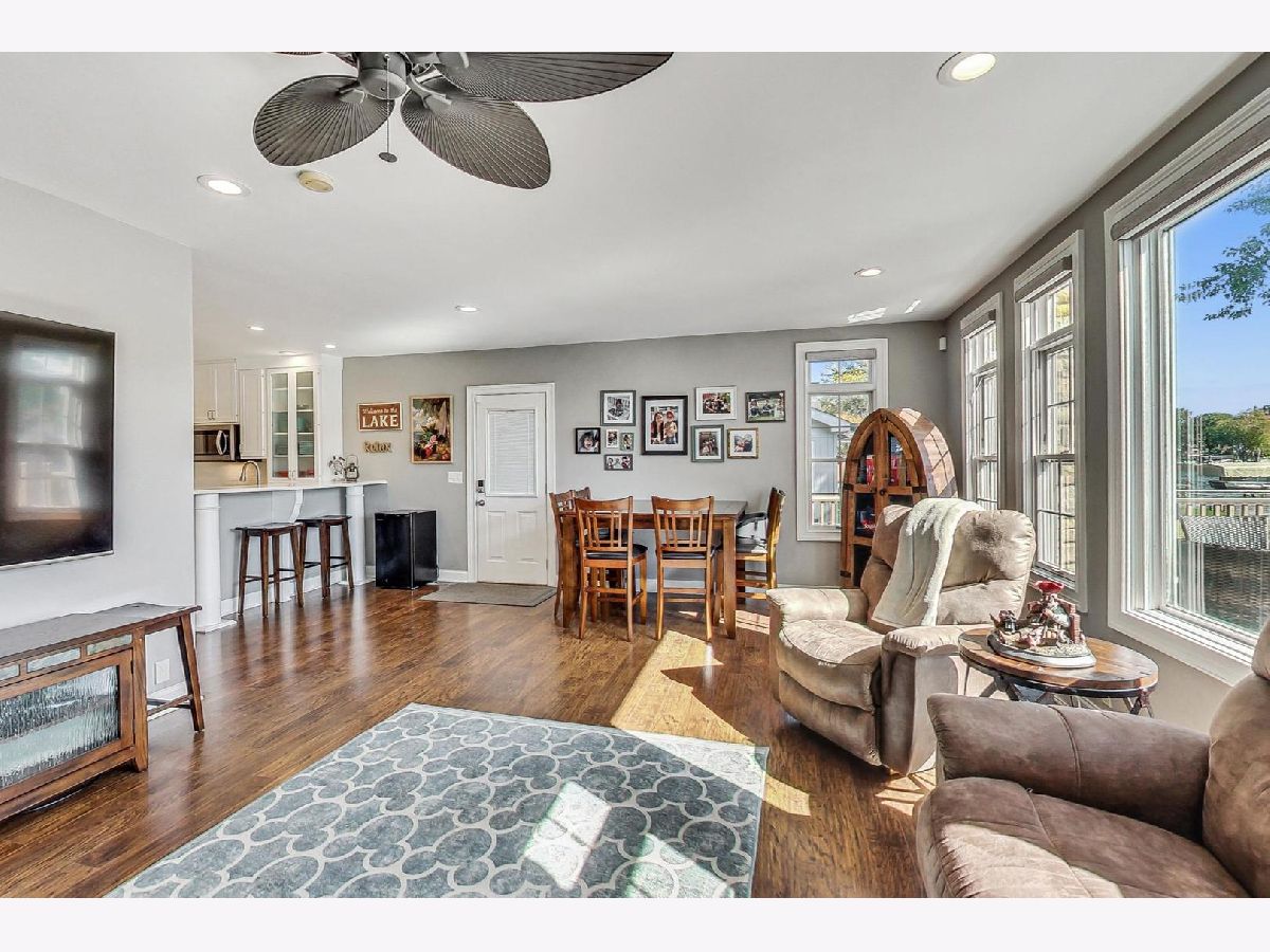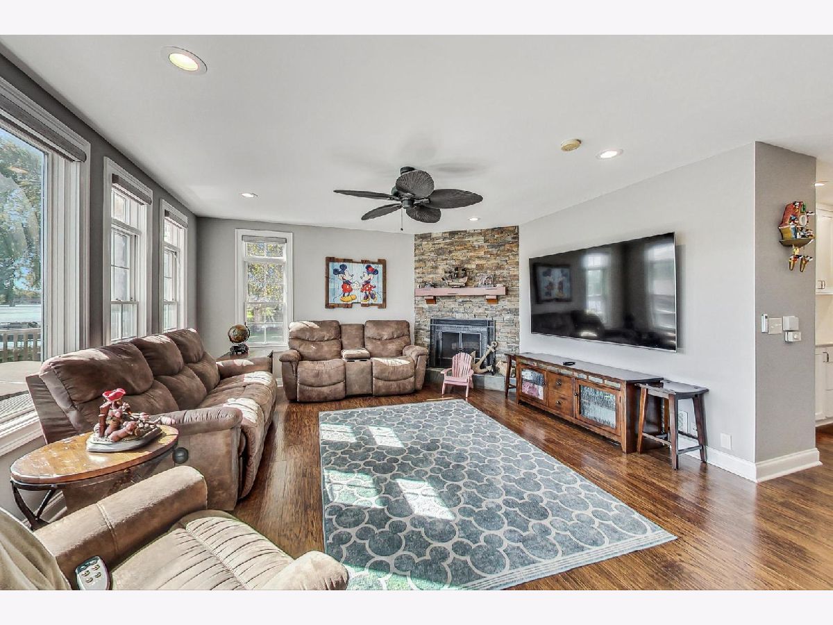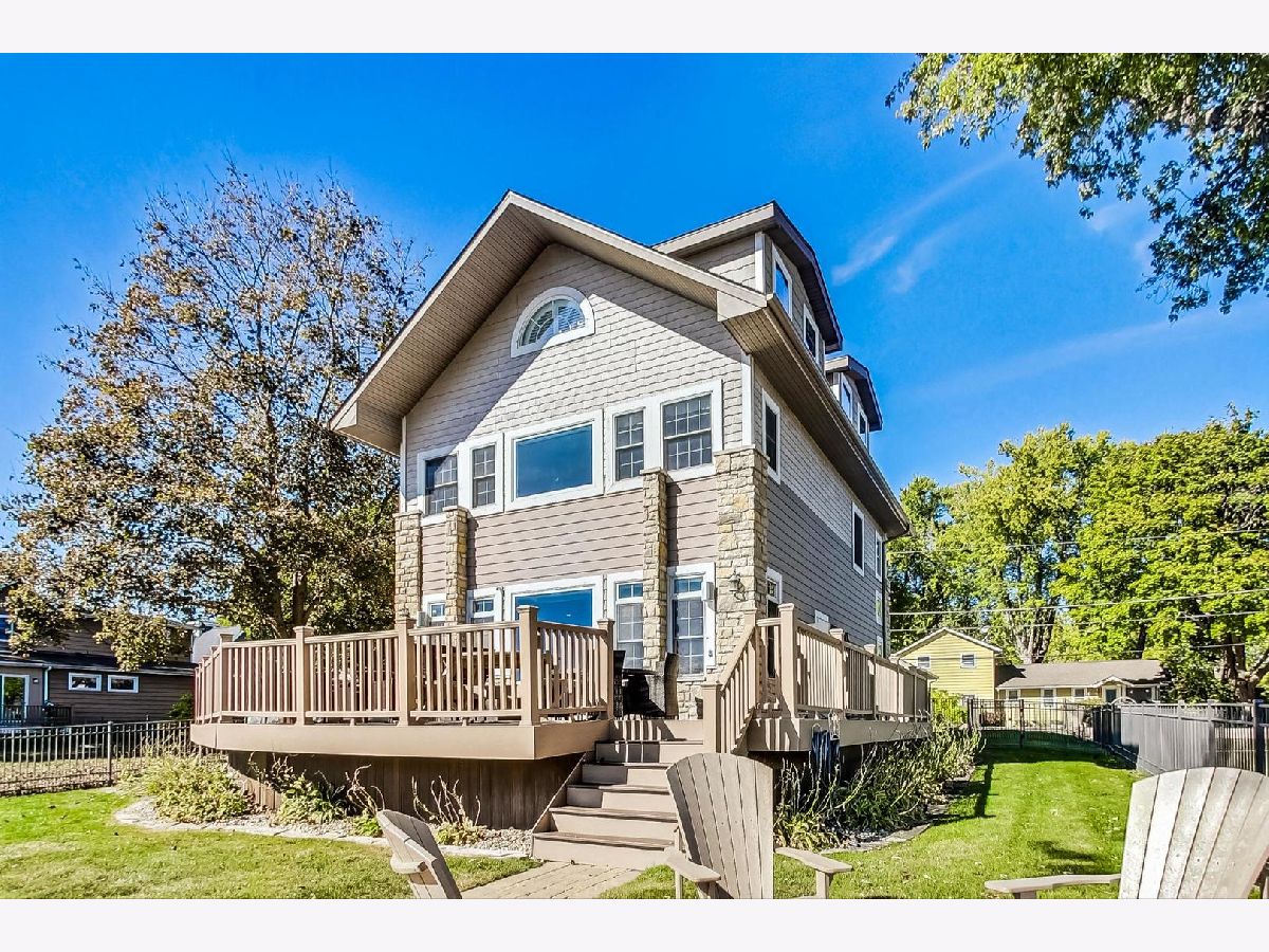 Fully updated 4 bed, 3 bath Fox Riverfront Chain O'Lakes home is a must-see! One of the few houses in the neighborhood with a fully fenced yard to the water, this home has the perfect balance of indoor and outdoor living all year. One of the best features of this home is the outdoor space off the living room. There is plenty of space for entertaining on the huge Trex deck, a 10-person built-in LA spa. Cool night? Step off the deck to one of two spaces to enjoy a fire pit and make some s'mores. Do you like water sports or sunbathing? The Extended 60 ft dock includes two wave runner lifts and has a 528 sq ft sitting area and steps into the river for fun in the sun. Ready to go inside? Step into the cozy living room that looks out over the river. The living room features a stone fireplace for those winter nights and several windows to flood the room with natural light and includes brand new motorized shades. Adjacent to the living room is the large kitchen that was updated in 2018 with refreshed cabinets, quartz countertops and appliances. The stove and microwave are brand new and still under warranty. The first-floor rounds out with a bedroom and full bathroom, large storage closet and wood laminate flooring thru-out. The second floor features the primary bedroom with large en-suite that features two separate vanities, large walk-in shower and separate soaking tub. The space for seventh bedroom was taken from the primary. Another bedroom and full bathroom, that was added in 2018, which includes a washer and dryer, caps off the second floor. In 2023, the third-floor addition added three bedrooms, and each room has Mitsubishi mini-split hvac units. Detached garage has a single vehicle door but is the size of a two car with parking for six additional cars on the parking pads. Two Sea-Doo Spark wave runners and furniture can be made available.
