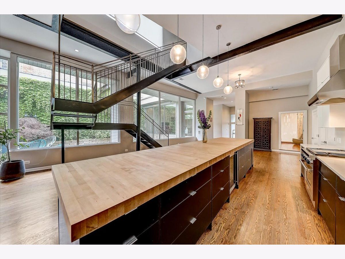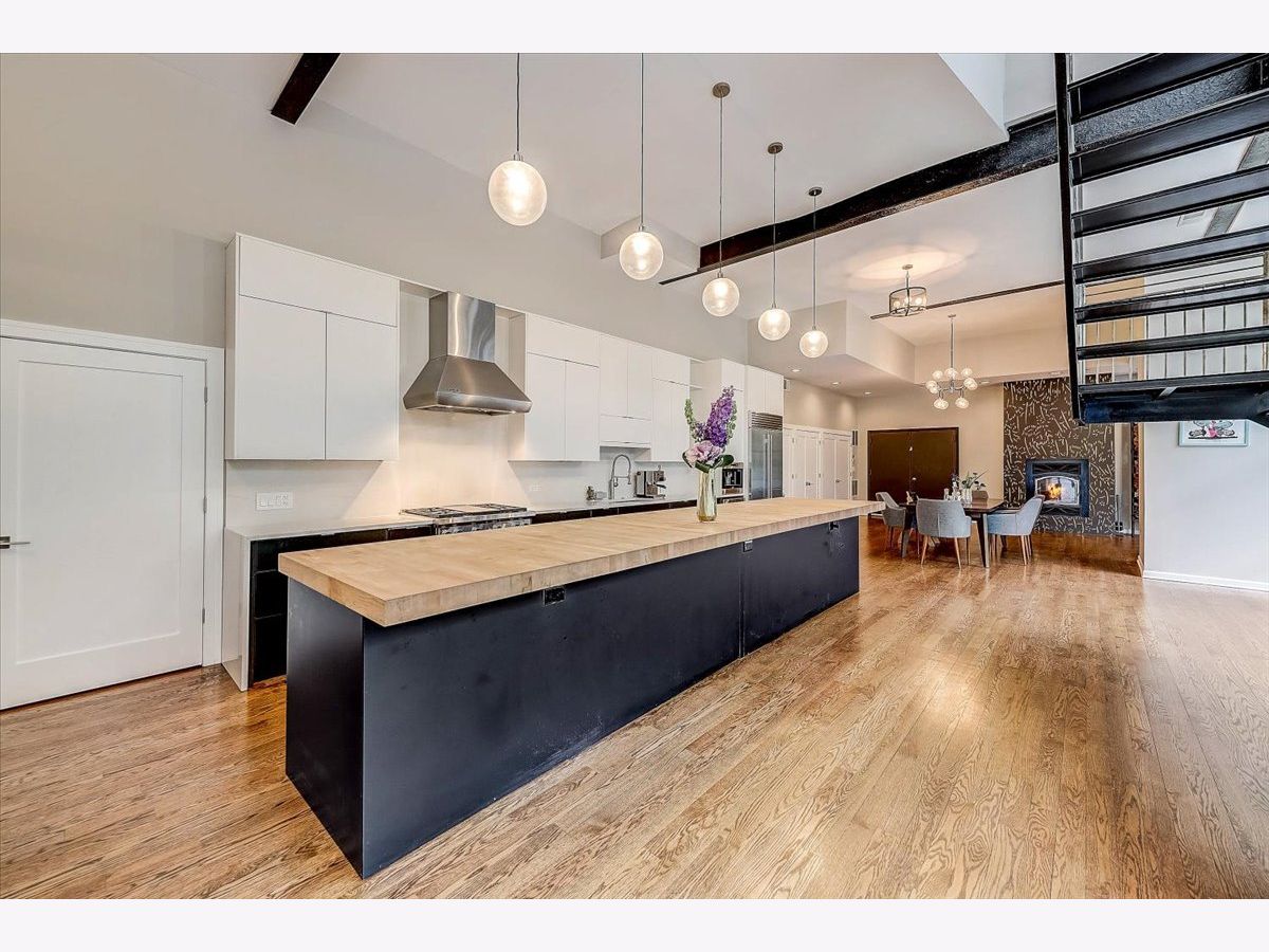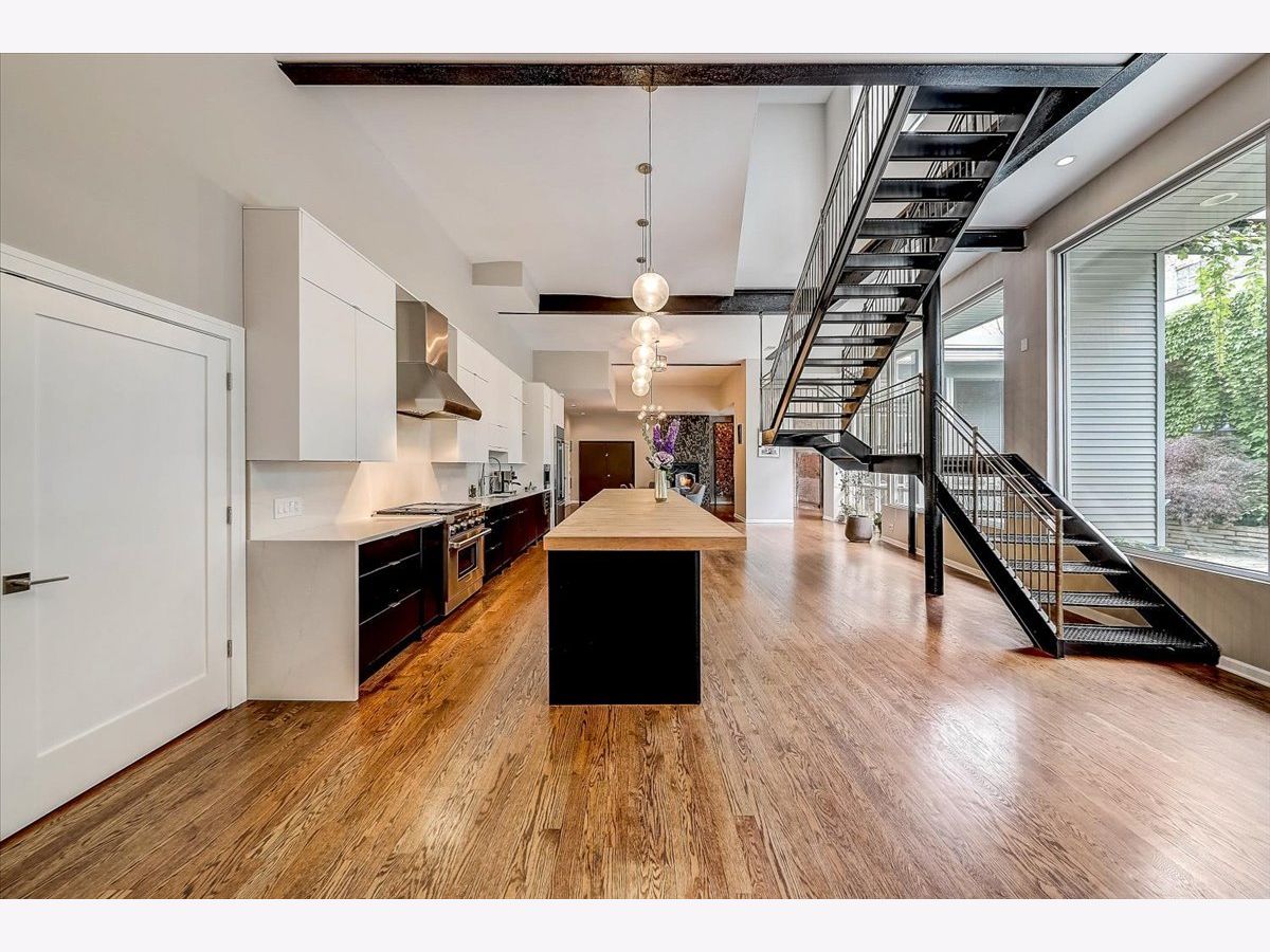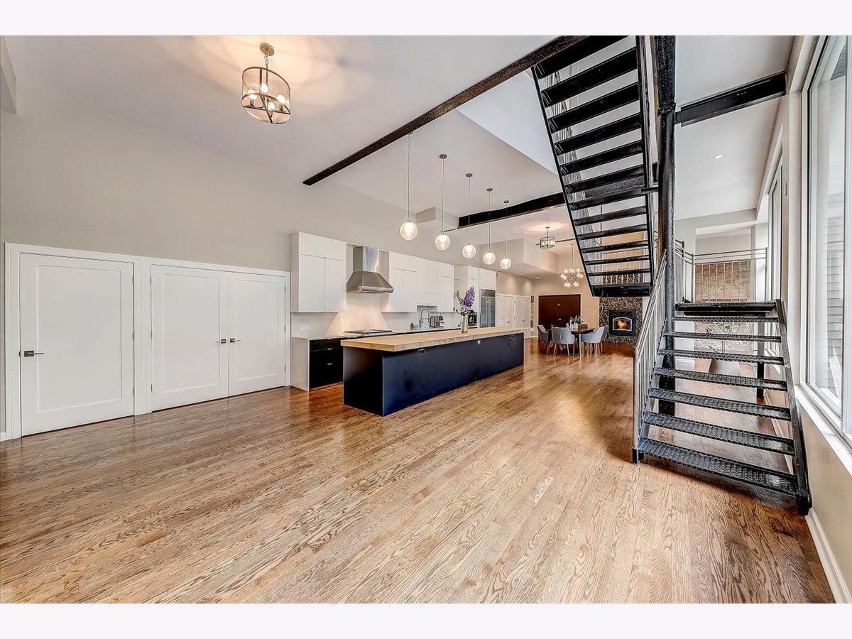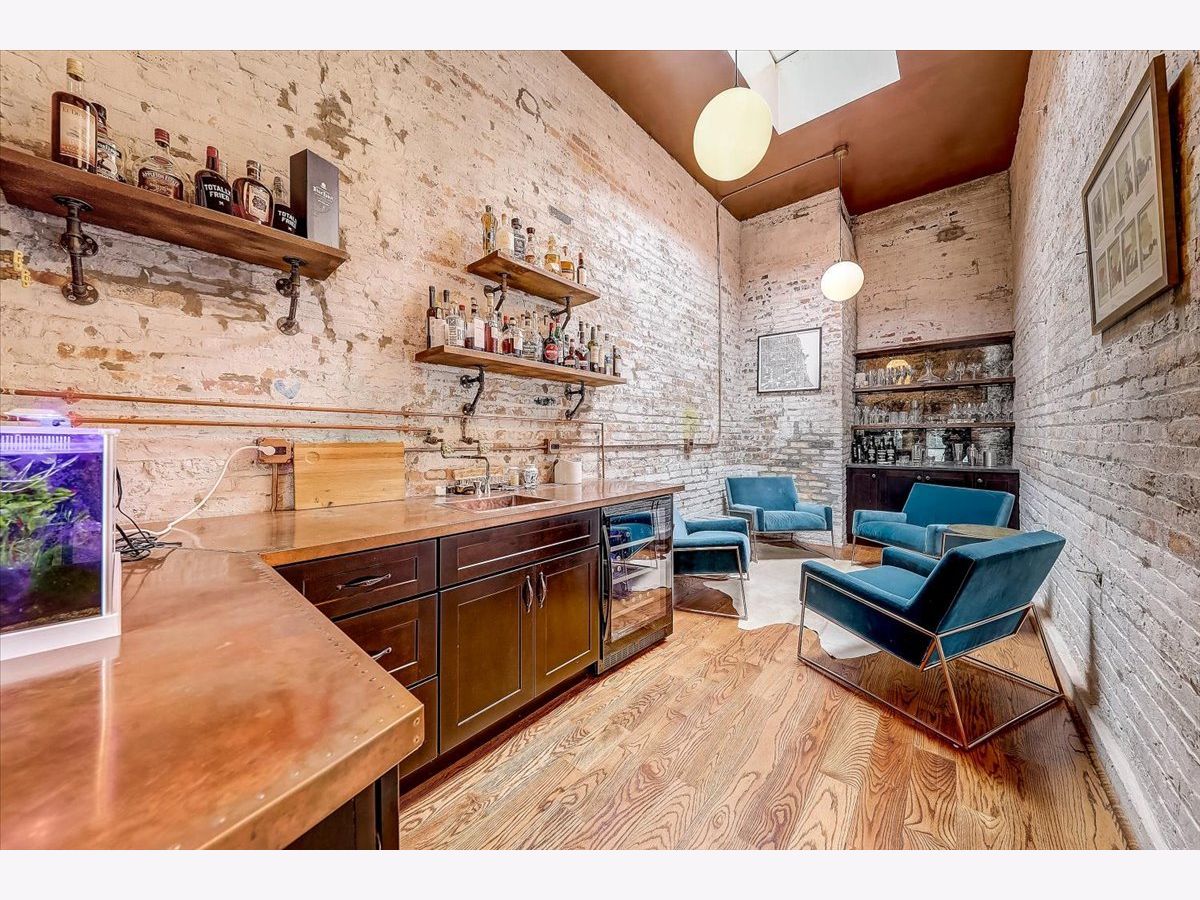 History meets modern design in this unique and massive single-family home in the heart of West Town, boasting 6,888 square feet of sun filled open floor plan on a double lot with an attached 4-car garage! The entire home pivots around a scenic and lush outdoor courtyard and private terrace that is simply breathtaking. Originally built as a foundry, it was converted to a storage house for CPD horses and carriages and later became a recording studio that produced some of Chicago's famed House Music. This historical structure has been expertly engineered into a 7 bedroom, 4.5 bath home. Juxtaposing two design concepts throughout by keeping the original structure's exposed brick architecture married with modern elegance and sleek design. You are immediately greeted by the exceptional, designer gourmet kitchen with an impressive 8-seat custom butcher block island, 52-inch cabinets, Wolf appliances, 20ft of pantry space, and gleaming hardwood floors. The gorgeous floor-to-ceiling windows throughout the entire first floor give you an up close and personal view of the one-of-a-kind secluded garden courtyard. The home is divided into two private wings. The main home features over 5000 square feet of living space that boasts 5 bedrooms, a formal living and dining room, a family room, laundry room, fireplace, and an incredible speakeasy bar. Upstairs has the impressive en suite Master bedroom with a huge, marbled walk-in shower with a full-body spa and stand-alone soaker tub located inside. An organized walk-in closet and custom mural complete the large space. The second wing features a modern open concept with an additional full kitchen with stainless steel appliances, a quartz island, and a family room. Enjoy 2 additional bedrooms that are perfect to work from home or exercise spaces. The roof is accessible from both wings and it is reinforced for your dream deck to be built. Some of the many recent improvements include updated bathrooms, light fixtures throughout, built-in cabinets in laundry room, Google doorbell, designer wallpaper, tiled entryway, hand panted murals around the fireplace and in the master bedroom, hot water recirculation system and a sleek imported Italian sauna. There are too many incredible features to name, this is one you have to see to believe!