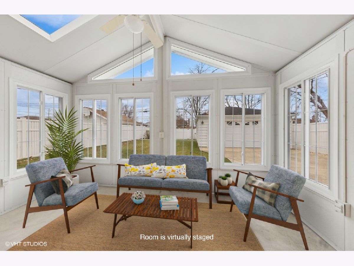 Are you looking for the perfect blend of comfort, convenience, and space? Come see this beautiful home with exquisite features that has been lovingly maintained by original owners. First floor offers open living room to formal dining room, eat-in kitchen with custom cabinetry and picture window overlooking the expansive backyard. Full bath, bedroom (which could be used as a home office or den), and a lovey three season sun porch tastefully done with exposed brick that is just calling for you to sit and have your morning coffee. The second floor greets you with a beautiful winding staircase and parquet wooden floors. There are three good sized bedrooms with ample closet space and plenty of natural light. The primary has a fourth tandem room that would be a perfect nursery, sitting room and or office. The full hall bath and linen closet finish off the spacious second floor. Full, unfinished basement with laundry, large utility sink, workstation, and potential for future family/ rec room. The meticulously cared for backyard is a jaw dropper graced by a newer extra-long 2.5 garage. Convenient location with easy access to major expressways, commuter trains and airports. Blocks from school, park district, playground, pool, tennis courts and walking paths. Schedule a showing to see the care and quality of this delightful home.