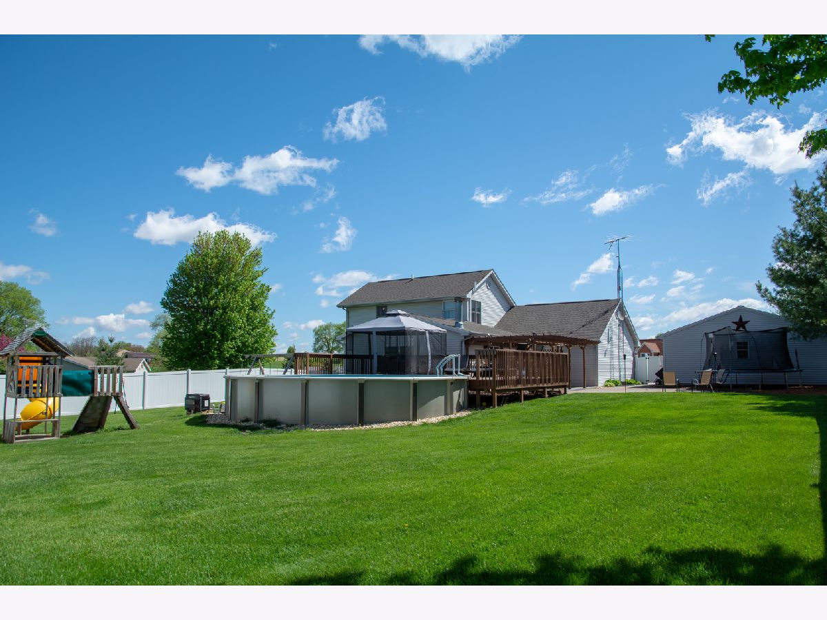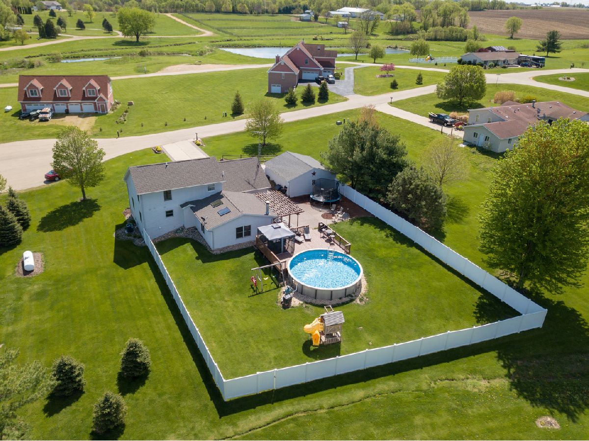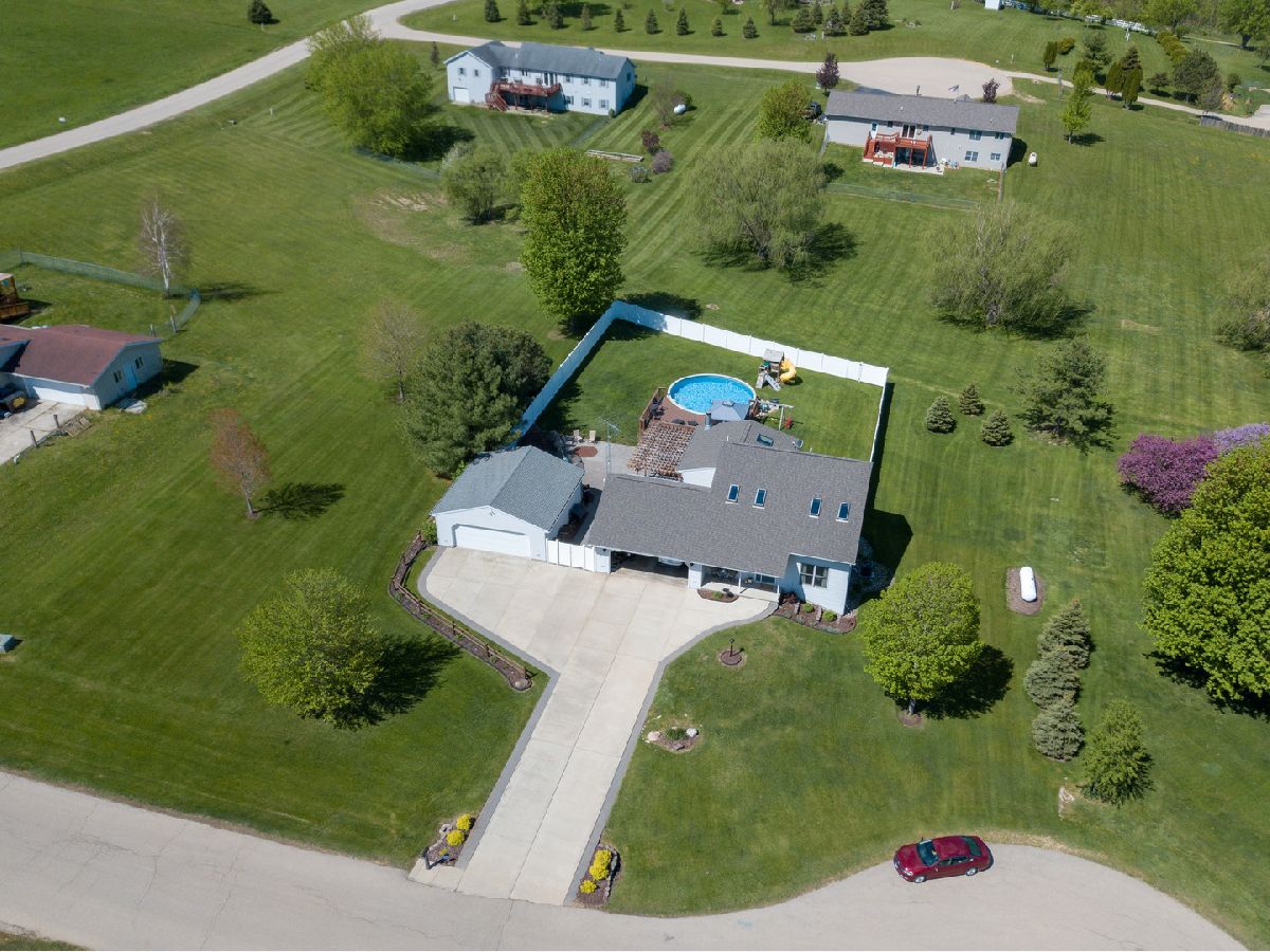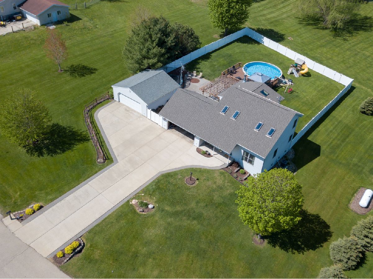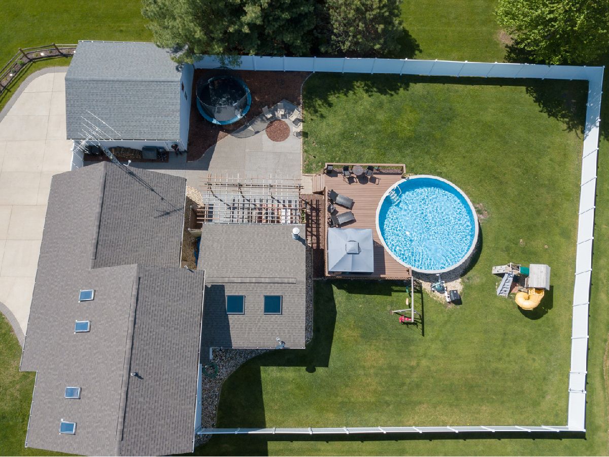 Love at first site. You won't want to miss this one. First floor master bedroom suite with full bathroom tub and separate shower. First floor laundry. Livingroom, dining room and master bedroom have vaulted ceilings. Living room with fireplace. Outdoor space is spectacular with a newly fenced back yard, deck with pergola canopy, patio, firepit and a 2 year old above ground pool with heater. 2 car attached garage and a 2 car detached garage. Recreation room in the basement. The roof is only 1 year old! Make this your happy place to live! BE GENTLE WITH THE FRONT DOOR - THERE ARE BABY BIRDS IN THE WREATH!