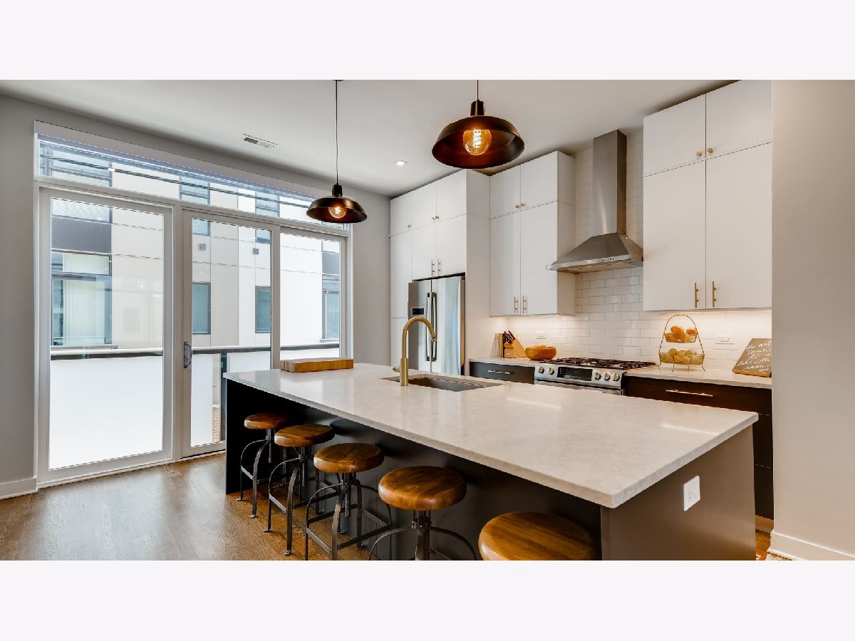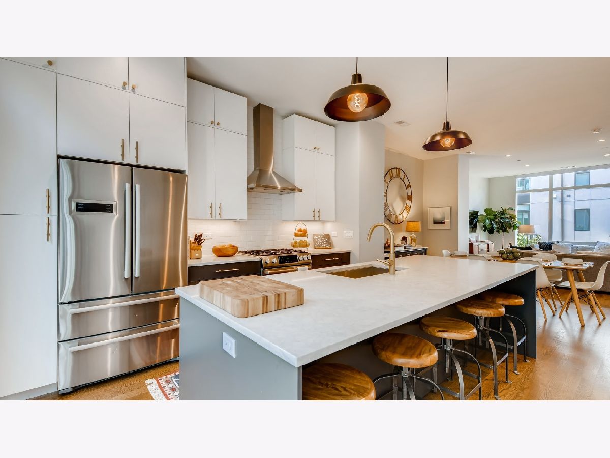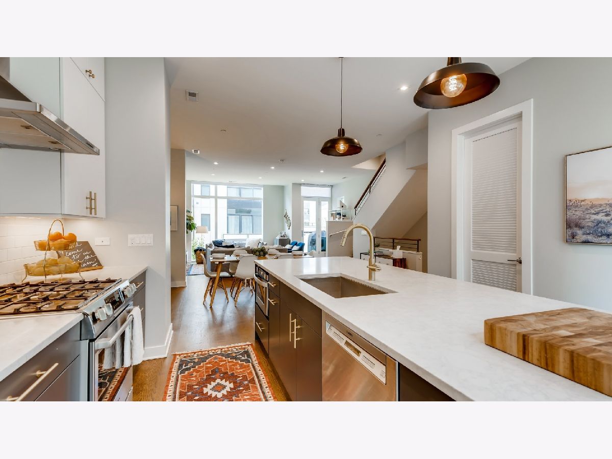 Love life in this 'fantastic 4' story 4 bed/3.1 bath contemporary townhome at The Enclave! This unit is one of only four 'G' floor plans in the development. The unique floor plan is the largest in The Enclave at 3,027 sq ft. It is the only floor plan that is fully ADA compliant with the option to install an elevator in the enclosed elevator shaft. This extra square footage has been used to create an additional office on the top floor, a second walk in closet in master suite, and an extra deep entryway closet. Current owners purchased $70K in upgrades from the builder's basics including: hardwood floors throughout, subway tiles to the ceiling in baths and kitchen, marble floors in master bath/shower, upgraded floors and sinks in other bathrooms, hardwired Hunter Douglas window treatments, Elfa organizers and more (see full list in additional info on MLS). Enjoy 3 outdoor spaces: private front yard, second floor balcony great for grilling, and the expansive private roof deck. This home is on a quiet cul-de-sac private drive and includes alley access into the attached 2 car heated garage with extra storage via overhead bins. Smart home features include: Ring doorbell, Nest thermostat, Simplisafe security, MyQ garage (enables Amazon in-garage deliveries). Entire home is energy star certified with green features including 4 zone furnace with enhanced air filtration. When entering the 1st floor, you will encounter a guest suite with private bath, an extra deep entryway closet, garage access, and utility room. Ascend to the 2nd floor and revel in 10 ft ceilings coupled with an open concept floor plan encompassing living, dining, and gourmet kitchen with large windows on both sides. Cook like a chef with Carrara style quartz counters, Zephyr stainless steel hood, energy efficient Bosch stainless steel appliances, extra storage with an upgraded row of top cabinets equipped with beautiful brass faucet/hardware and upgraded backsplash from counter to ceiling! There is a half bath conveniently located off the kitchen, as well as a laundry room/pantry with LG washer/dryer and custom Elfa pantry organizers. On the 3rd level you'll find two additional bedrooms and the master suite. Master suite has 2 walk in closets with custom Elfa closet systems. The attached bath has a separate walk in shower, Kohler soaking tub, double sinks with Grohe faucets, quartz counter, marble floor, Toto toilet and extended subway tile draw the eyes to the ceiling. Hallway bath is also upgraded with subway tile from tub to ceiling. Finish your ascent to the 4th floor and have fun in this extra large multipurpose bonus room or get some serious work done in the enclosed office. Enjoy friends and warm weather on the grand 14x13 private deck. You can enjoy all that Chicago has to offer in this masterpiece townhome which is conveniently located at the intersection of Bucktown, Wicker Park, and Logan Square with access to both the Western Blue Line CTA and the 606 trail just a block away and easy highway access. Some of Chicago's best coffee, breweries, and restaurants are right around the corner as well. Come and see this beautiful home for yourself!