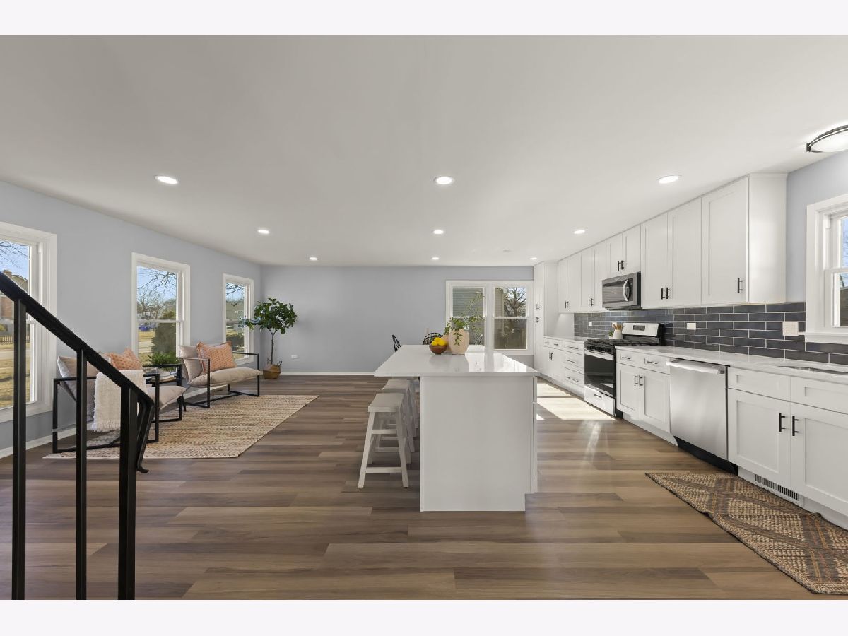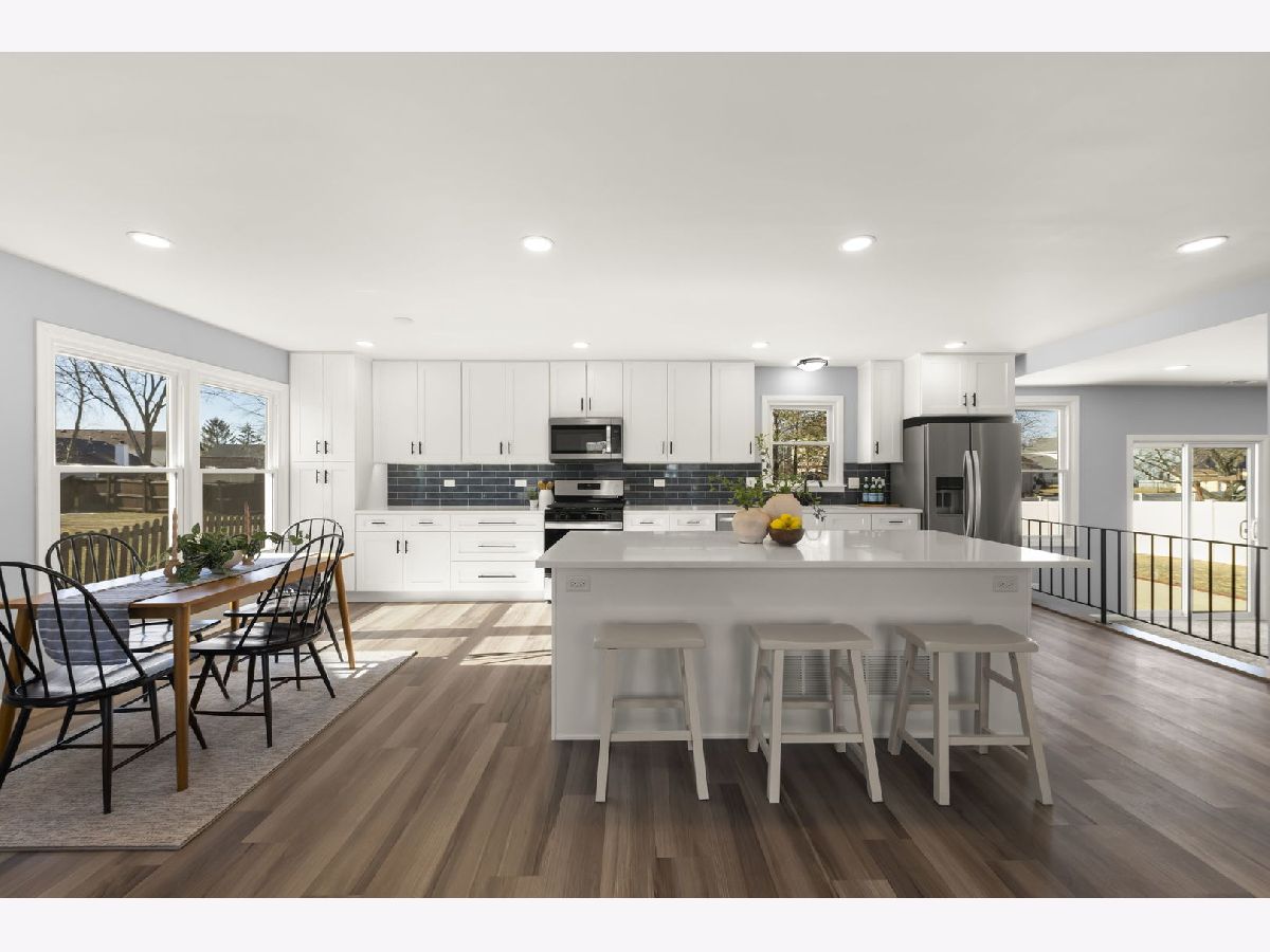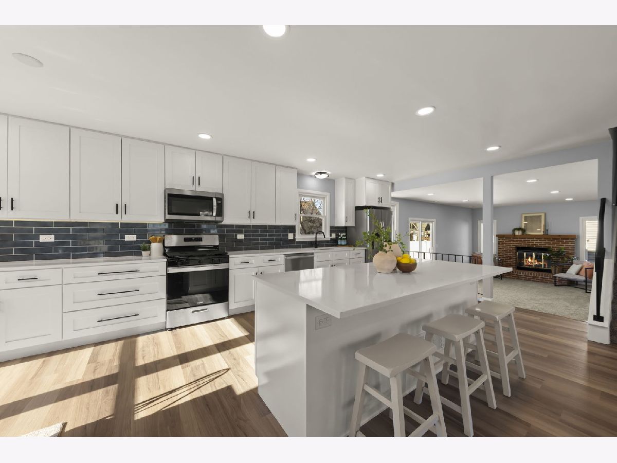 Wow! This beautifully renovated home features 4-bedrooms, 2.5 baths and a spacious basement for additional living space or storage. Renovated in 2024/25, this home is truly turnkey, featuring a brand-new kitchen with an amazing oversized 8 foot island, modern cabinetry with slow close doors, and state-of-the-art appliances, quartz counters, under cabinet lighting, all seamlessly integrated into an open-concept layout that connects the kitchen, dining, and living areas. The spacious family room is anchored by a cozy wood-burning fireplace (gas starter), complemented by new windows and a sliding door that provide loads of natural light. The primary bedroom is a private retreat, offering a luxurious ensuite bath and a walk-in closet. Meticulous updates (2024) include but aren't limited to: a new roof, new windows, humidifier, sump pump, ejector pump, sewer line with exterior clean-out, garage door, siding, fascia, soffits, and freshly painted exteriors, as well as new interior doors, lighting fixtures, and flooring throughout. The water heater is 2019 and the HVAC system was recently serviced. The basement waterproofing work has a transferrable warranty providing peace of mind to the next owner. Located in the highly desirable District 89 Arbor View Elementary School and District 87 Glenbard South High School zones, this home is just minutes from Danada Square Shopping and local parks. With its thoughtful updates and ideal location, this home is ready for you to move in and enjoy.