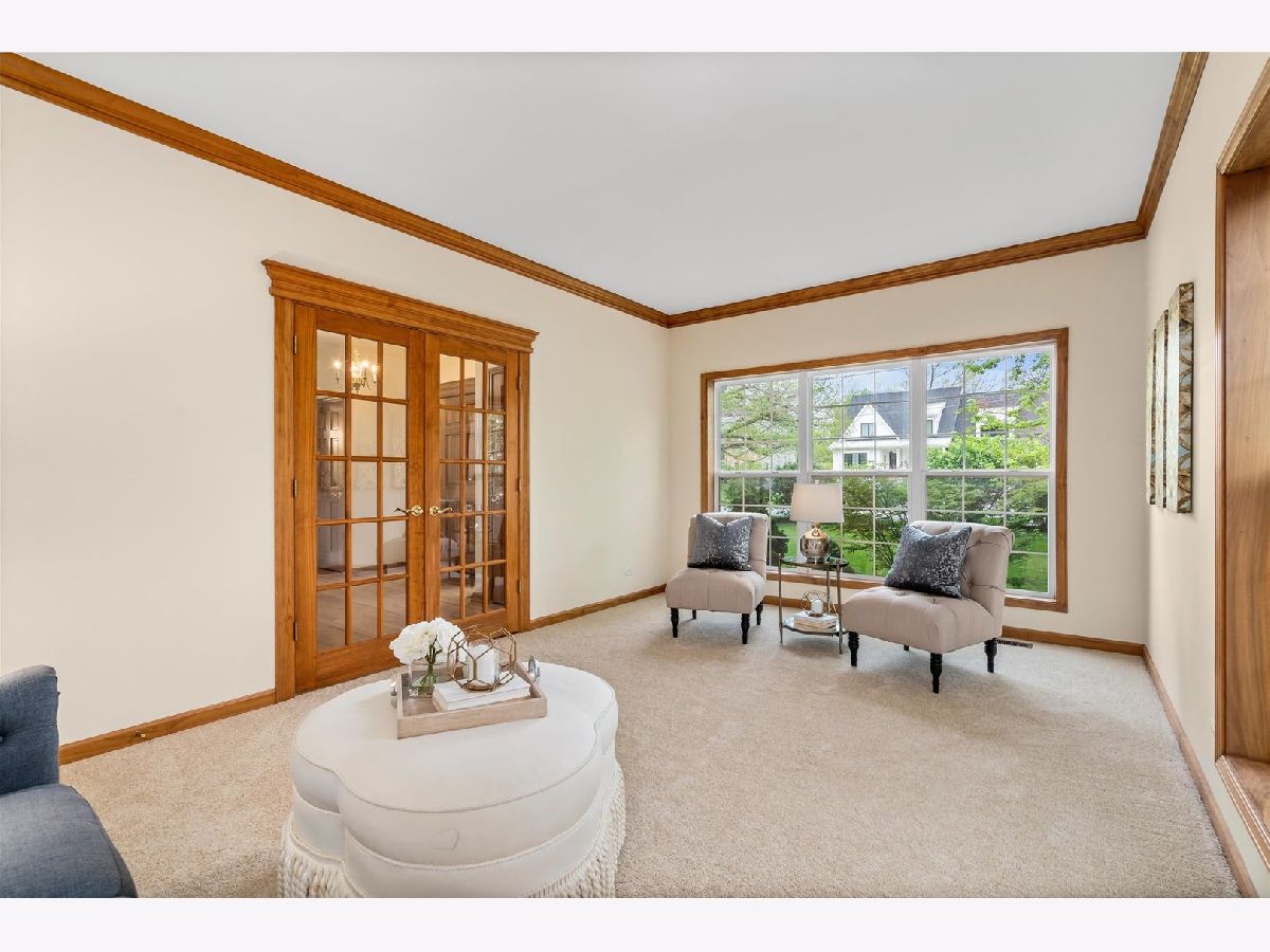 A one of a kind Wheaton home that is a true TWO master bedroom! First floor master bedroom with 14' ceiling, patio slider door, huge walk-in closet and private en-suite bath is perfect for in-law arrangement! 2nd floor master bedroom with en-suite full bath, huge walk-in closet and additional room off the master could be used as an office/nursery/sitting lounge. Spacious kitchen with stainless appliances and granite countertops. The kitchen opens to the family room with fireplace. Radius room surrounded with windows and a patio slider door off family room could be utilized as a sunroom, office space, or is perfect for use as a playroom/homework space for kids! Large dining room with crown molding and chair rail. Living room with glass pane french doors could also be used as a private office space. Gorgeous 3/4 acre lot with mature trees feels very private. Lake Michigan water and city sewer! Custom built by highly rated Airhart home builder. Additional highlights include: NEW roof in 2019; NEW carpet installed April 2021 throughout the home; 9' ceilings; so many windows offering natural light throughout; over 3500sf; large no-maintenance composite deck; 3-car garage; minutes to downtown Wheaton and the College Ave Metra commuter train. Basement is partially finished with a 6th guest bedroom with hardwood laminate flooring and an additional room that could be utilized as an office, playroom or storage.