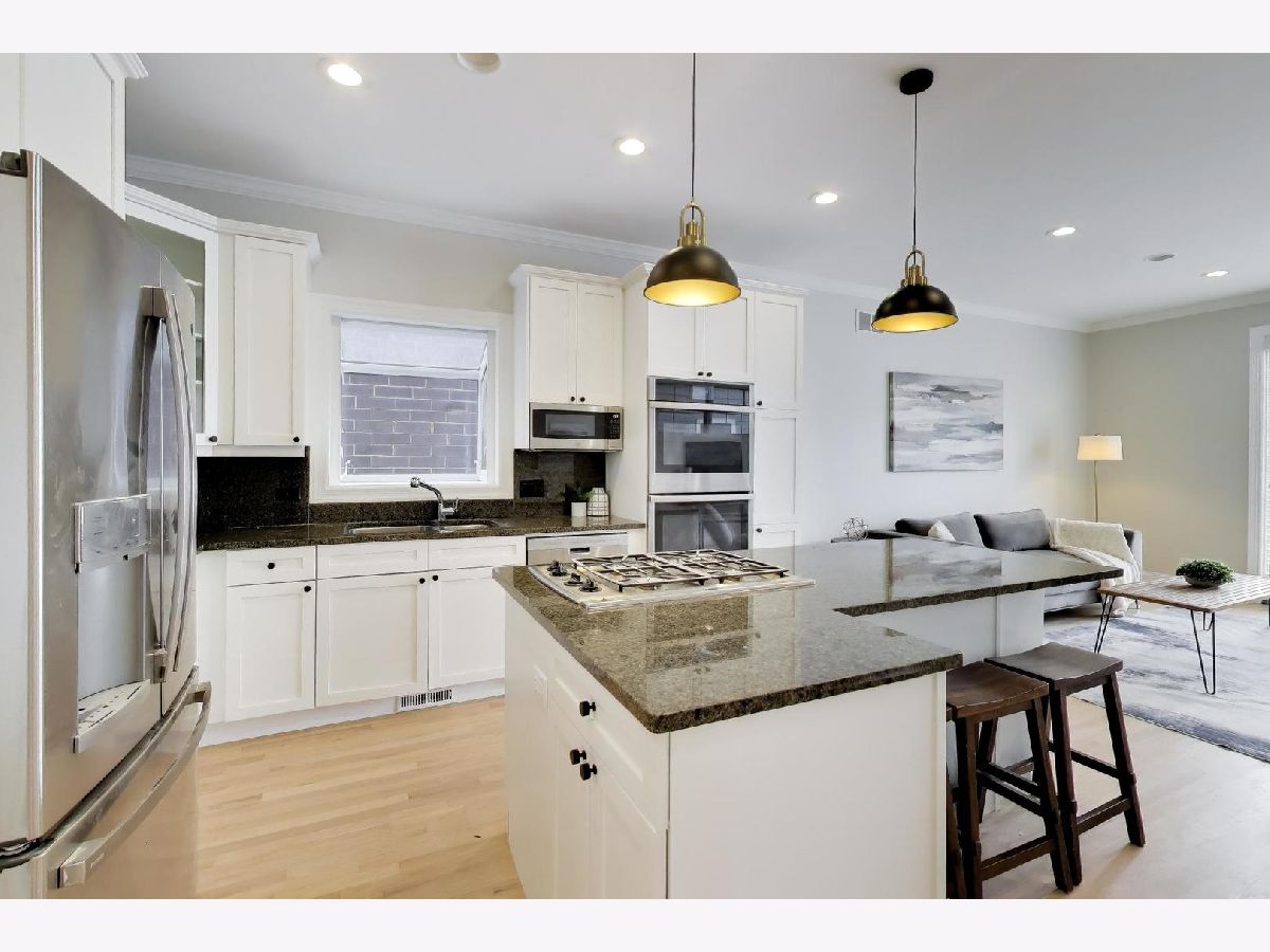 Beautifully updated single-family home in the heart of Roscoe Village, just steps from Hamlin Park and Jahn Elementary School, on a quiet, one-way residential street. This 4-bedroom, 3.1-bath residence offers approximately 3,500 square feet of living space across three finished levels, seamlessly blending modern comfort with timeless appeal. The main level features an open-concept layout with high ceilings, newly refinished hardwood floors, and abundant natural light throughout. The kitchen is thoughtfully appointed with granite countertops, stainless steel appliances, ample cabinetry, generous storage, and a large center island with seating. Open to the dining and living areas, the flow is ideal for gatherings of all sizes. Expansive windows anchor the living space, enhancing warmth and connection throughout the home, while the first of two wood-burning fireplaces with gas starters adds both charm and functionality. Upstairs, the primary suite offers elevated ceilings, oversized windows, recessed lighting, and customized his-and-hers closets. The spa-inspired en-suite bathroom features quartz countertops, dual vanities, a soaking tub, and a walk-in shower. Two additional light-filled bedrooms on this level provide an ideal layout for families, along with a full bath featuring granite countertops and frosted glass block windows for added privacy and natural light. The finished lower level offers exceptional flexibility with a fourth bedroom and full bathroom-perfect as a private guest suite, in-law arrangement, or live-in childcare setup-along with a recreation room complete with a second fireplace, a large storage closet, laundry, and walk-out access. The home is also equipped with two separate furnace/AC systems, including a dedicated system for the bedroom level and also a sump pump, ejector pump, and backup battery system, all replaced in 2021-an uncommon and valuable feature in the area. Outdoor living is a true highlight. A large deck off the kitchen and family room was upgraded in 2024 with maintenance-free Trex decking and includes a dedicated gas line for a grill, making year-round grilling easy and convenient. The fully fenced backyard was upgraded in 2023 with beautiful Unilock stone pavers, creating a spacious patio, along with a turf area beneath the deck that's ideal for pets. Designed for relaxing, dining, and entertaining, the outdoor space feels like a natural extension of the home. Ideally located near local favorites including Hexe Coffee Co., Piazza Bella, Commonwealth Tavern, Beat Kitchen, and Scooter's Frozen Custard. Enjoy easy access to Wrigley Field, the Lakefront, the CTA Brown and Red Lines, Irving Park Road, I-90, and I-94. Nearby recreation includes Hamlin Park, the Fire Pitch Sports Complex, and McFetridge Sports Center. Close to highly regarded public schools including Jahn Elementary and Lane Tech High School. A rare opportunity to own a thoughtfully designed, move-in-ready home in one of Chicago's most beloved and congenial neighborhoods. Schedule your private showing today.