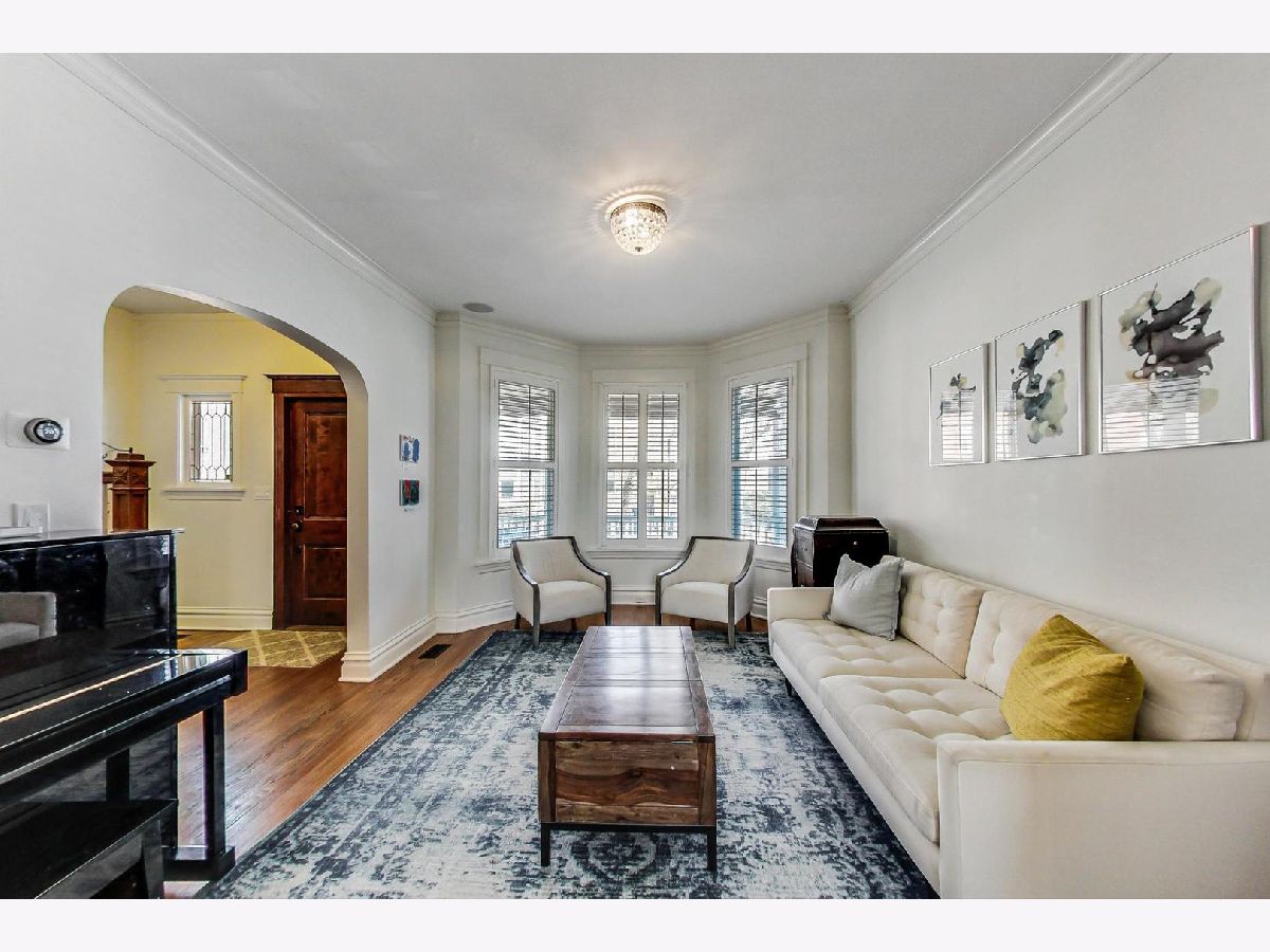 Bright and meticulously maintained 5 Bedroom/2.1 Bathroom SFH with 4 BEDROOMS UP, 2-CAR GARAGE and LARGE BACKYARD in Roscoe Village and Level 1+ Audubon Elementary District! This classic front-porch bungalow oozes vintage charm combined with modern updates for today's lifestyle. Upon entering the foyer you are met with a beautiful original staircase, hardwood floors, and crown molding throughout. The living room is spacious with a bay window that floods the room with natural light and overlooks the tree-lined street. The living room flows seamlessly into the formal dining room with enough space for a table for 8. The chef's kitchen offers ample cabinetry, granite counters, subway tile backsplash, recently updated stainless steel appliances and portable center island. A powder and mudroom complete this level. Upstairs, the primary bedroom is spacious and offers a large walk-in closet. A rare, three additional bedrooms and a full bath with soaking tub complete this level. The lower level features a recreation room, fifth bedroom, full bathroom and laundry room with front loading washer/dryer and sink. Outside, this home offers a summertime entertainment oasis with a huge deck with built-in speakers, large backyard with pro turf and paver walkways leading to the 2-car garage. This home is ideally situated in Roscoe Village moments from Audubon Elementary school, Fellger Park, Kennedy Expressway, public transit, and all of the fabulous shops and restaurants Roscoe Village and Lincoln Street have to offer!