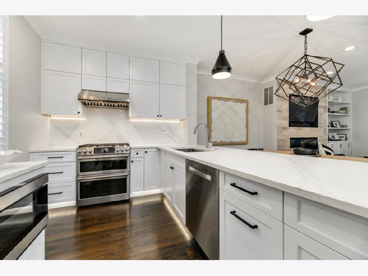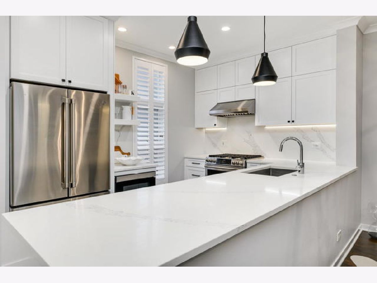 Absolutely breathtaking Totally renovated 2 bedroom 3 full bath townhome with attached private garage is an Exceptional property with every detail in exquisite taste! A true hidden gem in fantastic Lincoln Park Neighborhood location, this home is tucked away off of the street in a lush well-maintained courtyard community with Solid reserves. This masterfully redesigned sun filled home has it all with a terrific Floorplan featuring Dramatic marble foyer with a 2 story wall of windows, large living space with formal fining featuring Kelly Wearstler designed chandelier, Open kitchen and 2 levels of spacious bedrooms. The floor plan is like your own mini house with attached garage and foyer on ground level, living space and open kitchen and bath on next level, Lavish Skylit Primary bedroom on 3rd level that could easily be converted to 2 bedrooms so see floor plan, and Top Floor 2nd bedroom with 3rd full bath and private roof deck. There are quality, refined finishes throughout including rich Hardwood Floors, Stunning completely opened redesigned white kitchen with quartz countertops and GE Cafe stainless appliances, 3 showpiece bathrooms, Empire Ventless stone tiled fireplace, Huge Skylights, Primary bedroom suite has beautiful porcelain bath featuring double sink, walk in shower with 3 heads, heated floors, separate soaking tub and enormous jaw dropping walk in closet, Farrow and Ball paint, designer wall paper and motorized window treatment! Every level is hard wired for audio and has Cat5 throughout. This property also has a Great Private tree top rooftop deck with terrific City skyline views! Incredible location with Clybourn and Armitage shopping, Starbucks and the El all out your door! Low Assessments include Cable TV, Internet, 2 Tevo Boxes, Snow removal, Landscaping, Lawn care, Common insurance and trash removal! This property is literally perfection.