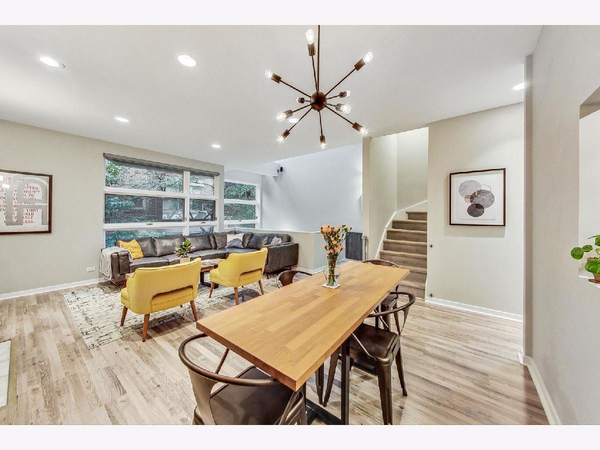 Welcome to this bright, spacious 2-bedroom, 3-bath, 4-story townhouse nestled in the Ranch Triangle of Lincoln Park. Located on a cul-de-sac, tree-lined Maud Avenue, within a beautifully landscaped, pet-friendly community. This home offers the perfect blend of style, comfort, and convenience. It's designed for modern living with upgrades like new motorized smart blinds and smart light controls. Enjoy the ease of a private, attached garage with extra storage. Step into the newly tiled first-floor foyer, complete with a coat closet. The stairwell, adorned with floor-to-ceiling windows and a skylight, bathes the home with natural light. The second floor boasts an inviting living room with a gas fireplace and Bose surround sound, perfect for relaxing or entertaining. The living area flows seamlessly into the dining room, adjacent to a kitchen featuring brand-new stainless appliances, a wine cooler, and a convenient new stacked washer and dryer. This floor also includes an updated bathroom with a large linen/storage closet. The third floor hosts the expansive primary bedroom with a walk-in closet and a luxurious full bath. The spa-like bathroom features heated tile flooring, a jetted soaking tub, and a dressing vanity. The fourth floor houses the second bedroom with an en-suite bathroom featuring a walk-in shower. This level also includes a newly added wet bar with a quartz countertop, deep sink with glass rinser, and a refrigerator perfect for storing rooftop beverages and grilling supplies. Step outside to the freshly rebuilt roof deck to entertain, sunbathe, or unwind. Situated just steps from gems like Trader Joe's, Whole Foods, FFC Lincoln Park, Steppenwolf Theatre, and Movement Climbing Gym, you'll also enjoy the vibrant Armitage Corridor with its excellent restaurants, bars, and shopping. Inproximity to Oz Park, Adams Playground, or Wiggly Field Dog Park. Commuting is a breeze with easy access to the Brown and Purple Lines (Armitage), the Red Line (North/Clybourn), the 73 Bus, and the UP-N/UP-NW Metra at Clybourn station.