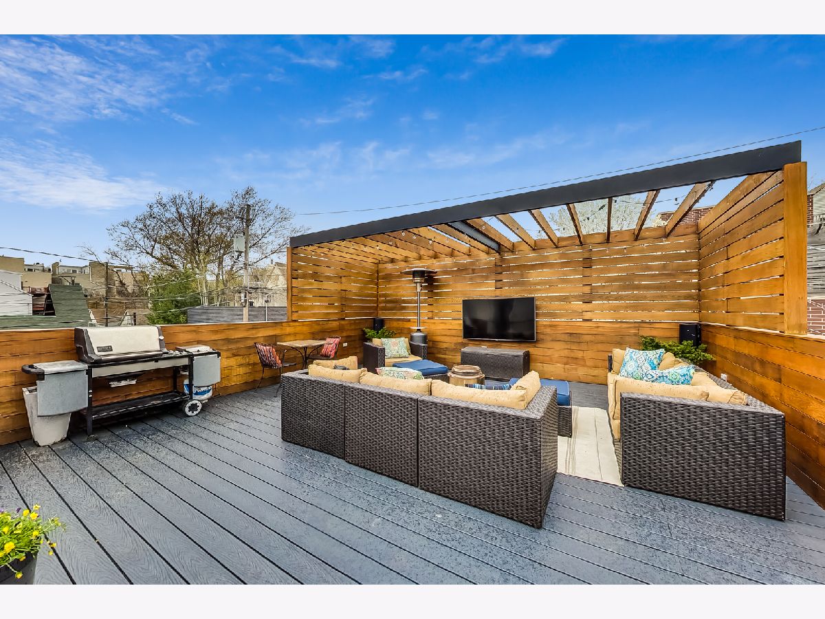 SOLD on PLN. Move into this updated Roscoe Village 4 bed/3.5 bath SFH with a jaw-dropping garage rooftop, just in time for summer! From the moment you arrive, you will fall in love with the eye-catching curb appeal and beautifully landscaped home on a charming side street. An expansive living room with a gas fireplace and formal dining area is great space to host friends. This kitchen breaks the mold with a walk-in pantry, stunning quartzite countertops, grey cabinets, and a pop of white tile backsplash to tie it all together. The brand new 3 panel sliding door adds even more light into this home and leads to your outdoor oasis! Entertaining or watching your favorite sports has never been easier with this gorgeous roof deck and Pergola that is wired for cable TV and surround sound. Primary bedroom features a large en-suite spa-like bathroom filled with natural light, walk in shower, separate tub, and dual vanity, plus private balcony. Newly renovated upstairs bathroom with dual white vanity and spacious walk-in shower. A massive 2nd bedroom and 3rd bedroom round out the top floor. Lower level complete with custom built-ins, a wet bar, and 4th bedroom. Tons of closet and storage space on all 3 levels. Less than a block to Hamlin Park baseball fields, dog park, playground, and pool. Walk to Hexe Coffee, load up at Costco, or access the highway easily. Stroll to shops and restaurants in Roscoe Village and live on one of the best blocks in Chicago!