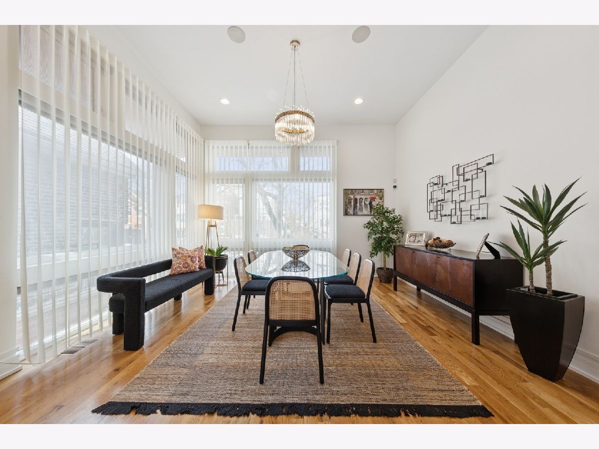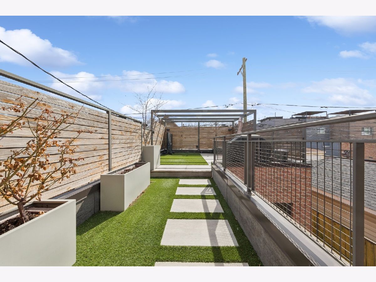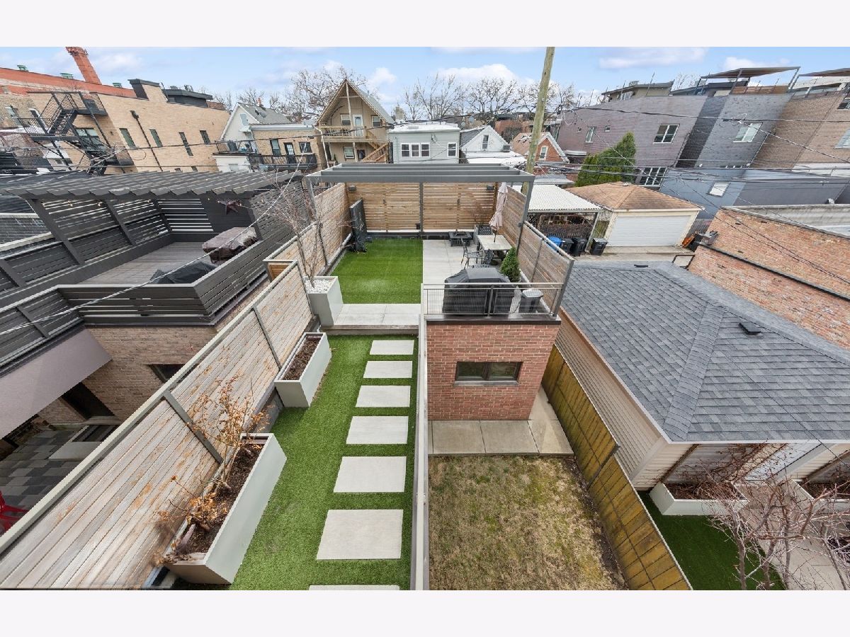 This 4-bedroom, 3.5-bathroom ***BRICK***stunner offers a flexible living space and an understated chic aesthetic, blending sophisticated design with premium finishes and abundant outdoor spaces. The home boasts an eye-catching facade, lush landscaping, and an impressive rooftop deck with a pergola, TV viewing area, and breathtaking city views-ideal for entertaining or unwinding under the stars. Step inside to soaring ceilings and massive windows, flooding the space with natural light. Motorized blinds and designer window treatments enhance the airy ambiance. The chef's kitchen is a showstopper featuring Viking appliances, soft-close flat-panel dark cabinetry, quartz countertops, a mosaic backsplash, a beverage center, and a Grohe faucet in the under-mount sink. A catwalk leads to the garage rooftop deck, with self-irrigating planters, WiFi, and built-in speakers. The primary suite is a true retreat, offering custom-built cabinetry, a private balcony, and a spa-like bath with a steam shower, rain head, body sprays, Toto toilet, and double vanity. Two additional spacious bedrooms on this level feature custom closet organizers. The second full bath is beautifully tiled and includes an air jet Jacuzzi tub. The penthouse level, with one of two wet bars, is perfectly positioned for easy access to the fully built-out rooftop deck with panoramic city views. The lower level is an entertainer's dream with a 5.1 surround sound system, another wet bar, a spacious bedroom, and ample storage. The entire home is with sound speakers. With five outdoor spaces-all finished with turf or pavers-this home is an outdoor oasis in an A+ location, just steps from Chicago Avenue's best shops, restaurants, and Mariano's. Too much to list-come and see it for yourself!