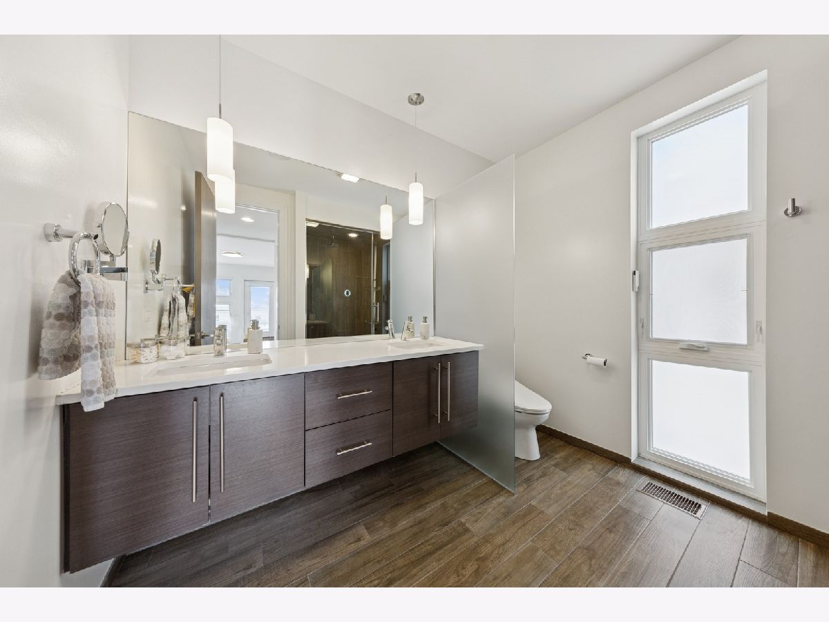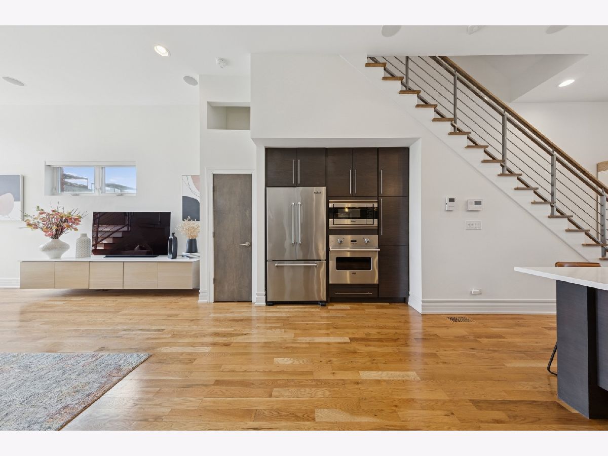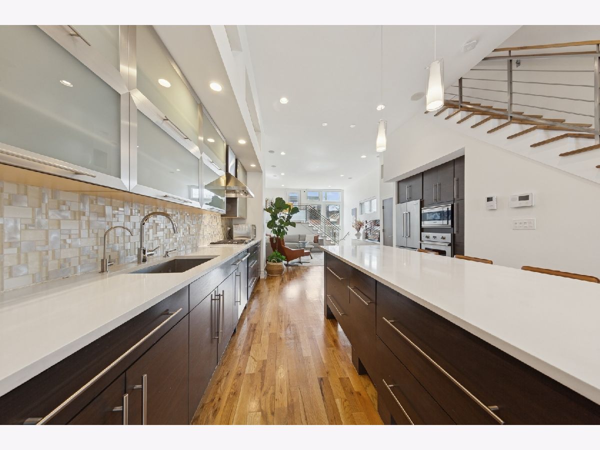 This 4-bedroom, 3.5-bathroom ***BRICK***stunner offers a flexible living space and an understated chic aesthetic, blending sophisticated design with premium finishes and abundant outdoor spaces. The home boasts an eye-catching facade, lush landscaping, and an impressive rooftop deck with a pergola, TV viewing area, and breathtaking city views-ideal for entertaining or unwinding under the stars. Step inside to soaring ceilings and massive windows, flooding the space with natural light. Motorized blinds and designer window treatments enhance the airy ambiance. The chef's kitchen is a showstopper featuring Viking appliances, soft-close flat-panel dark cabinetry, quartz countertops, a mosaic backsplash, a beverage center, and a Grohe faucet in the under-mount sink. A catwalk leads to the garage rooftop deck, with self-irrigating planters, WiFi, and built-in speakers. The primary suite is a true retreat, offering custom-built cabinetry, a private balcony, and a spa-like bath with a steam shower, rain head, body sprays, Toto toilet, and double vanity. Two additional spacious bedrooms on this level feature custom closet organizers. The second full bath is beautifully tiled and includes an air jet Jacuzzi tub. The penthouse level, with one of two wet bars, is perfectly positioned for easy access to the fully built-out rooftop deck with panoramic city views. The lower level is an entertainer's dream with a 5.1 surround sound system, another wet bar, a spacious bedroom, and ample storage. The entire home is with sound speakers. With five outdoor spaces-all finished with turf or pavers-this home is an outdoor oasis in an A+ location, just steps from Chicago Avenue's best shops, restaurants, and Mariano's. Too much to list-come and see it for yourself!