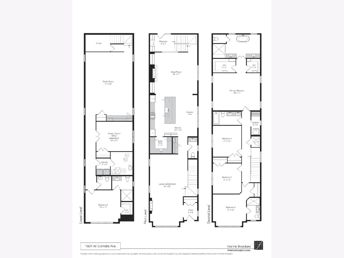 Spectacular new construction home situated on one of the best blocks in Roscoe Village. Located on a beautiful tree lined one way street and a quick stroll to transportation and retail corridors, this home is the perfect combination of high end, designer finishes and a functional floor plan. The main level boasts a stunning custom kitchen with professional grade appliances including integrated side by side fridge / freezer, oversized Wolf range, two dishwashers, quartzite countertops, full height backsplash and a large walk-in pantry fully built out with prep sink. Bright and spacious great room with a custom built-ins flanking the fireplace opens to a tiled and built out mudroom, a brick pavered back patio and built out garage deck completed in porcelain tile. The oversized primary suite enjoys two walk-in closets and a magazine worthy bath featuring two-person steam/rain shower, separate free standing soaking tub, heated floors, and split vanities. 3 additional bedrooms w/2 impressive bathrooms and laundry complete the second floor. Large lower-level family room w/ radiant heat, large wet bar, office/workout room, powder room, second laundry center and bright and sunny oversized guest room w/full bath. Additional features include transitional millwork, custom built-ins, a tiled mudroom, heated front limestone steps. Wonderful home in the Audubon School District. Seasoned developer.